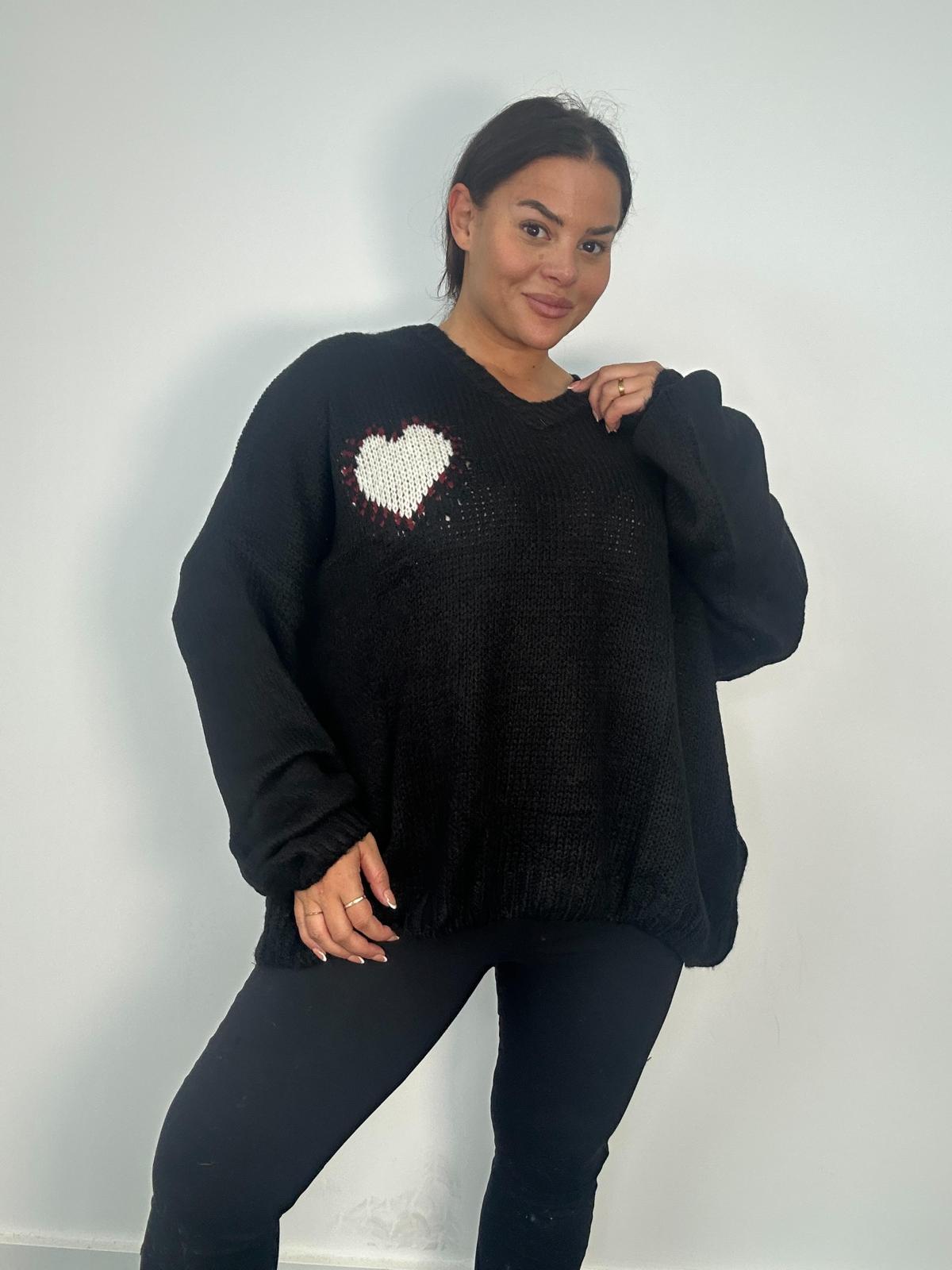 Plus Size Curve Black Heart Motif Knit Jumper x 2, 3 & 5 Pack Options