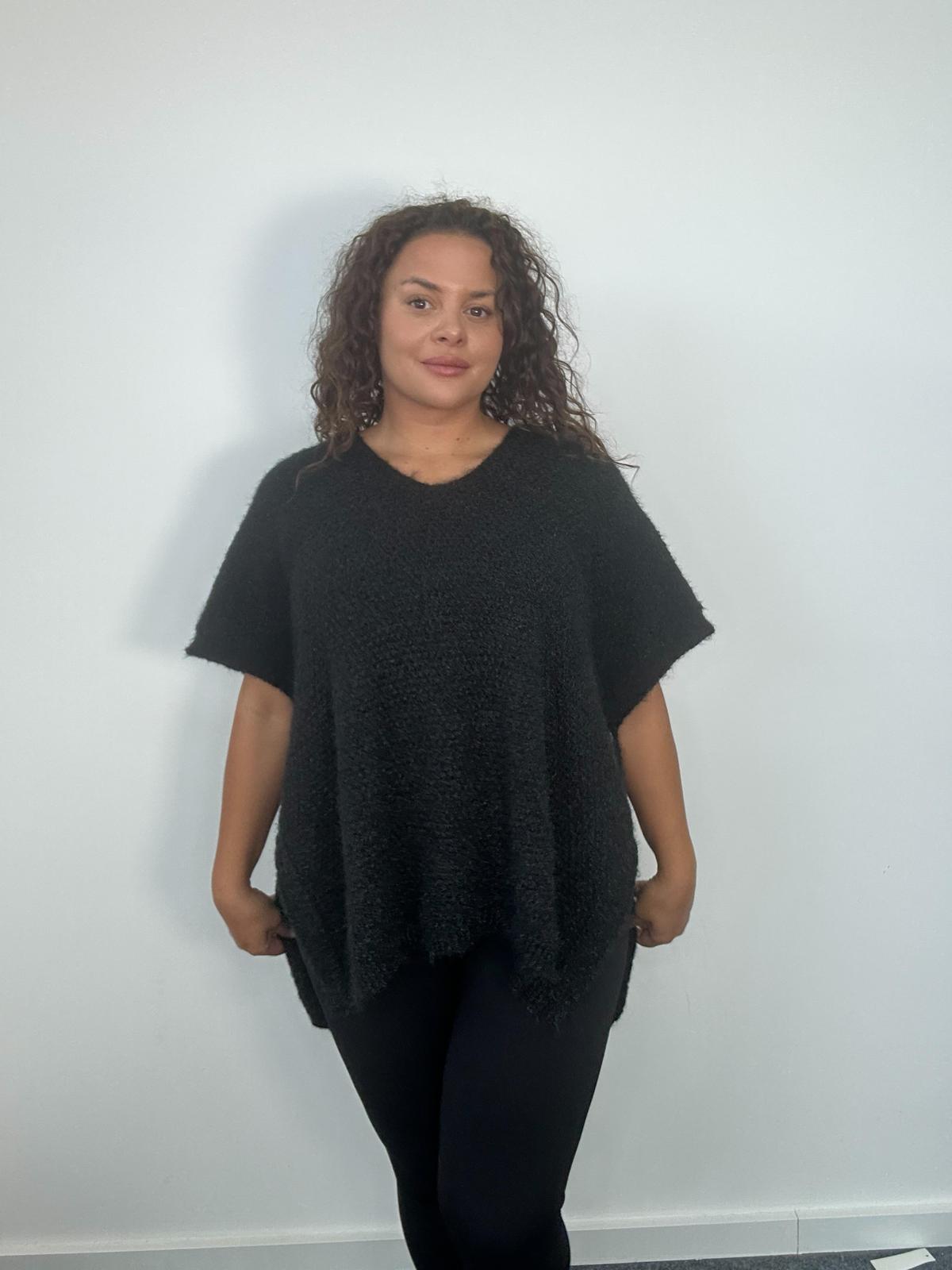 Keep it chic and cozy with our Plus Size Curve Knitted Jumper, designed with a relaxed oversized fit and short sleeves for easy layering. Crafted in a soft textured knit, this jumper features side slits for extra comfort and movement, making it a versatile piece for casual wear or smart layering. A must-have for your wholesale plus-size knitwear collection, perfect for transitioning between seasons.