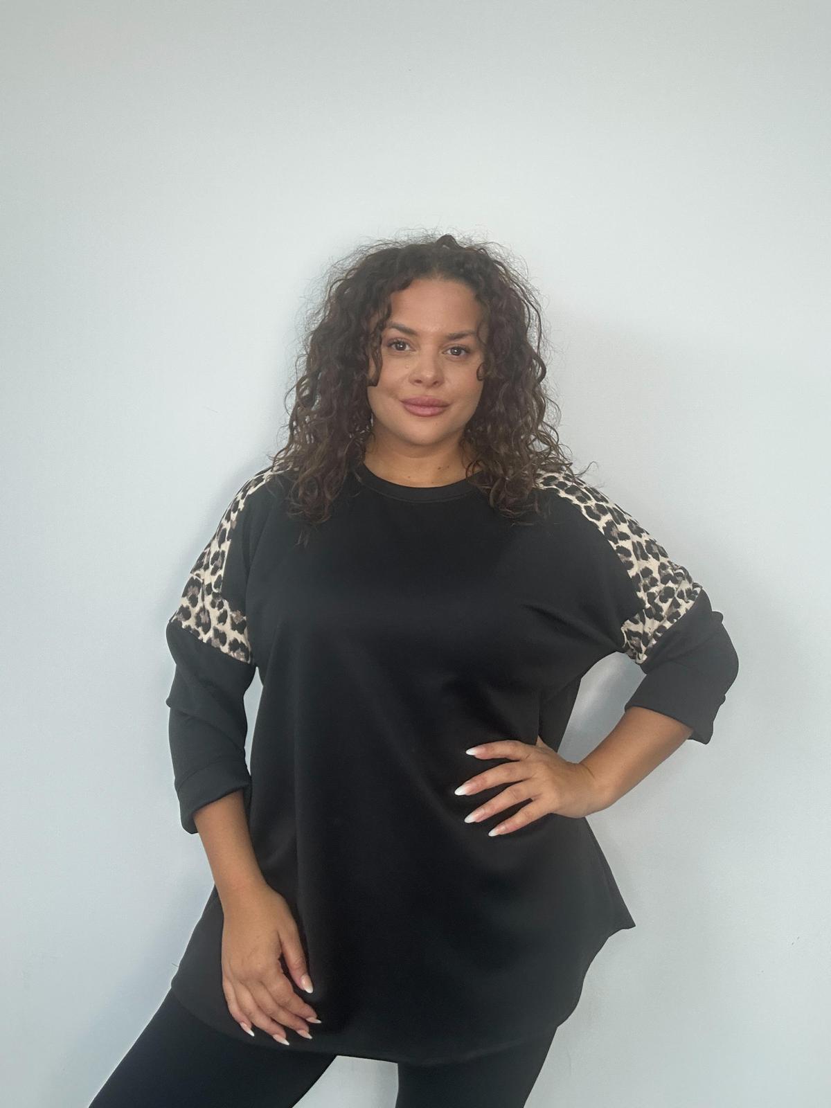 Give casualwear a trendy update with our Plus Size Curve Longline Top featuring bold leopard print sleeve panels. Designed with a relaxed oversized fit and soft fabric, this versatile top combines comfort with standout style. Perfect for everyday wear, it pairs effortlessly with leggings or jeans, making it a must-have addition to your wholesale plus-size fashion range.