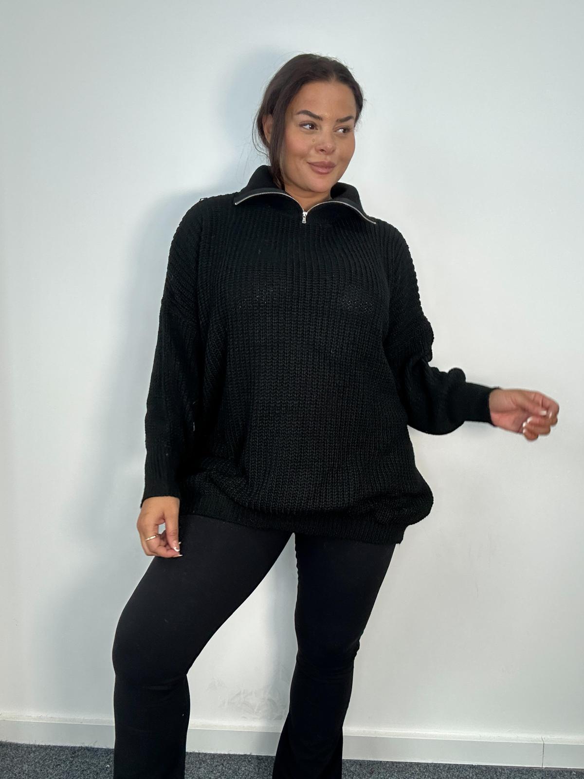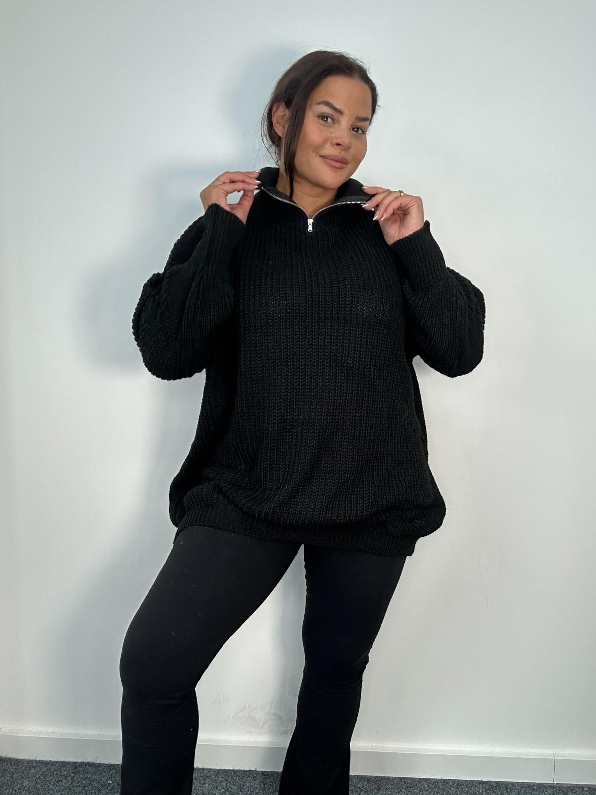 Plus Size Curve Black Oversized Half Zip Chunky Knit Sweater x 2, 3 & 5 Pack Options