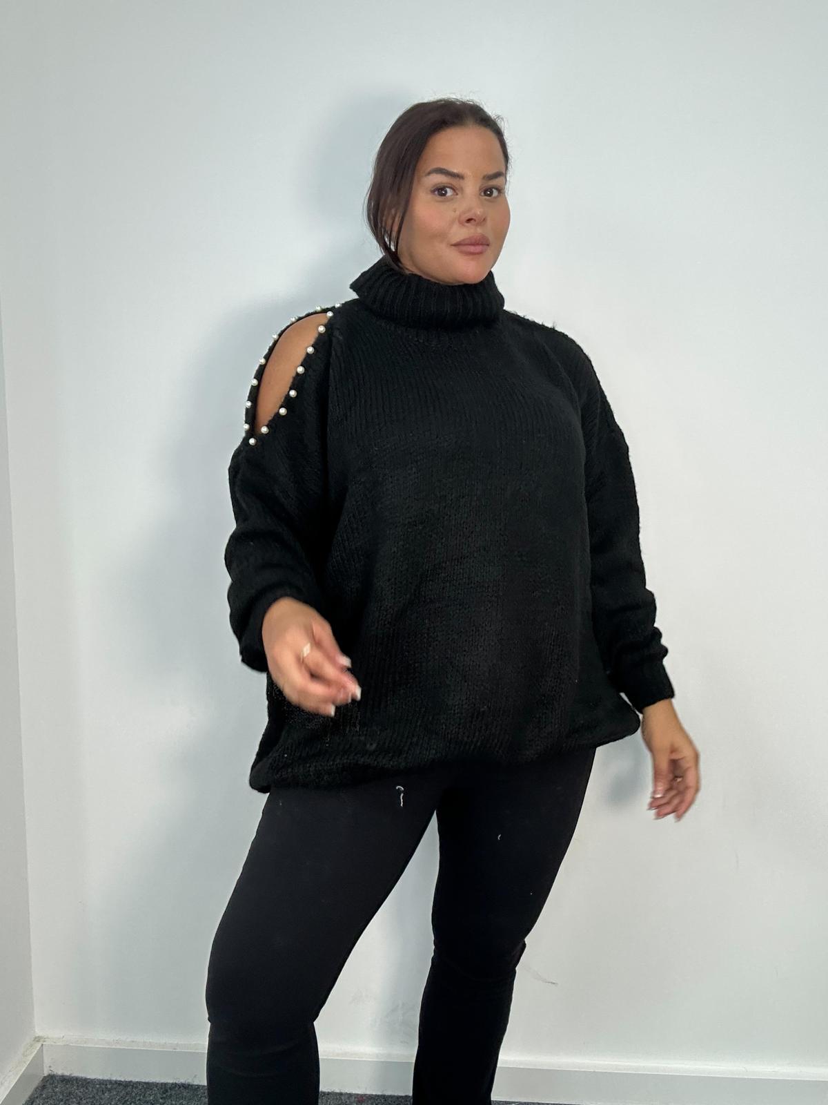 Plus Size Curve Black Pearl Embellished Cold Shoulder Knit Sweater x 2, 3 & 5 Pack Options