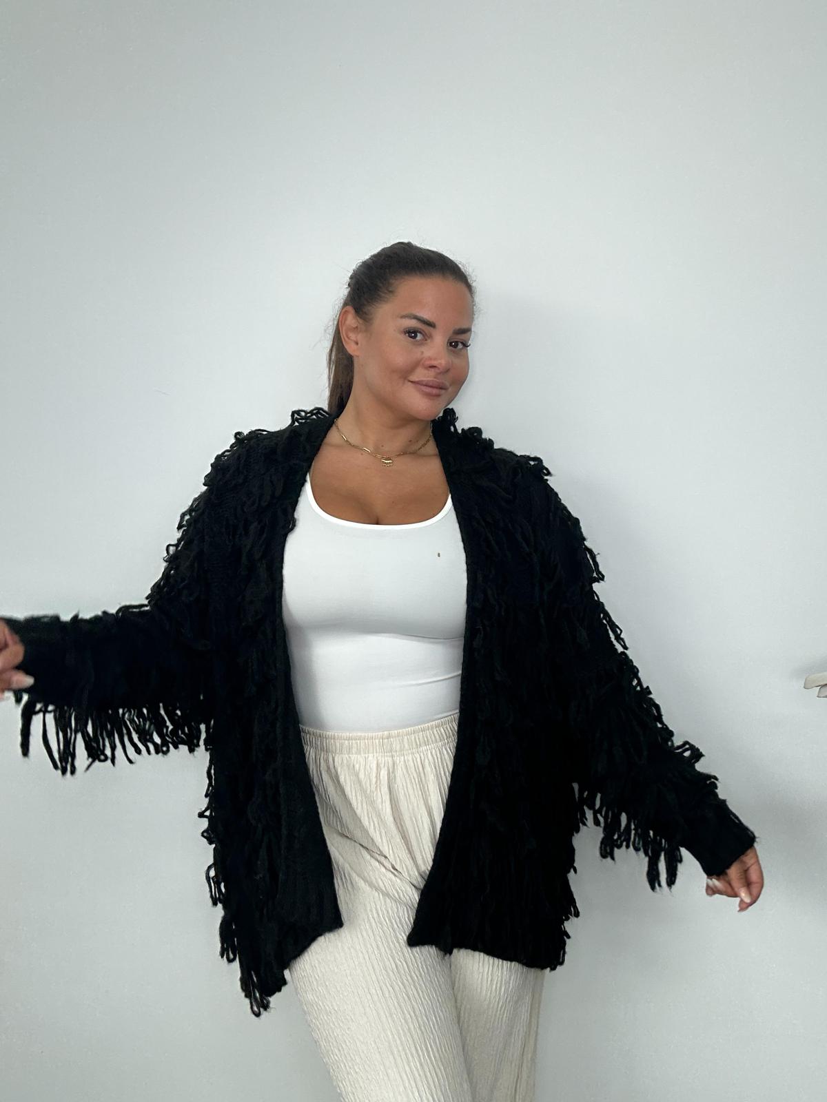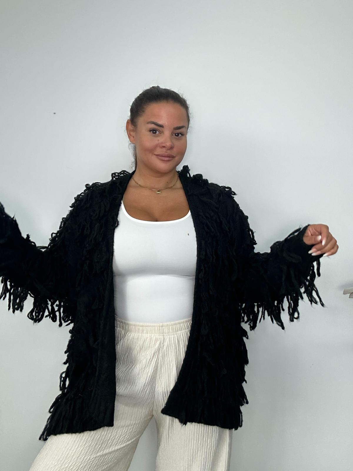 Plus Size Curve Black Tassel Statement Knit Cardigan x 2, 3 & 5 Pack Options