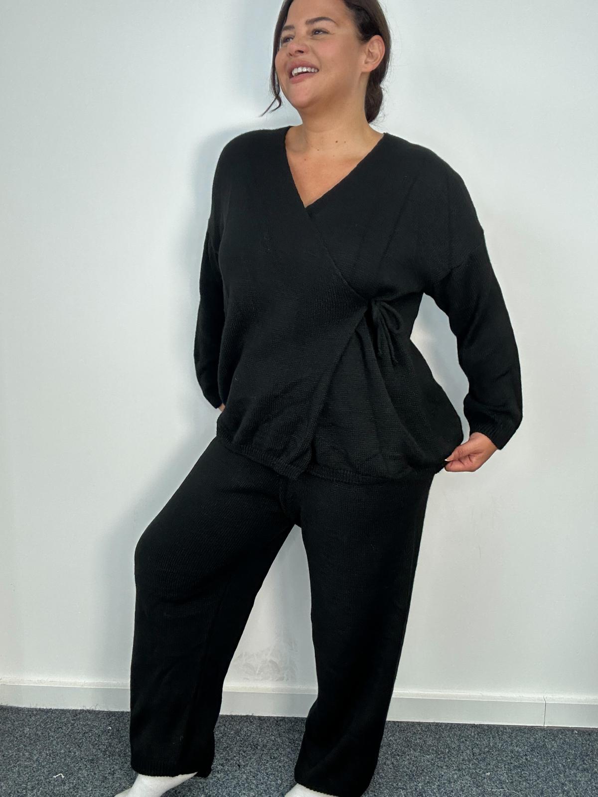 Elevate your loungewear collection with our Plus Size Wrap Knit Lounge Set. Designed exclusively for curves, this chic two-piece set features a wrap-front top with tie detail for adjustable comfort and wide-leg knit trousers that flatter every shape. Perfect for casual days, relaxed evenings, or dressed-up with accessories, this set is a must-have for curvy wholesale fashion buyers.