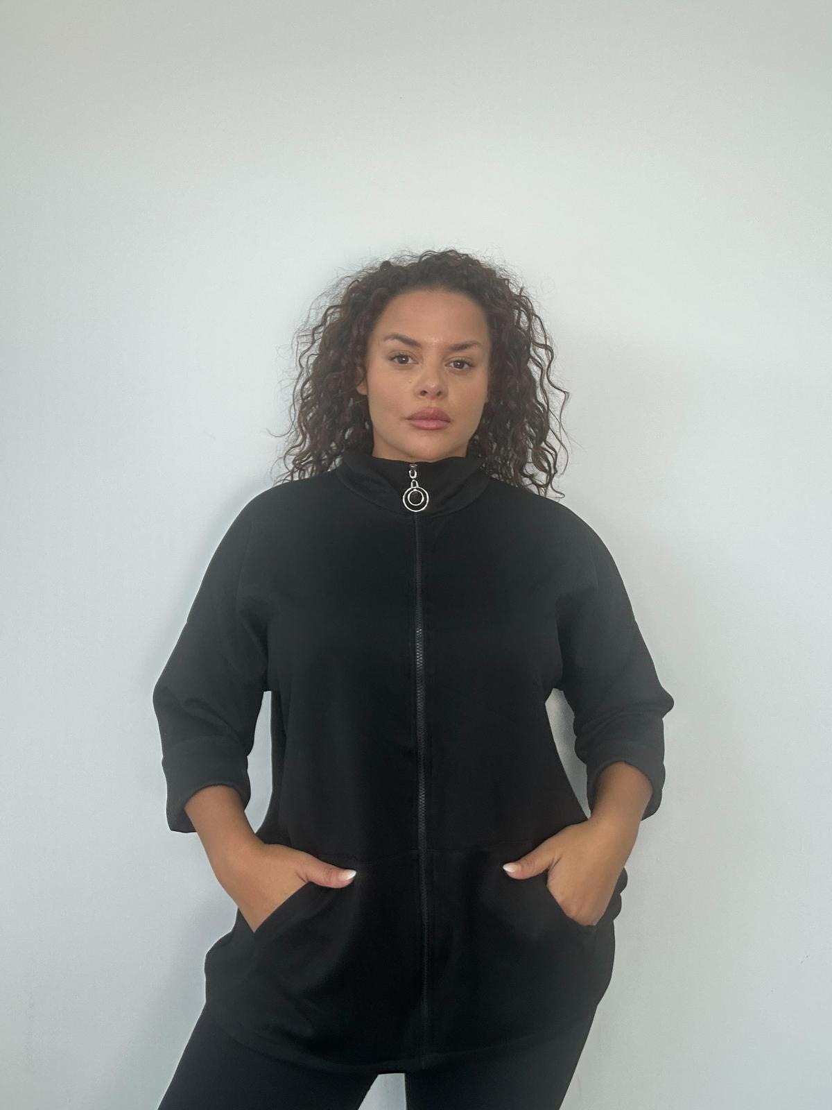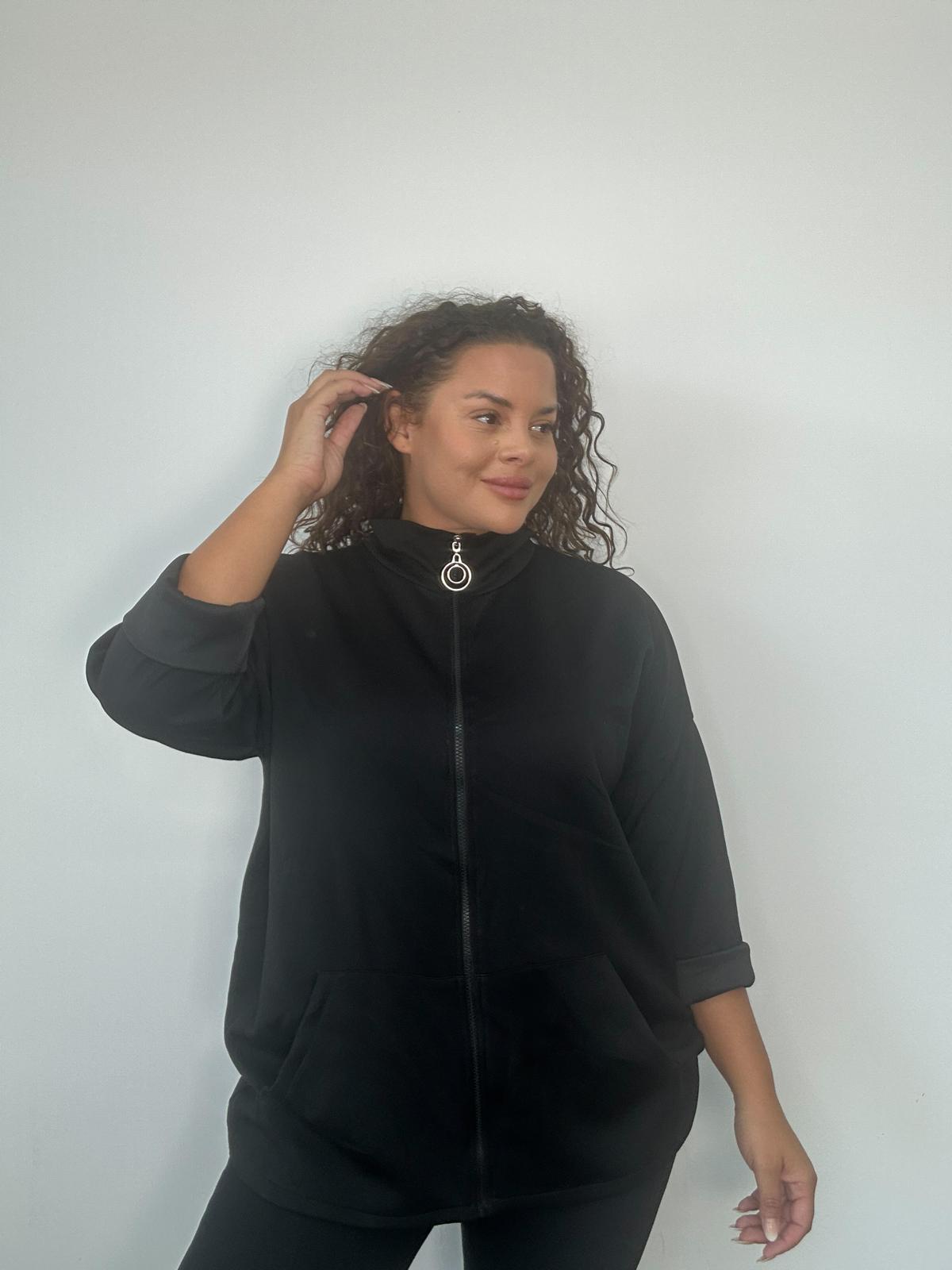 Keep it casual and chic with our Plus Size Zip-Up Jacket. Designed with a relaxed fit, high neck, and practical front pockets, this lightweight jacket is perfect for layering. The sleek zip fastening with ring pull detail adds a modern touch, making it a versatile piece for everyday wear. A wholesale must-have for plus-size collections, offering comfort and effortless style.
