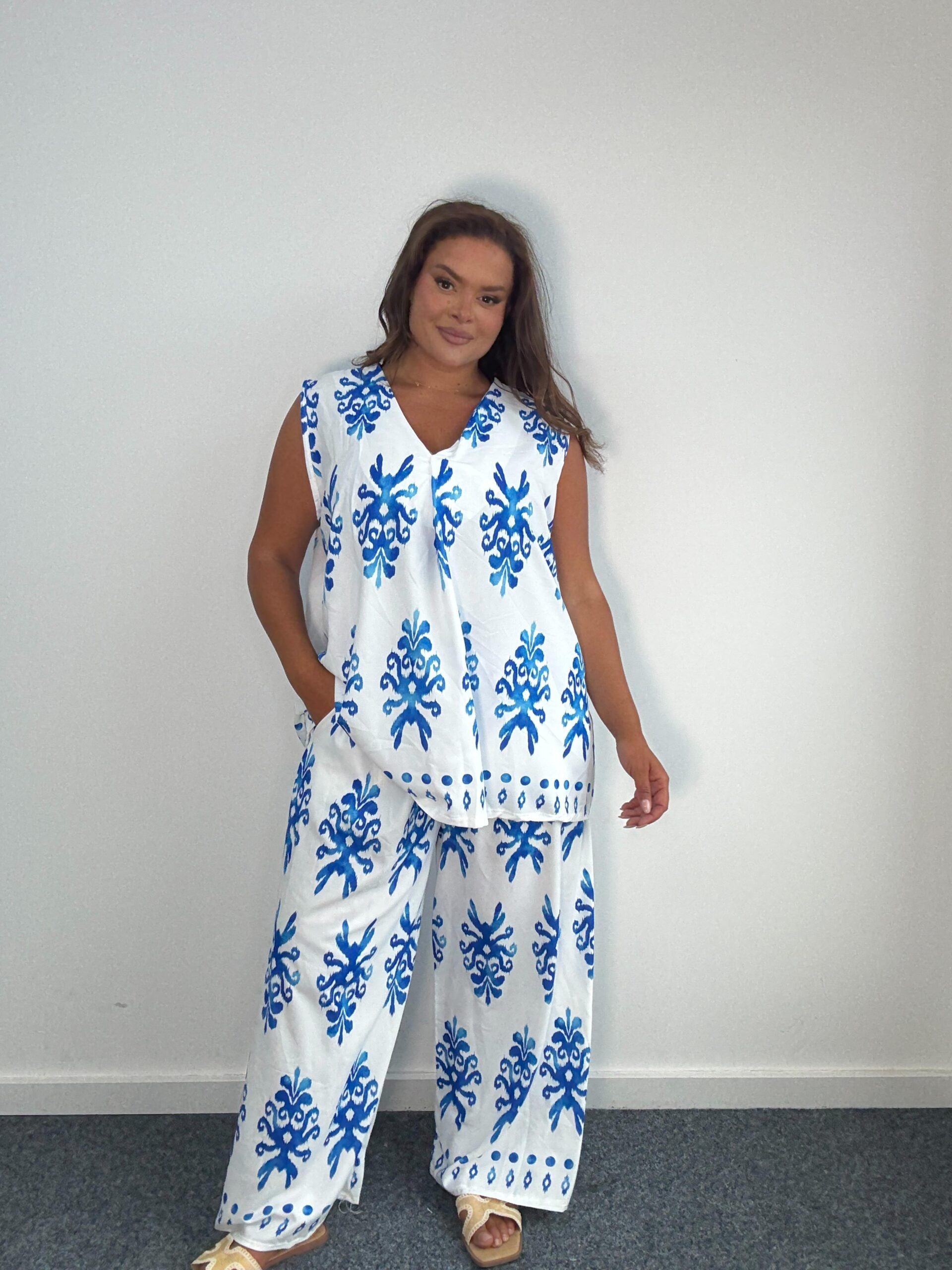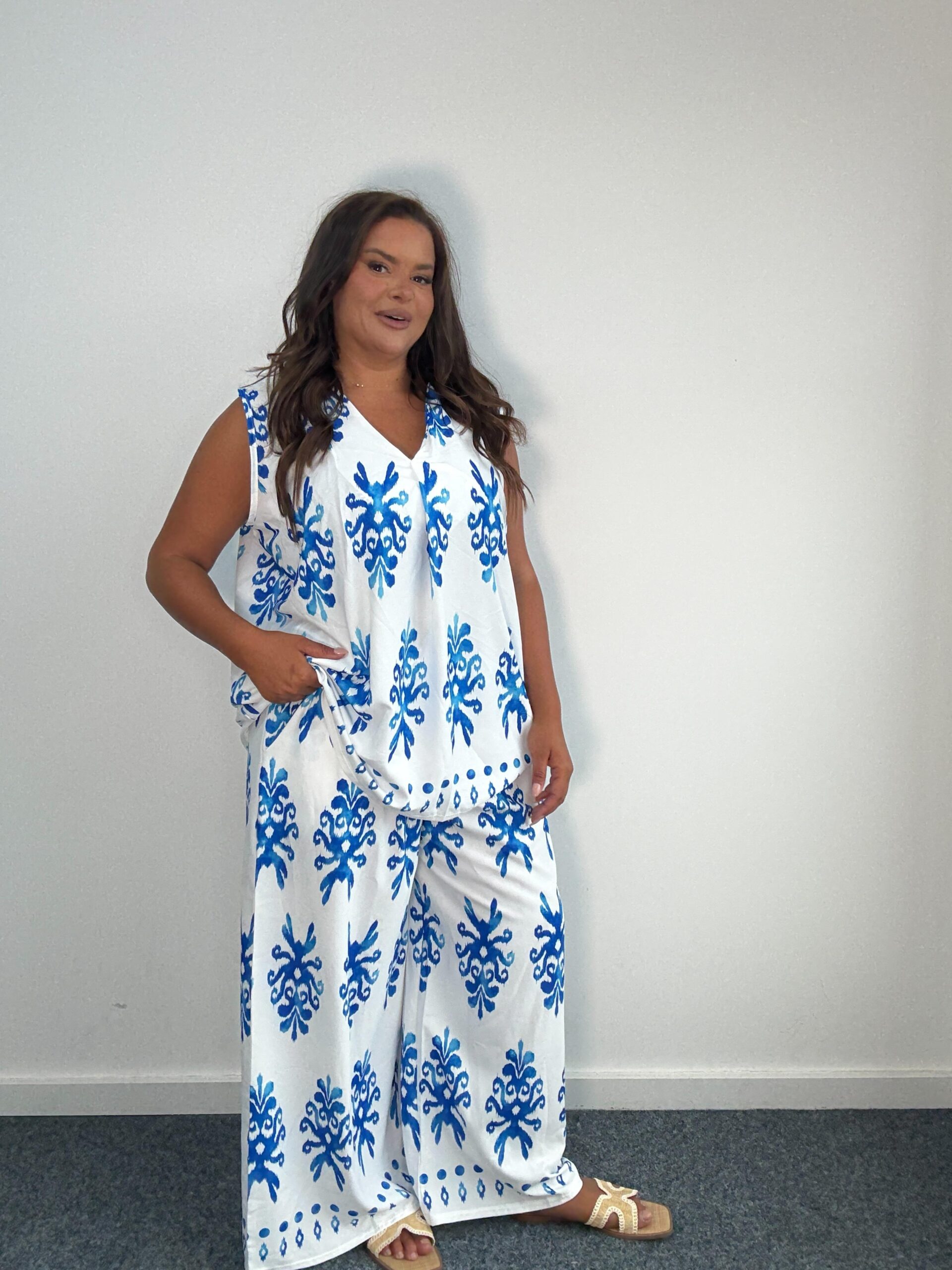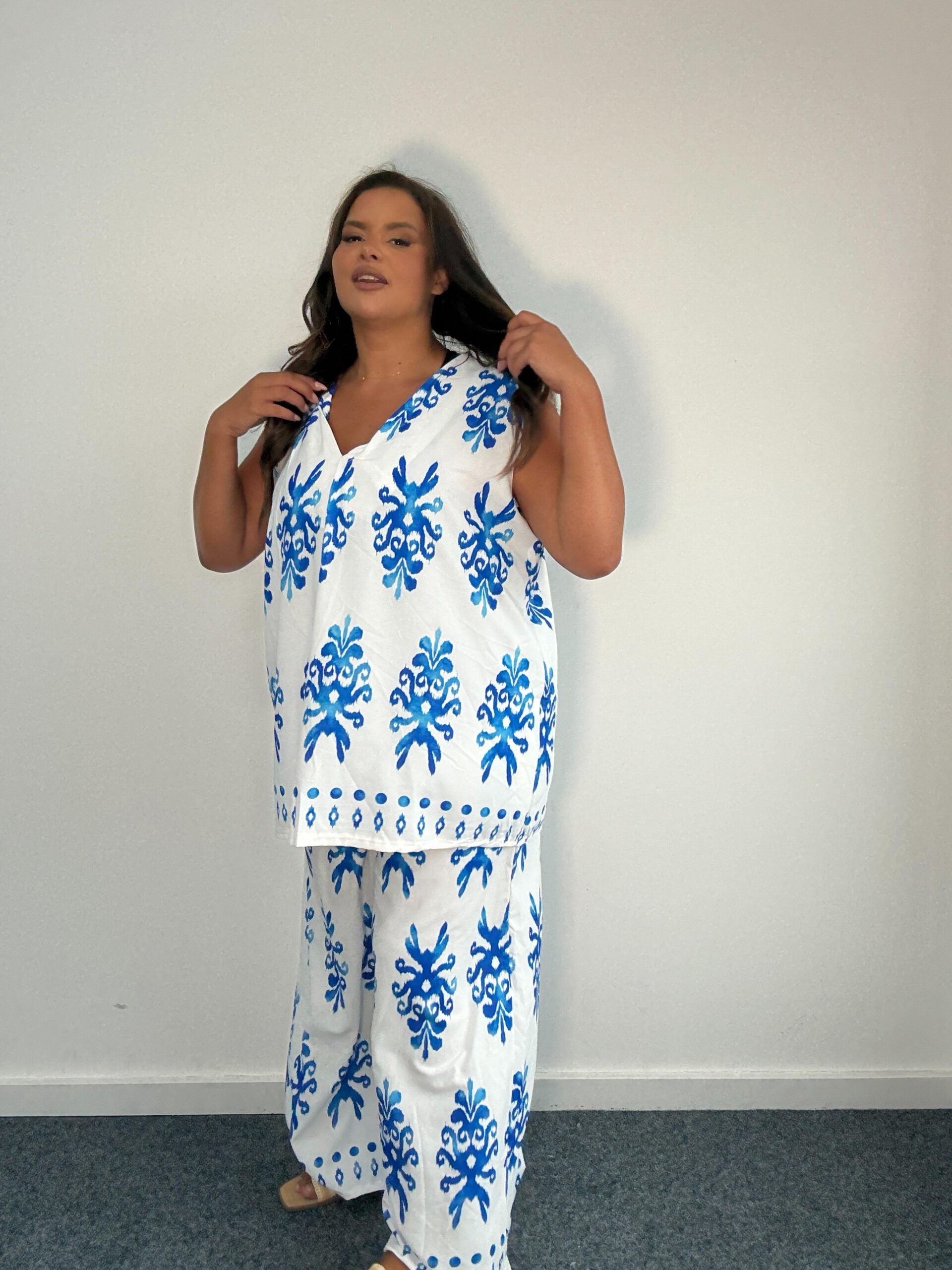 Step into effortless summer style with this bold and breezy Curve Tribal Print Co-Ord Set. Featuring a relaxed-fit sleeveless top and wide-leg trousers, both in a striking tribal-inspired print, this set offers maximum comfort with maximum impact. Perfect for day-to-night styling, just add sandals and statement accessories.