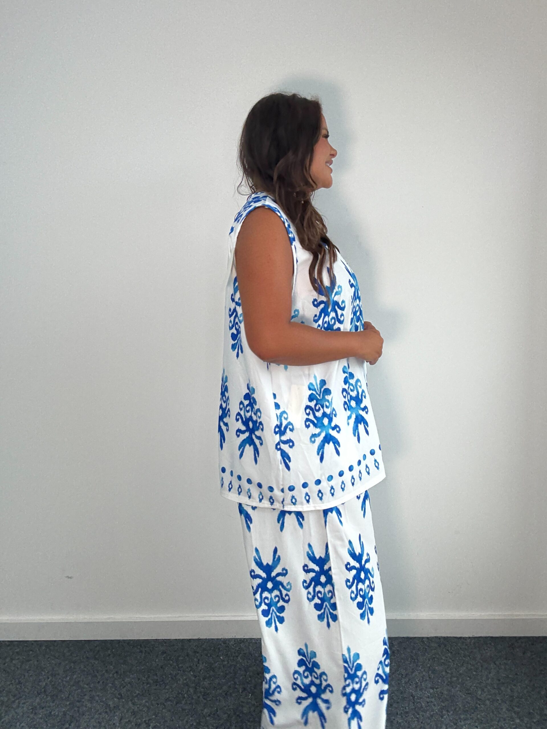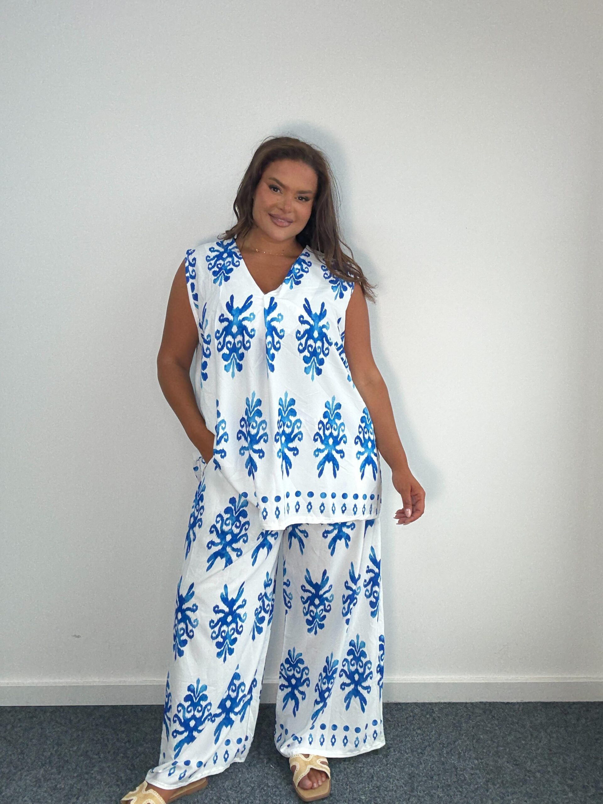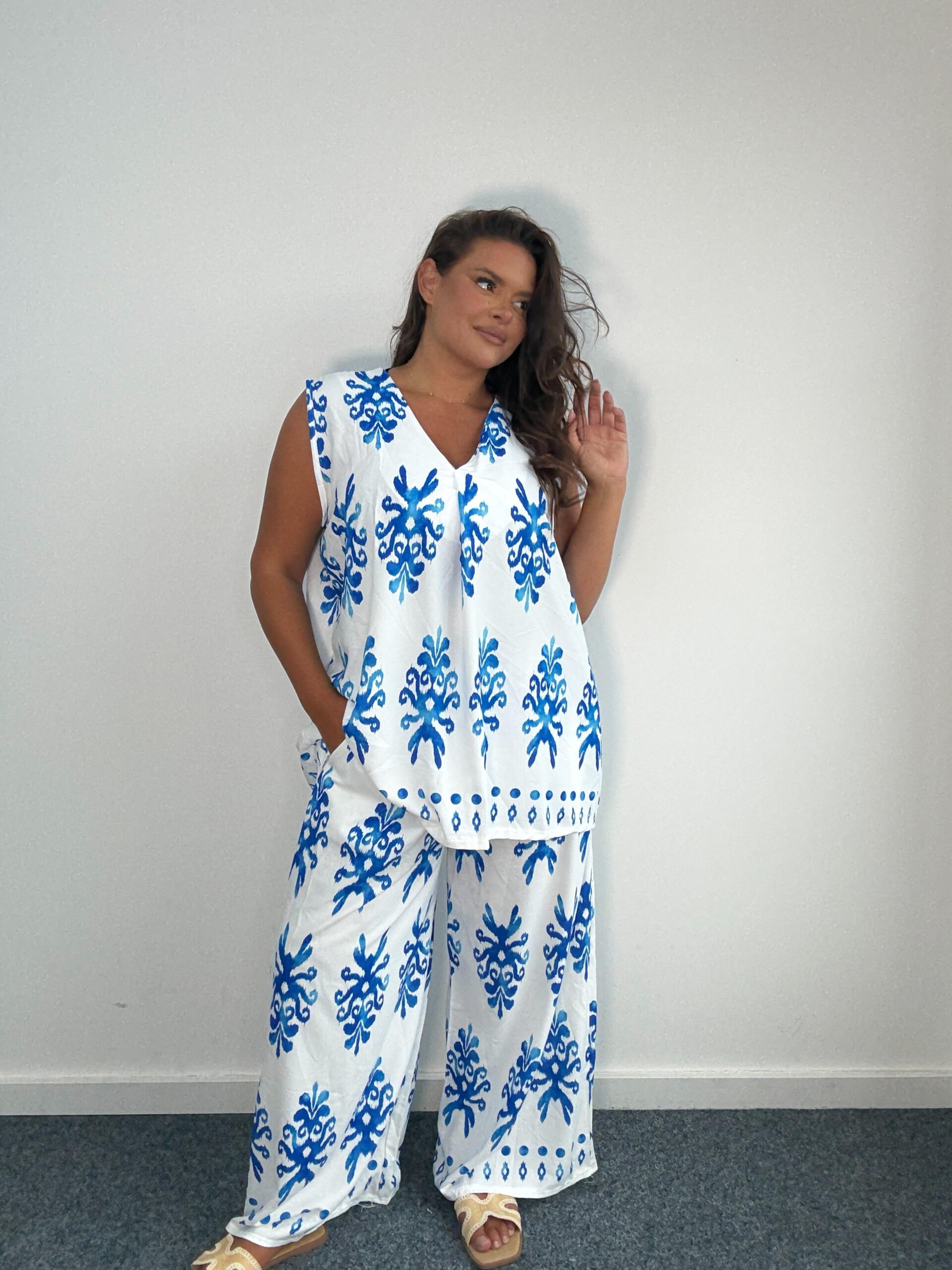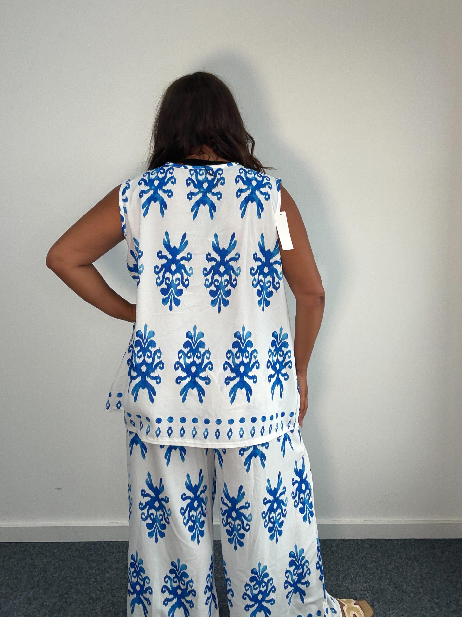 Step into effortless summer style with this bold and breezy Curve Tribal Print Co-Ord Set. Featuring a relaxed-fit sleeveless top and wide-leg trousers, both in a striking tribal-inspired print, this set offers maximum comfort with maximum impact. Perfect for day-to-night styling, just add sandals and statement accessories.