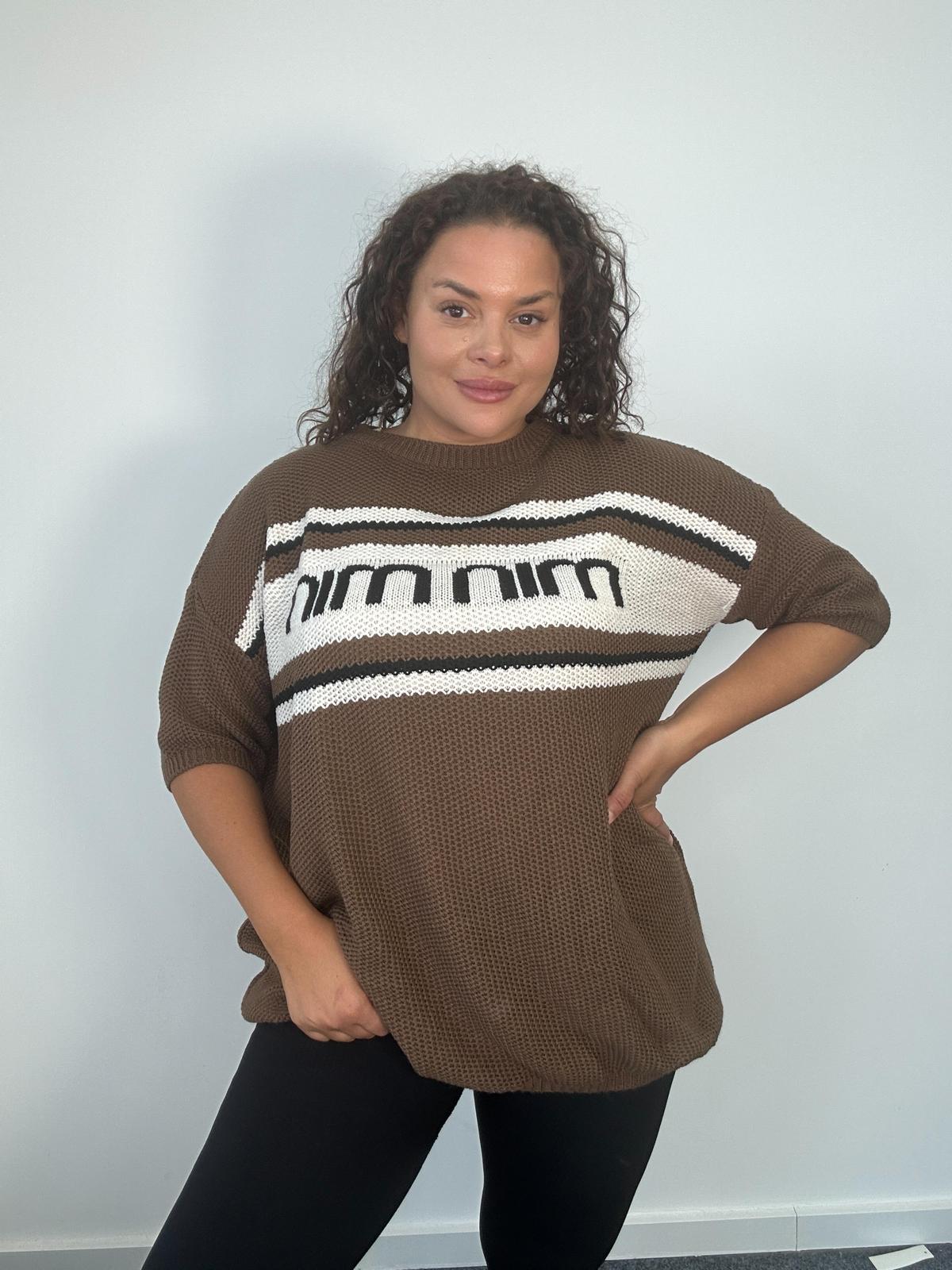 Plus Size Curve Brown Knitted Jumper with Stripe Detail x 2, 3 & 5 Pack Options