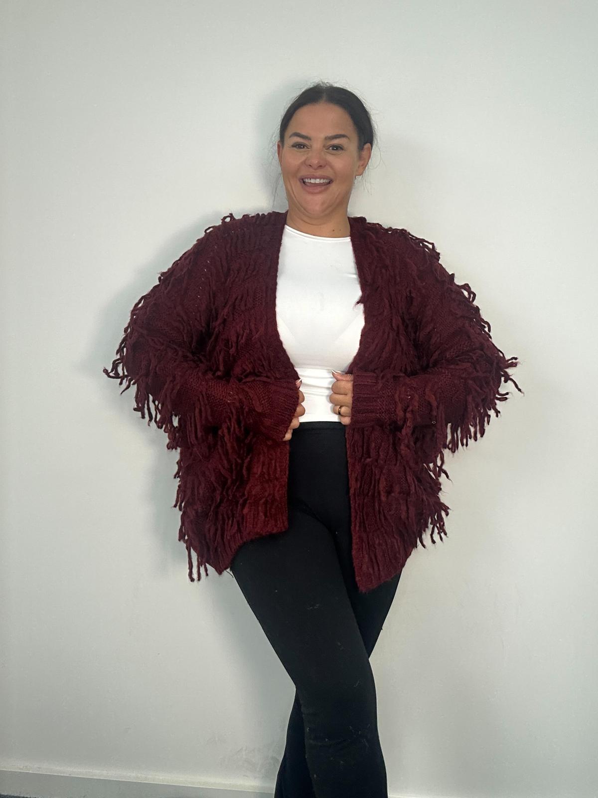 Elevate your wholesale knitwear offering with this plus size textured fringe cardigan. Designed to fit and flatter curves, this statement piece combines cozy knit comfort with playful fringe detailing for a standout look. Its open-front style makes it versatile for layering over casual or dressy outfits, giving your customers a trendy yet wearable seasonal must-have.
