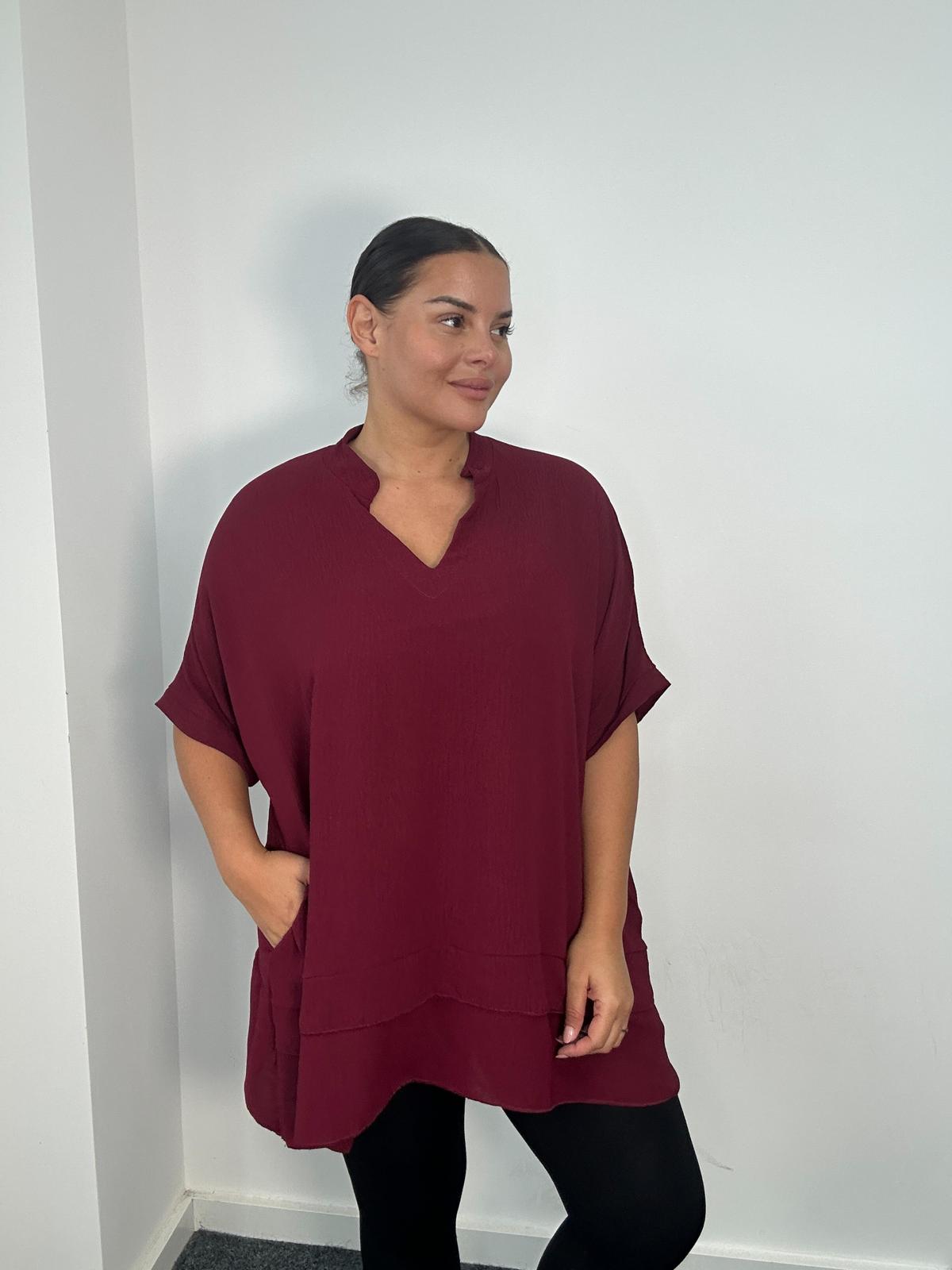 Plus Size Curve Burgundy V Neck Oversized Tunic Top x 2, 3 & 5 Pack Options