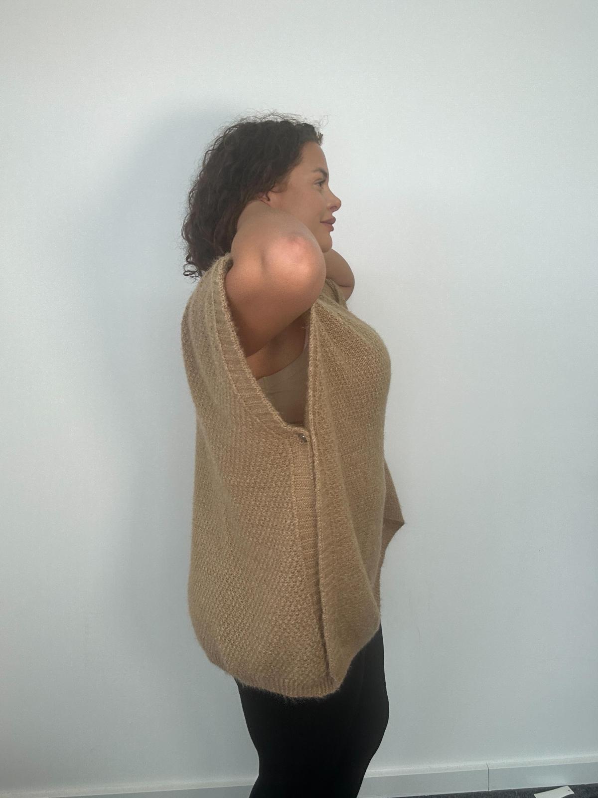 Keep it chic and cozy with our Plus Size Curve Knitted Jumper, designed with a relaxed oversized fit and short sleeves for easy layering. Crafted in a soft textured knit, this jumper features side slits for extra comfort and movement, making it a versatile piece for casual wear or smart layering. A must-have for your wholesale plus-size knitwear collection, perfect for transitioning between seasons.