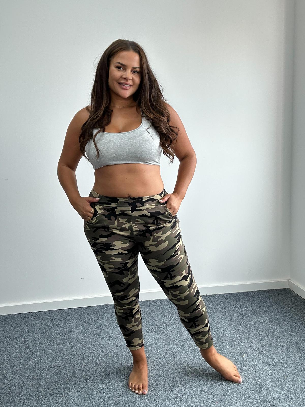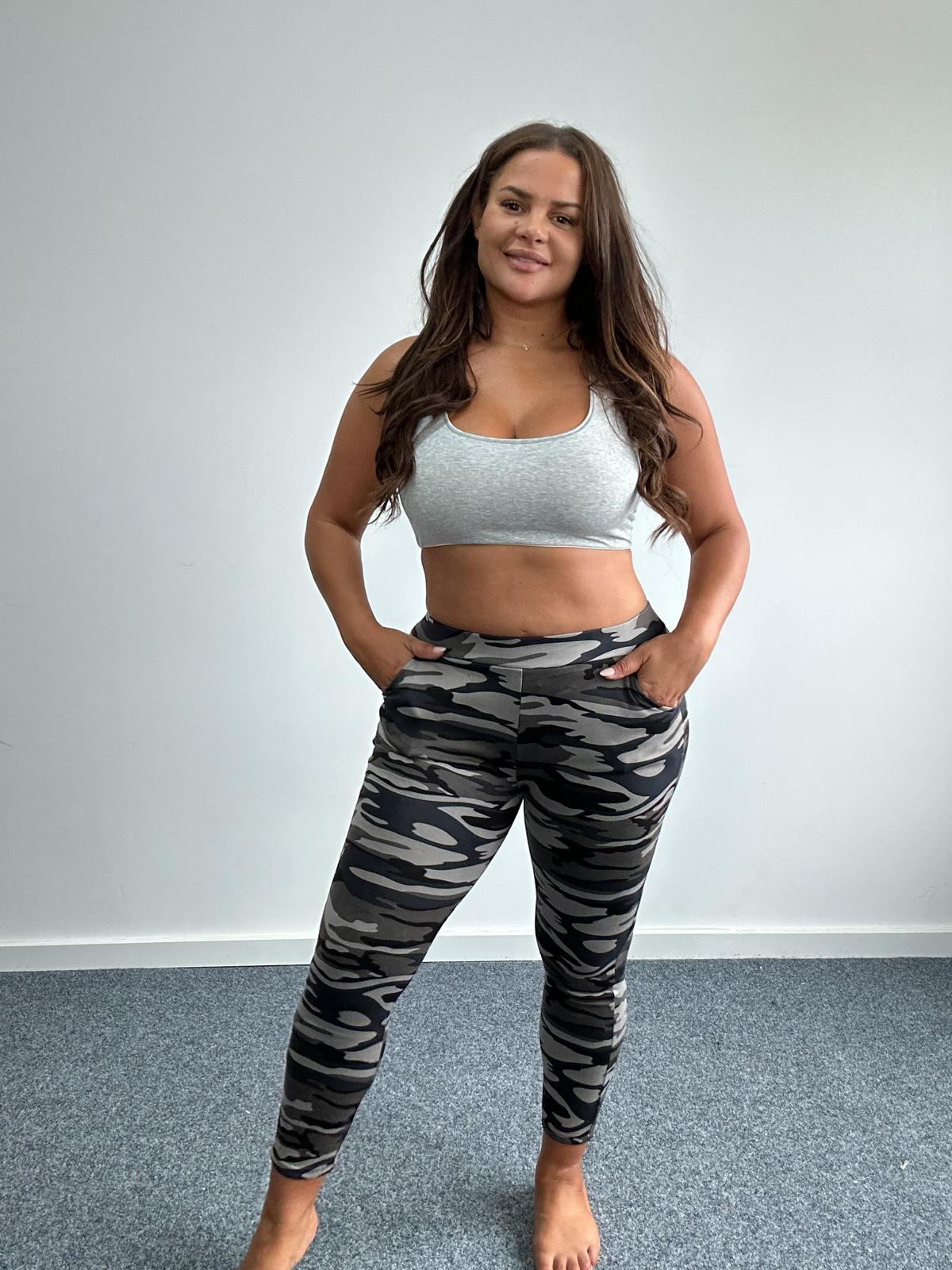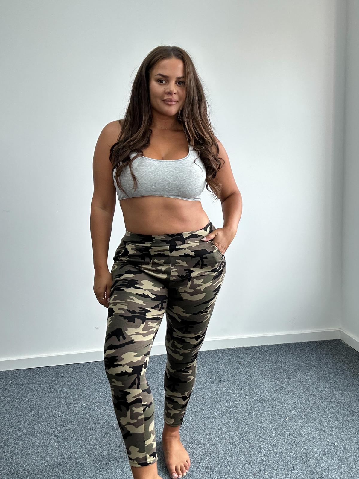 Tap into trend-led athleisure with this mixed pack of camouflage print leggings, designed for curves. This bundle includes two bold camo colourways classic green and versatile grey crafted in a soft stretch fabric that moves with the body. The high-rise waistband provides a secure and flattering fit, making them perfect for activewear, lounging, or casual street style.