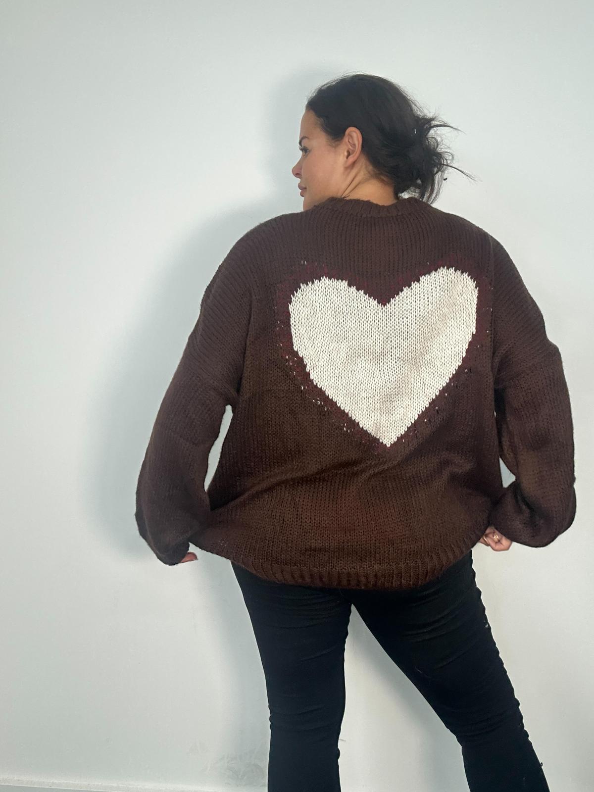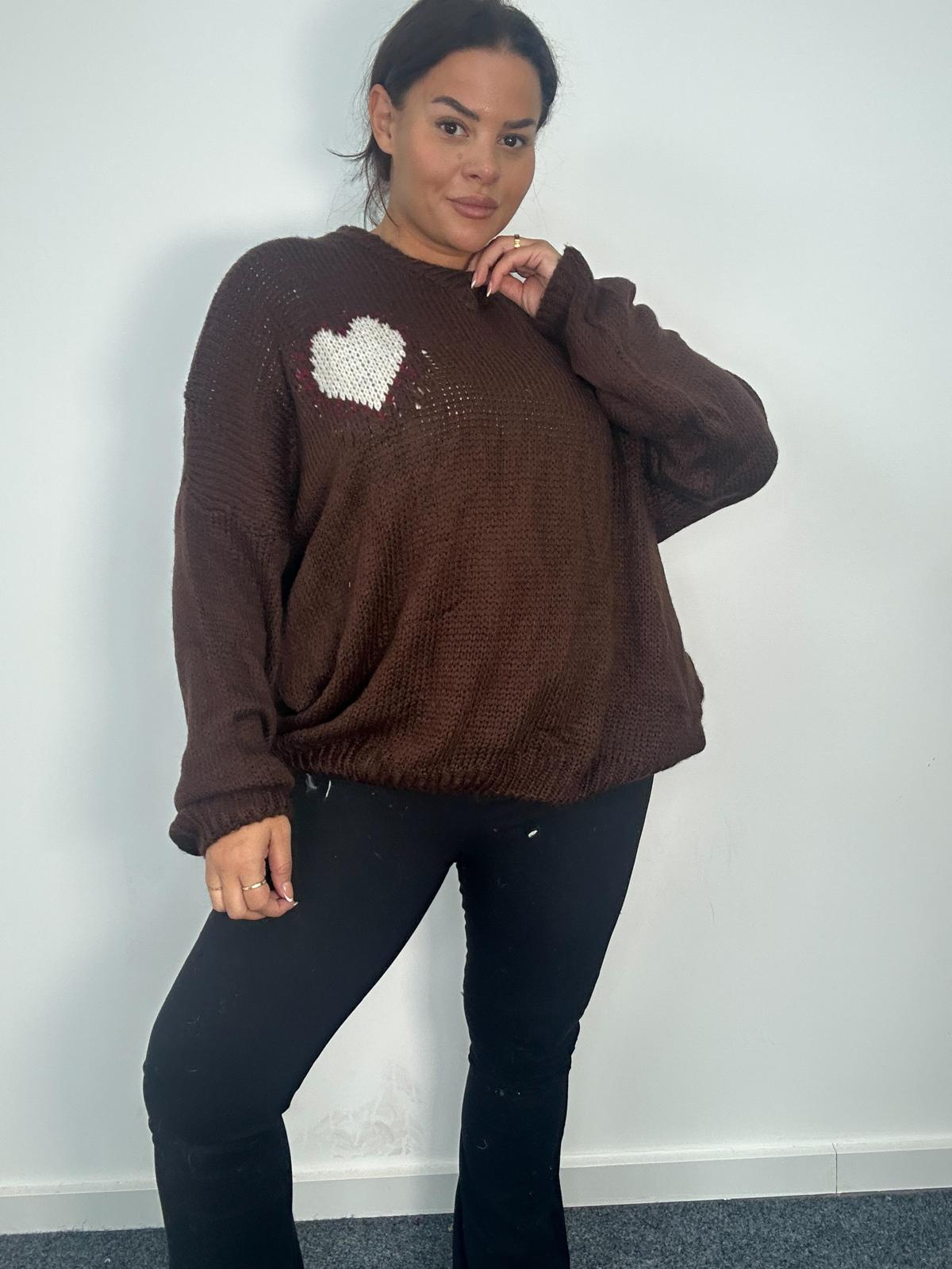 Plus Size Curve Chocolate Brown Heart Motif Knit Jumper x 2, 3 & 5 Pack Options