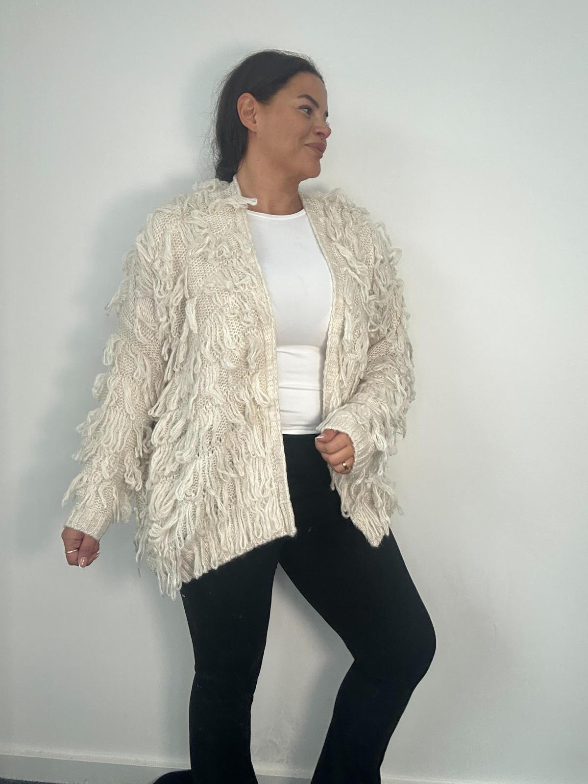 Plus Size Curve Cream Textured Fringe Knit Cardigan x 2, 3 & 5 Pack Options