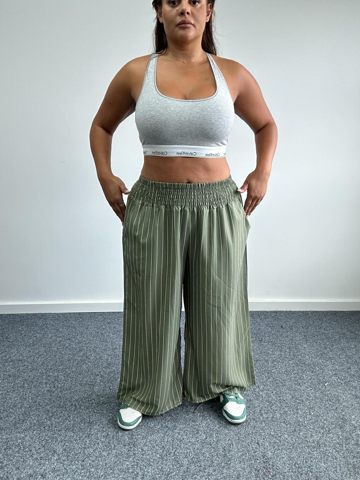 Plus Size Curve Green Wide Leg Pinstripes Trousers with Pockets x 2, 3 & 5 Pack Options