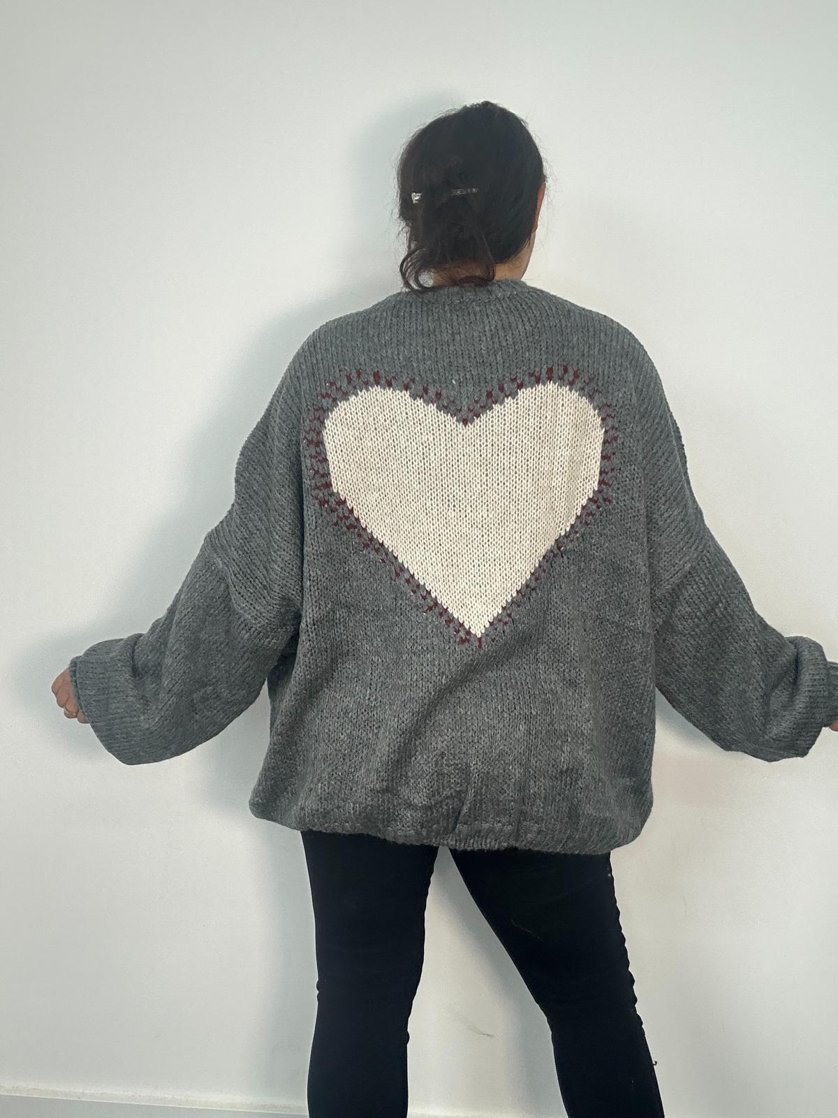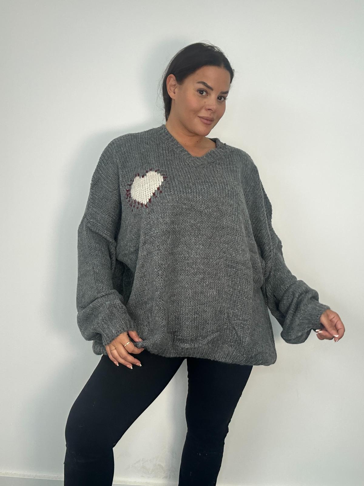 Add playful charm to your wholesale knitwear line with this plus size knit jumper featuring a bold white heart motif on the front and back. Designed in a relaxed oversized fit, it offers comfort and style for curvy women. This cosy sweater is perfect for casual outfits, giving your customers a fun statement piece while keeping them warm and stylish.