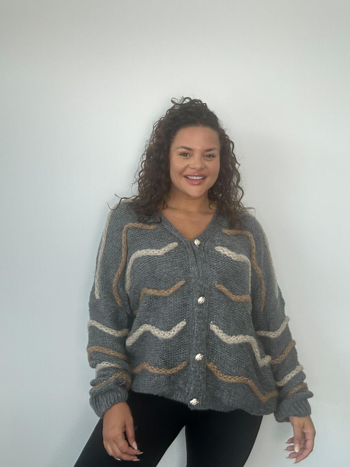Plus Size Curve Grey Knitted Cardigan with Wave Stripe Design x 2, 3 & 5 Pack Options