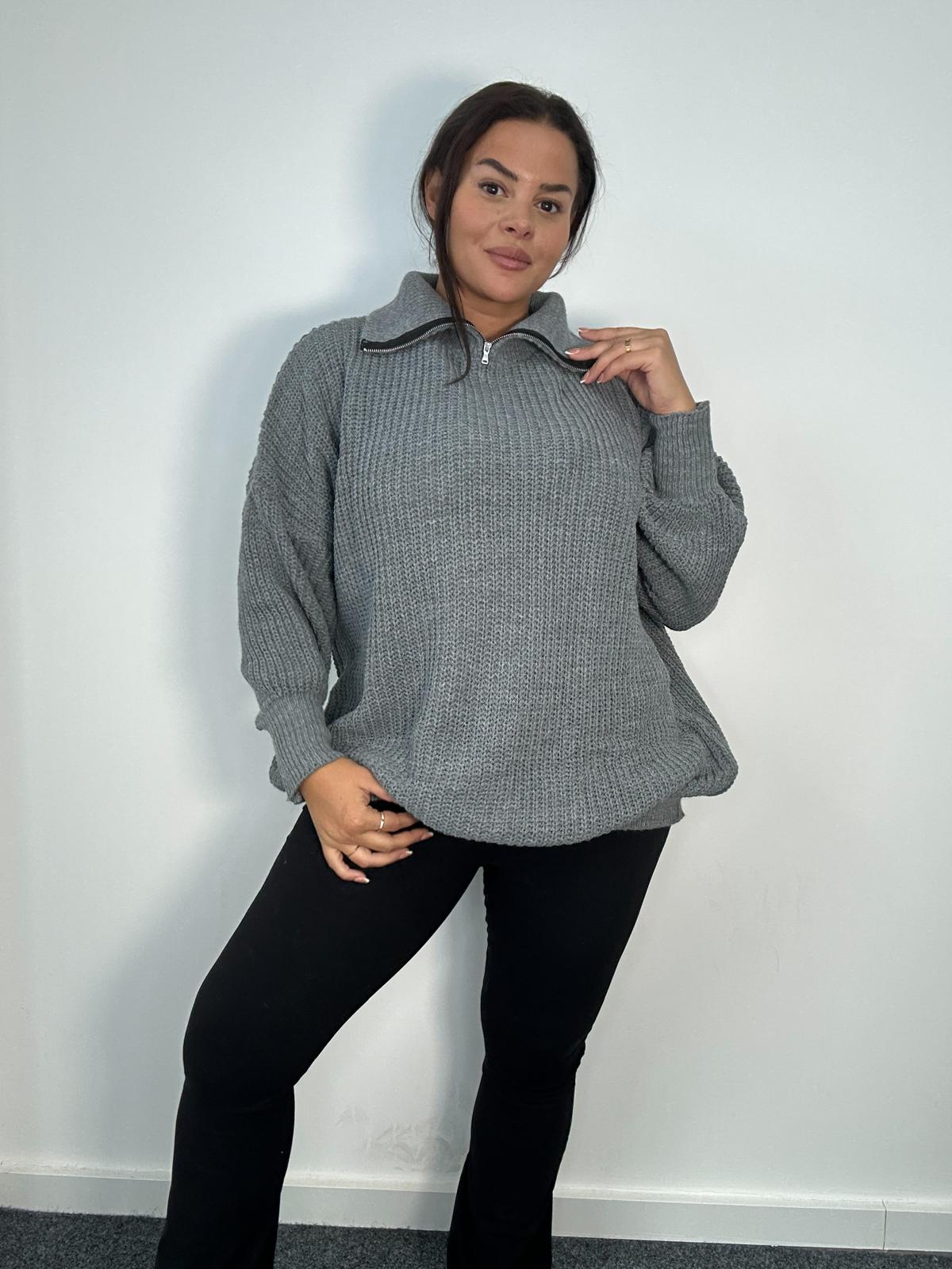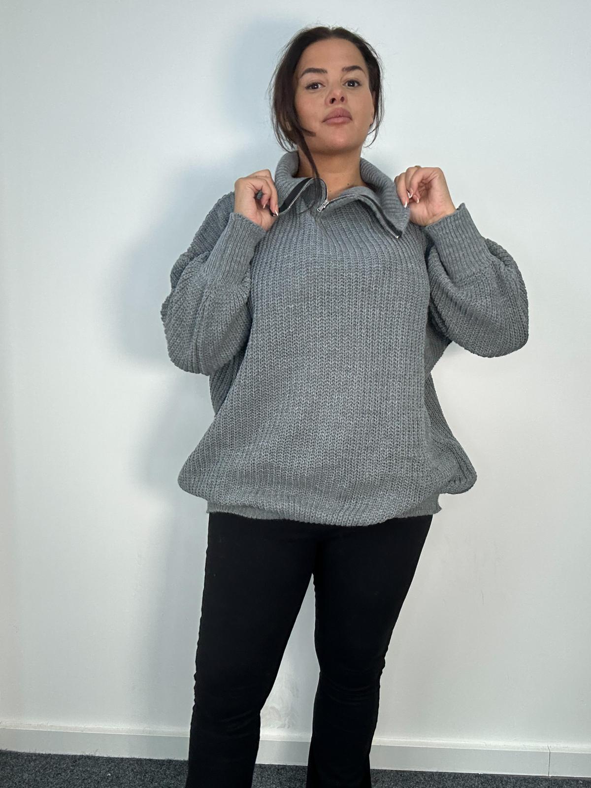 Plus Size Curve Grey Oversized Half Zip Chunky Knit Sweater x 2, 3 & 5 Pack Options