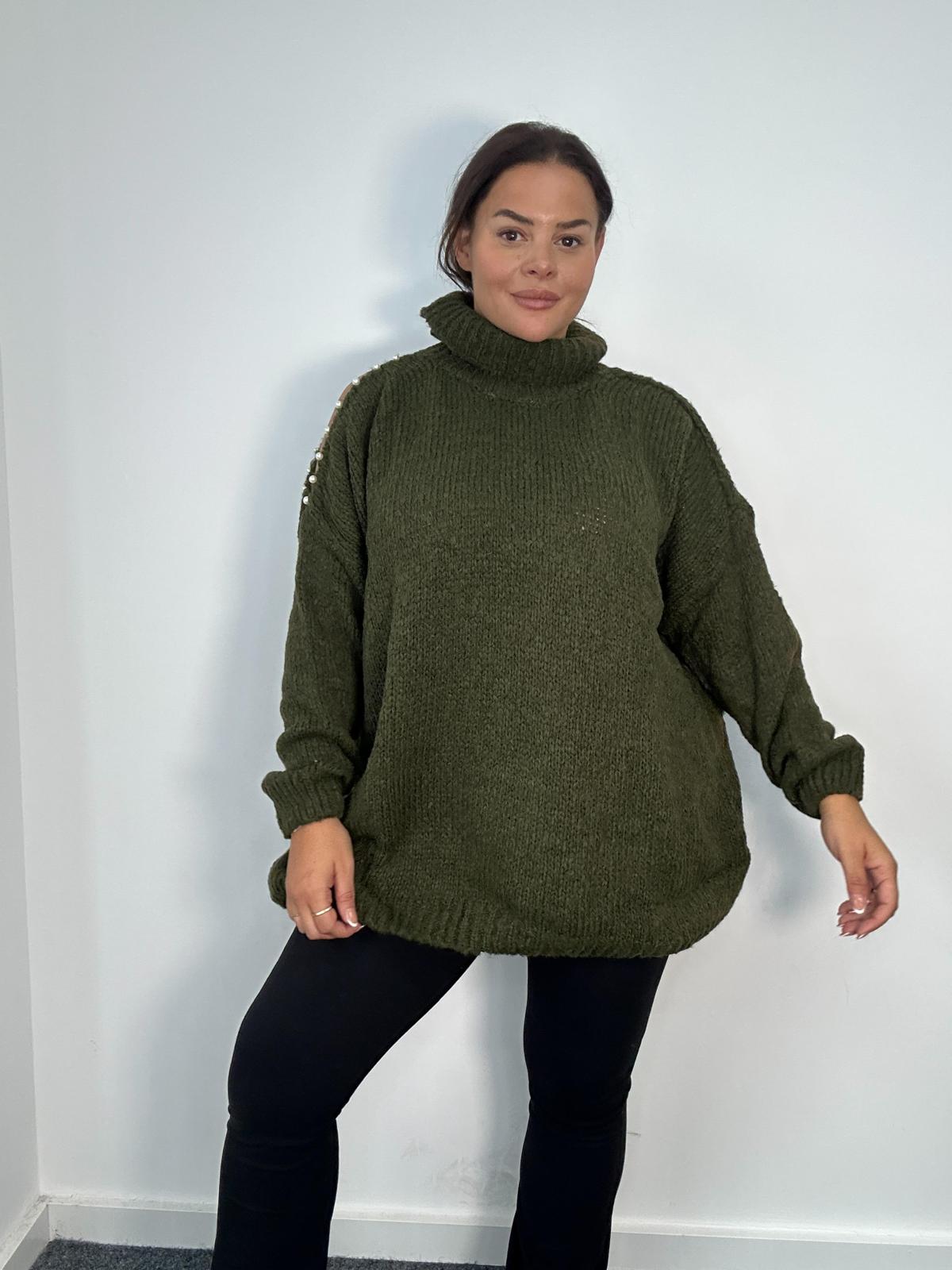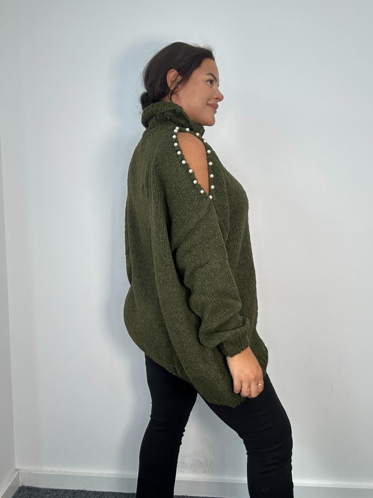 Plus Size Curve Khaki Pearl Embellished Cold Shoulder Knit Sweater x 2, 3 & 5 Pack Options