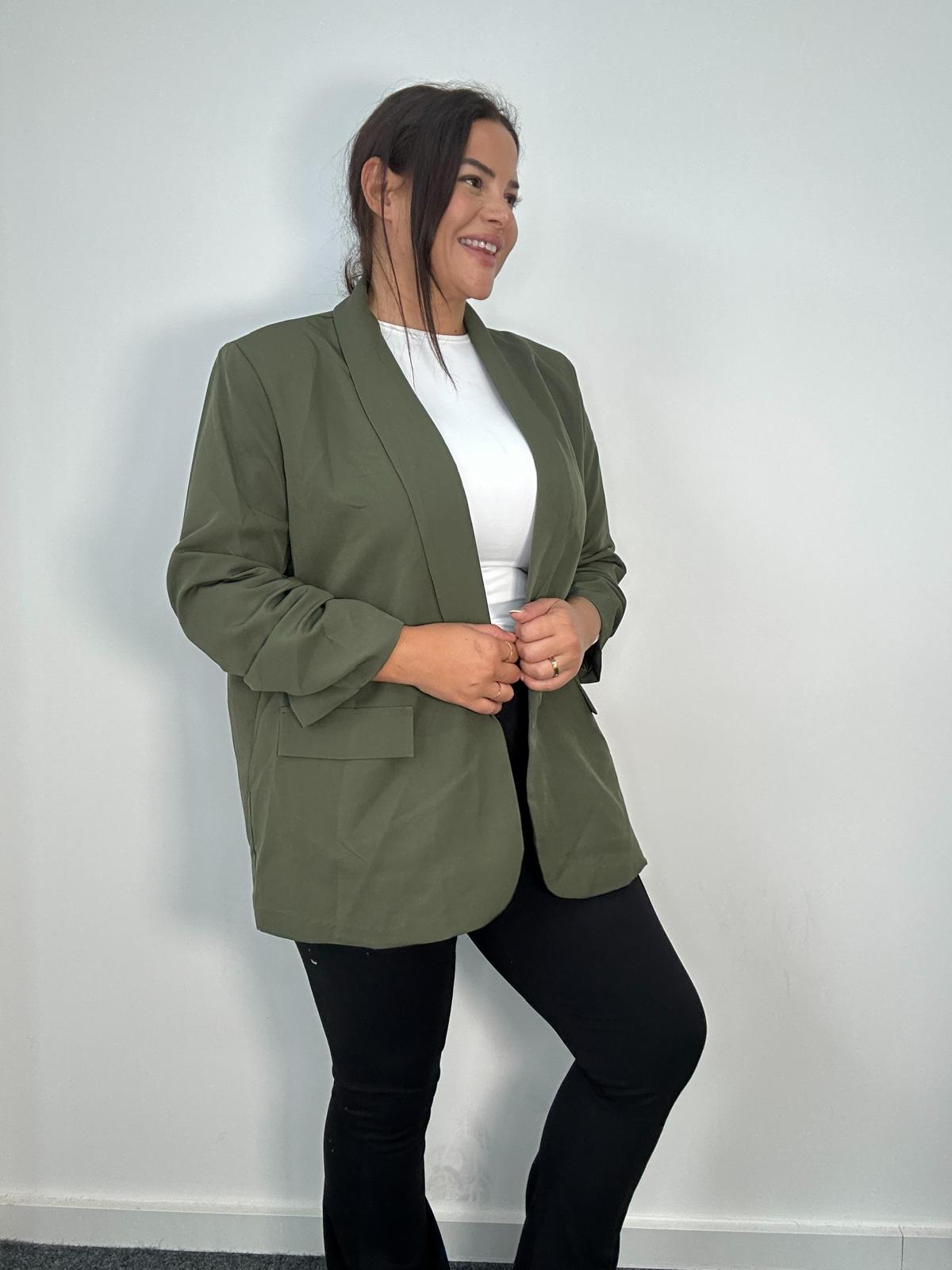 Bring bold sophistication to your wholesale range with this plus size open blazer. Designed with curves in mind, it features a tailored fit, structured shoulders, and front flap pockets for a polished look. The open-front design makes it versatile and easy to layer over dresses, blouses, or casual tops, ensuring your customers can dress it up for workwear or down for smart-casual styling.