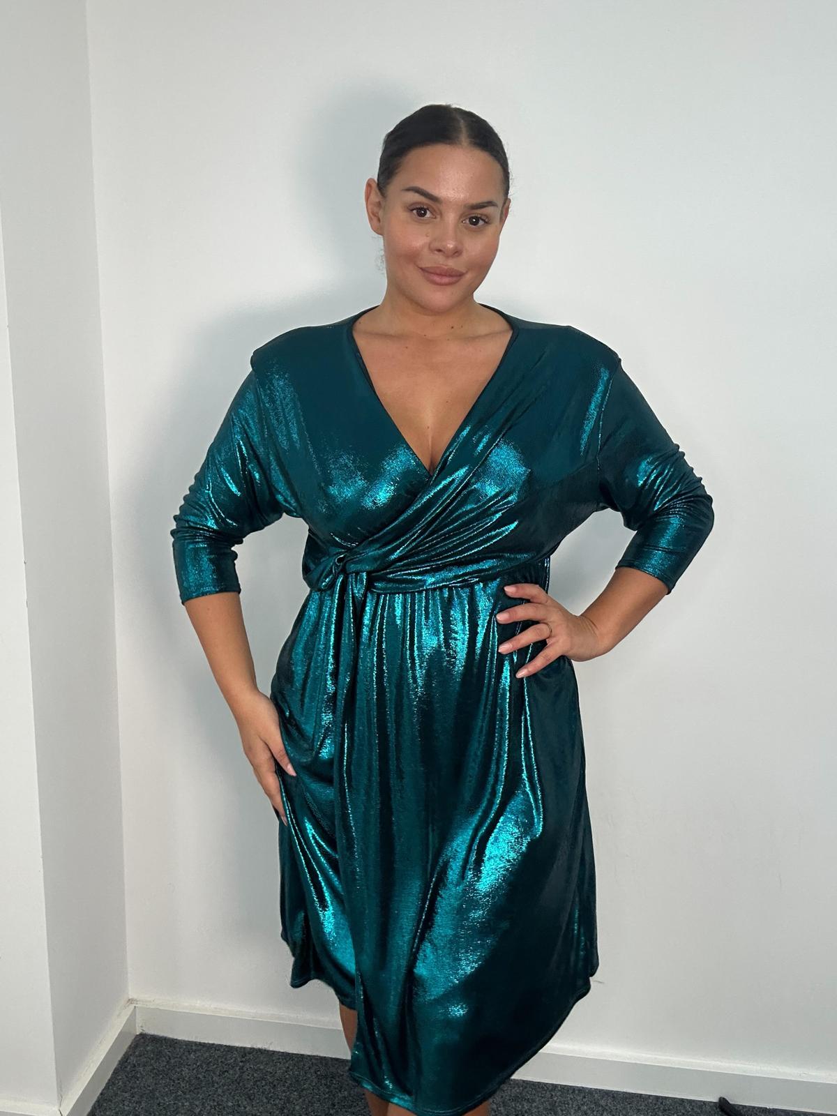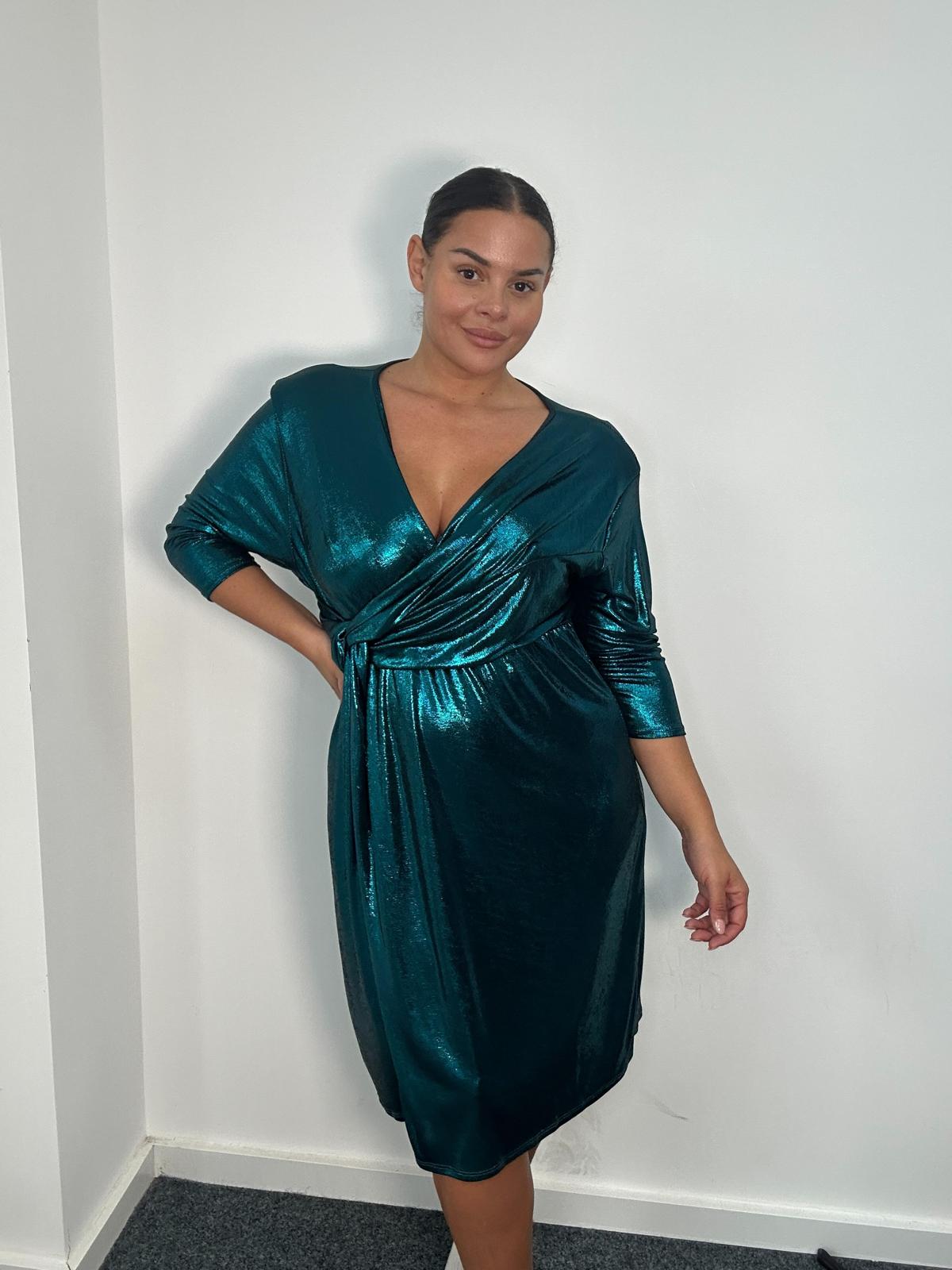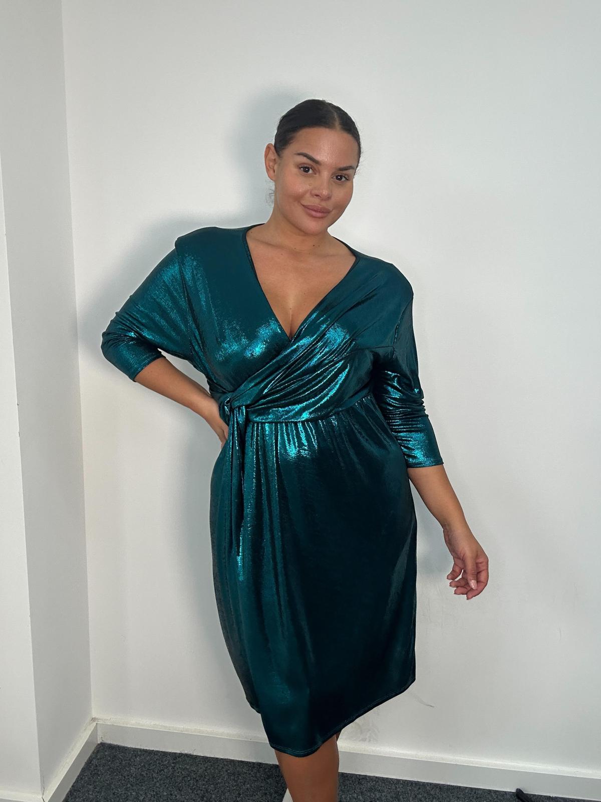 Bring a touch of luxe to your boutique’s eveningwear range with our Plus Size Metallic Wrap Midi Dress. Crafted from shimmering stretch fabric that drapes beautifully over curves, this elegant dress features a flattering wrap-style front, 3/4 sleeves, and a waist tie for a figure-enhancing fit. The metallic finish adds a glamorous, modern touch perfect for party season, special occasions, or night-out looks. Designed for comfort and confidence, this standout piece is ideal for retailers seeking chic, trend-led plus-size occasionwear their customers will love.