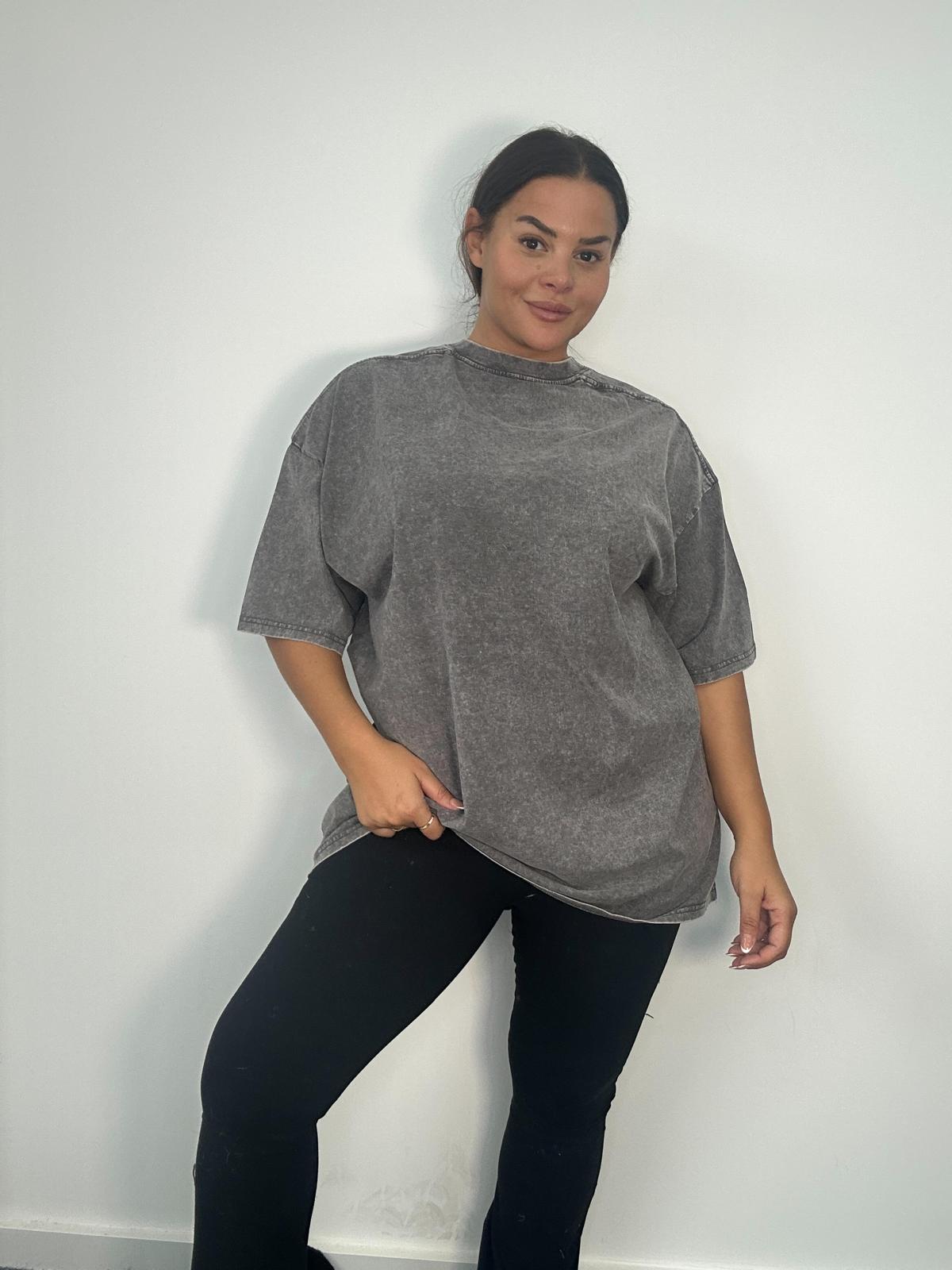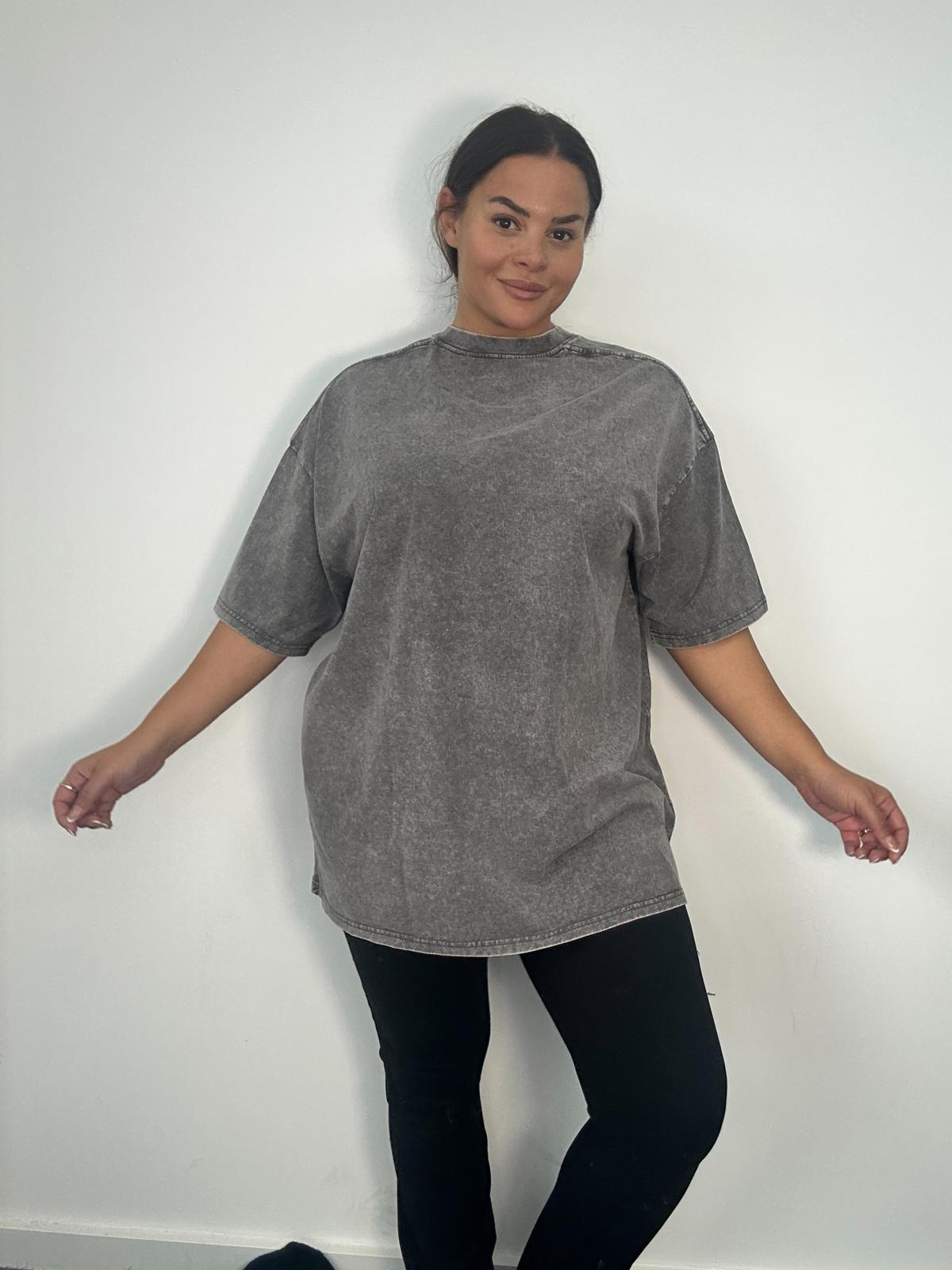 Plus Size Curve Charcoal Grey Oversized Acid Wash T-Shirt x 6
