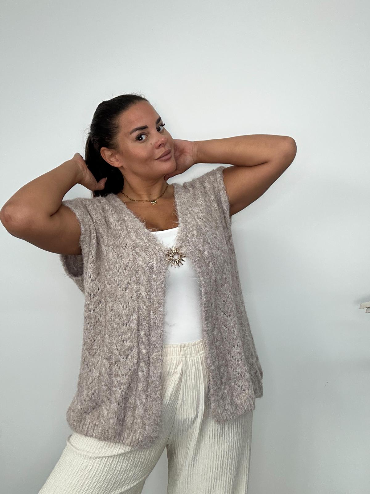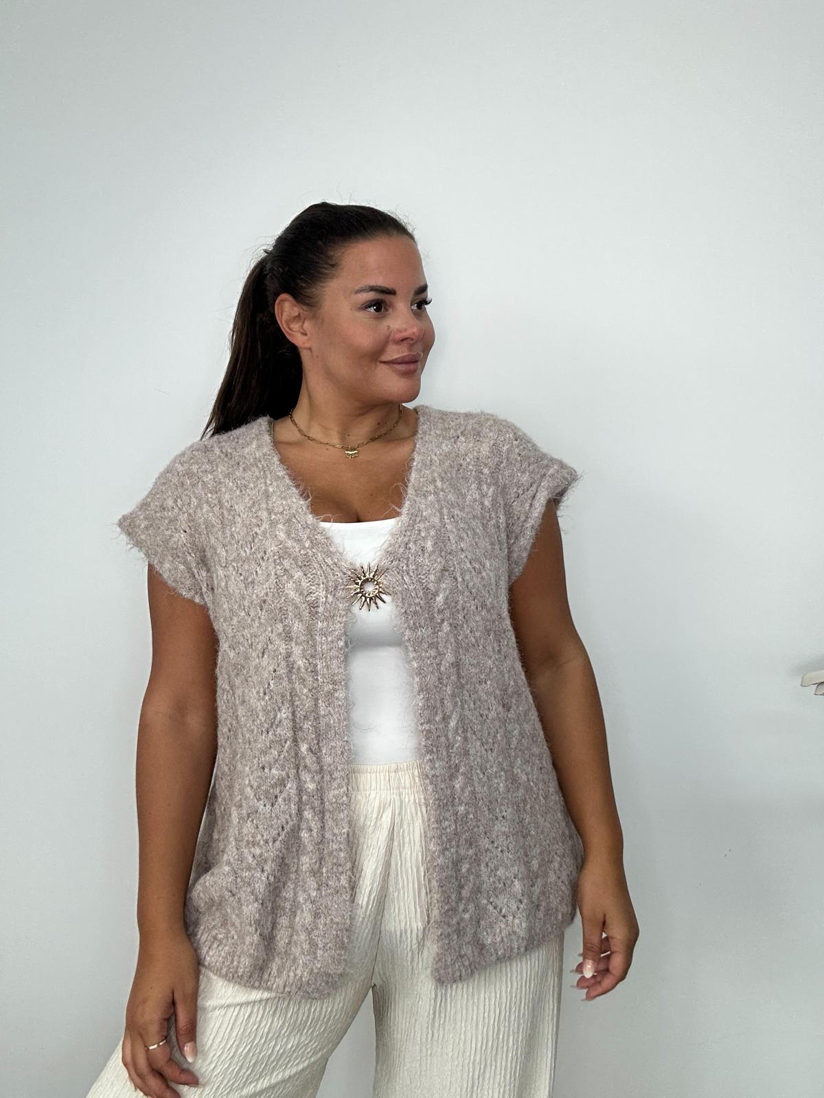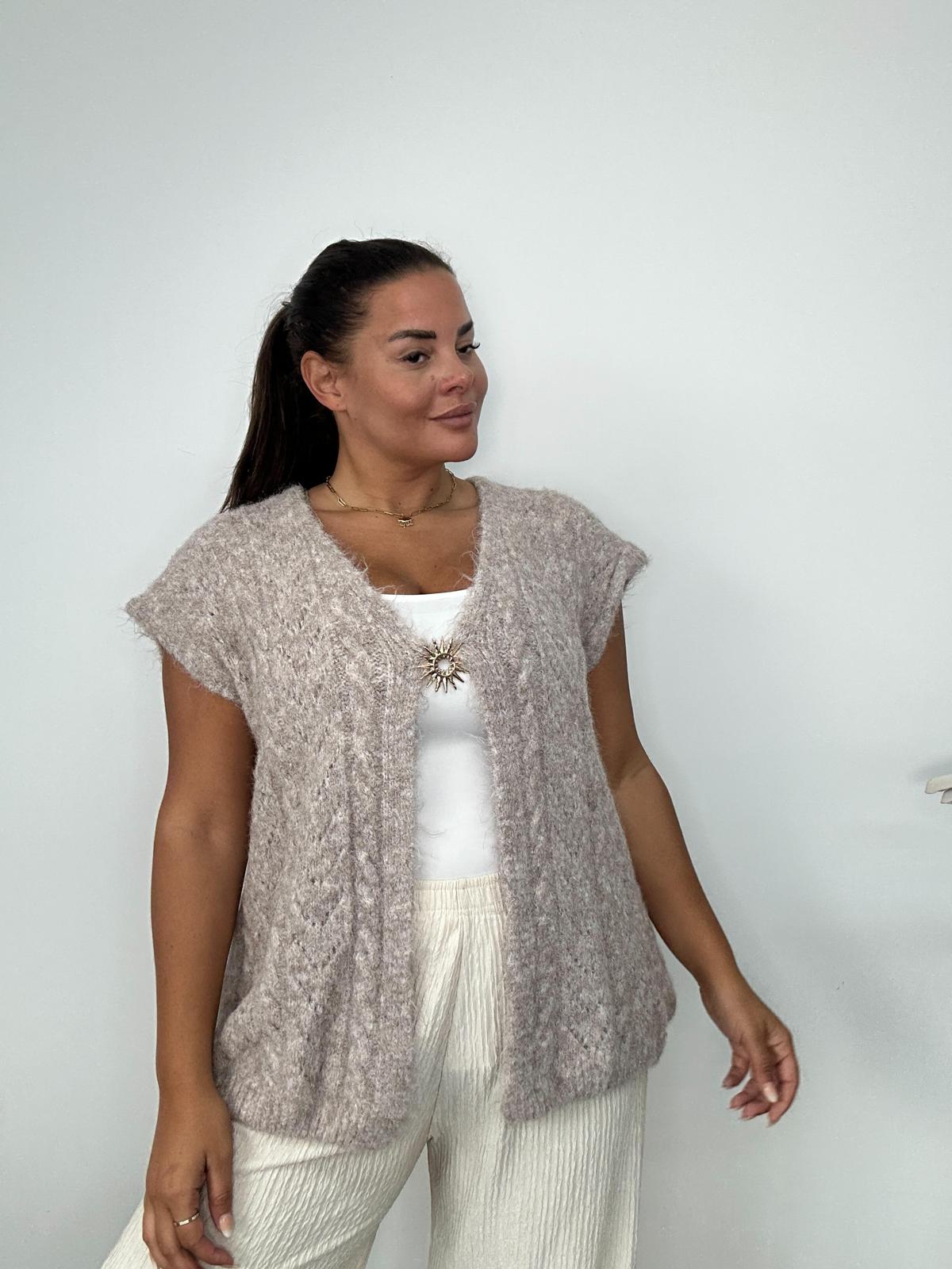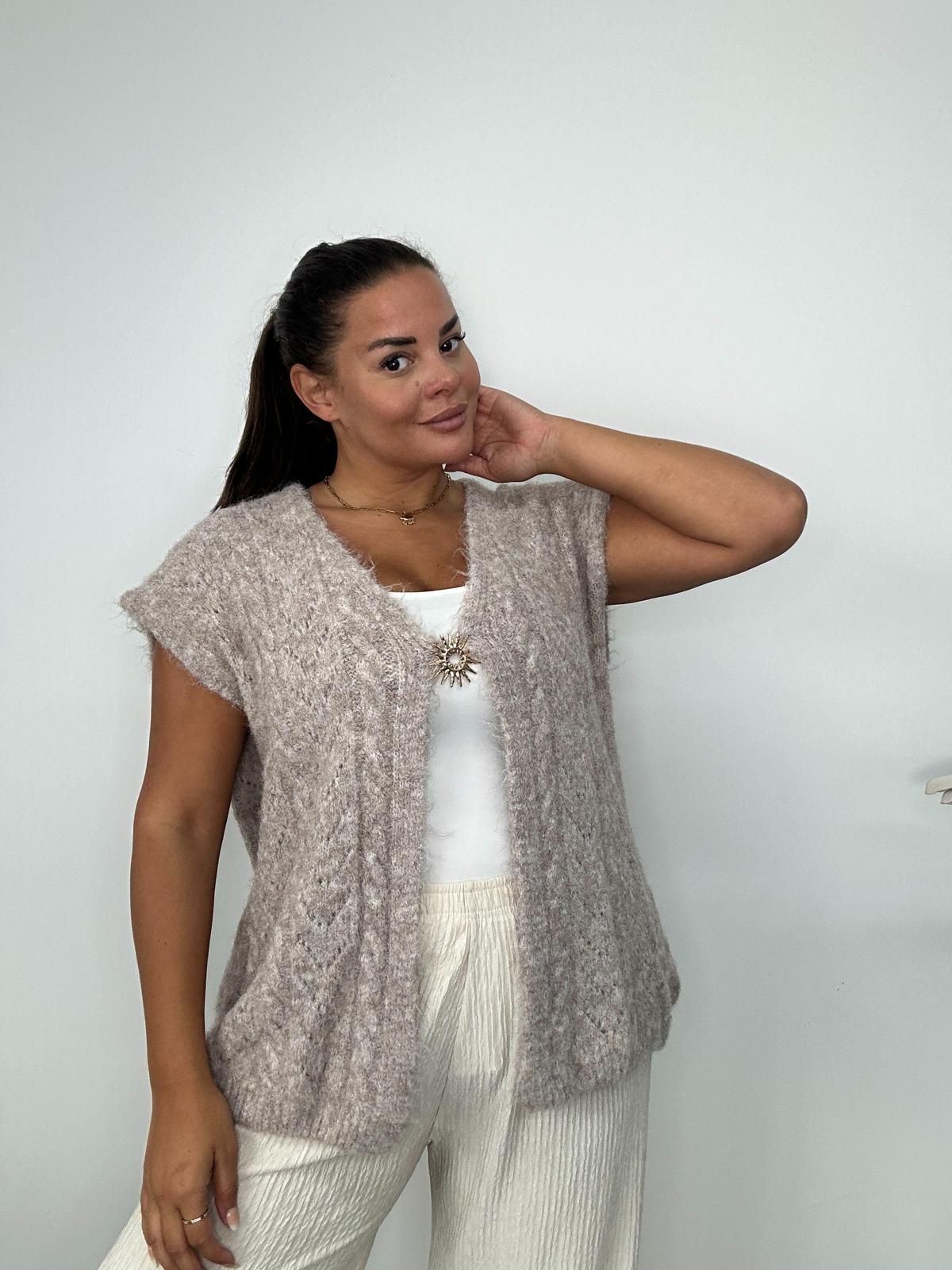 Plus Size Curve Oatmel Knitted Sleeveless Cardigan with Statement Button x 2, 3 & 5 Pack Options