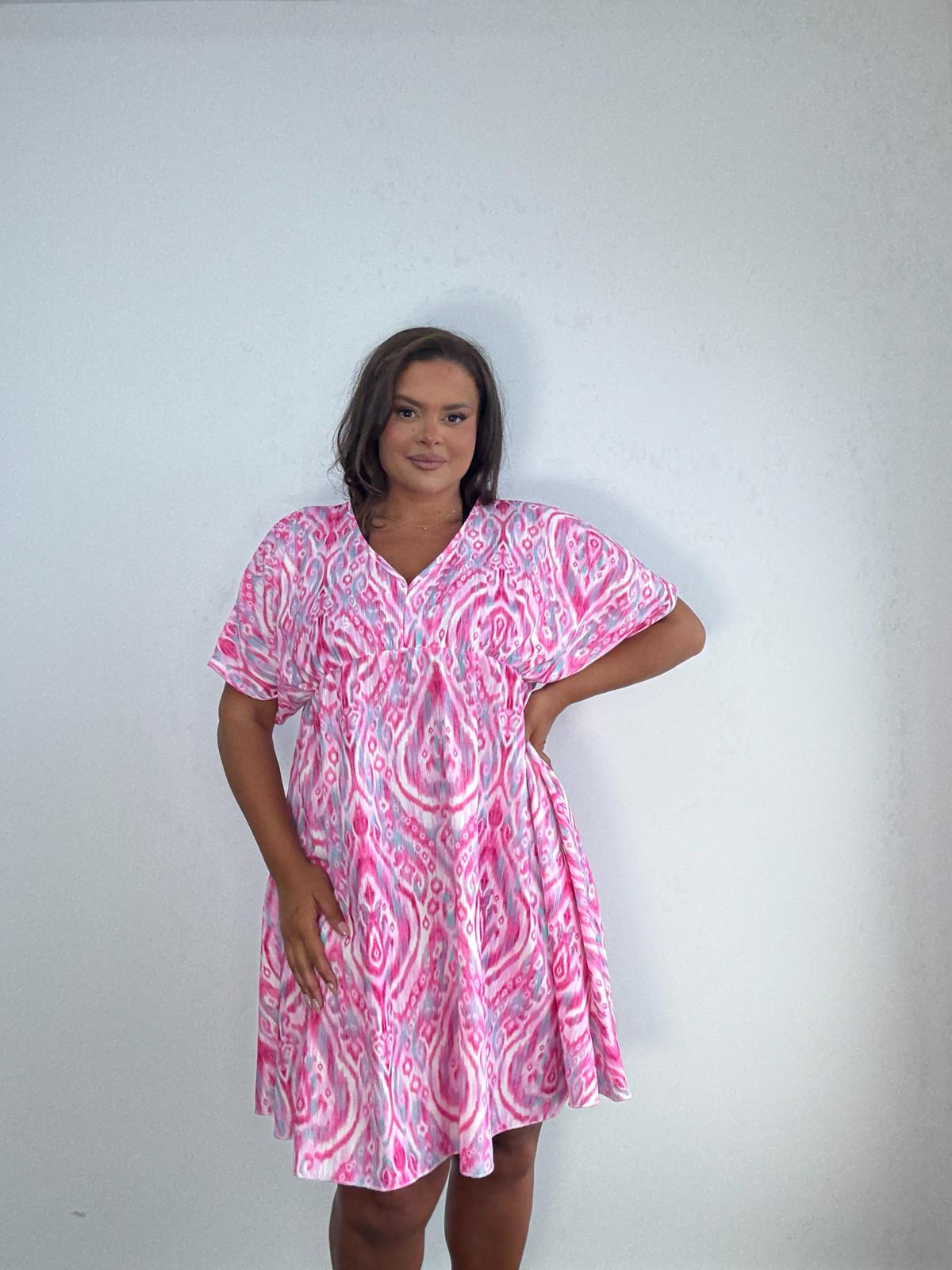 Step out in effortless style with our Plus Size Curve Abstract Print Mini Dress! Featuring a striking abstract pattern, this dress offers a fresh, vibrant vibe that’s perfect for any season. Designed with a flattering v-neckline and a relaxed, curve friendly fit, it delivers all day comfort and style. The lightweight fabric and playful mini length make it ideal for holidays, casual outings, or dressed up days with your favourite accessories.