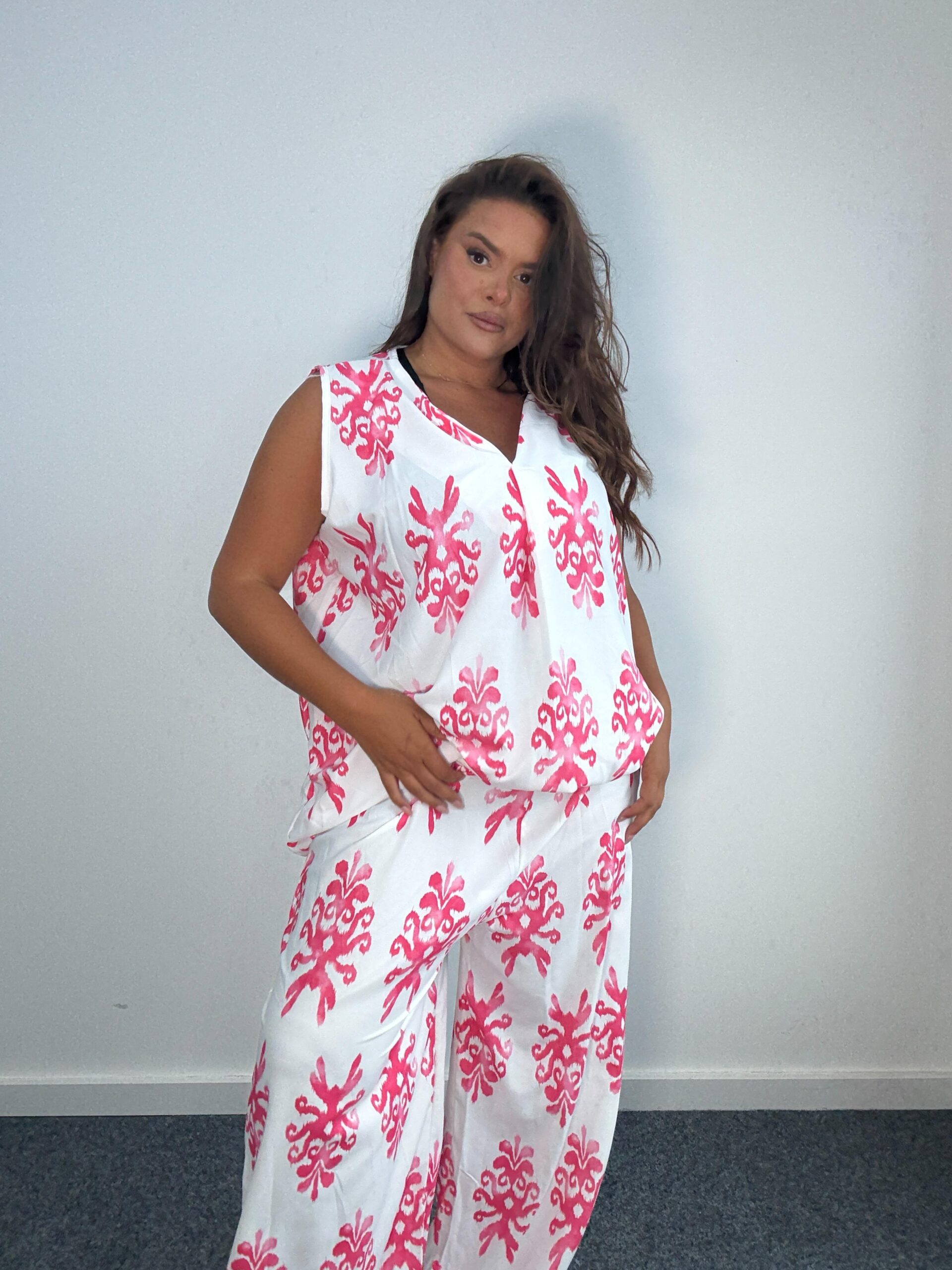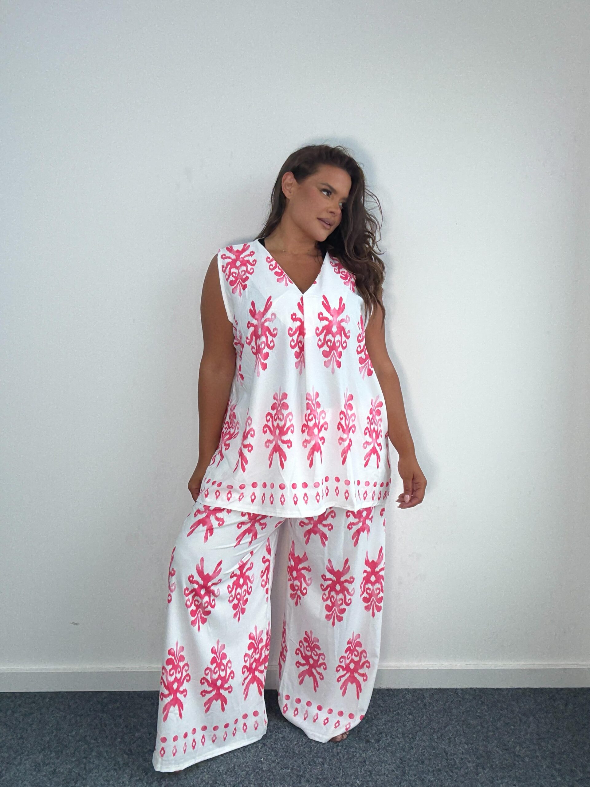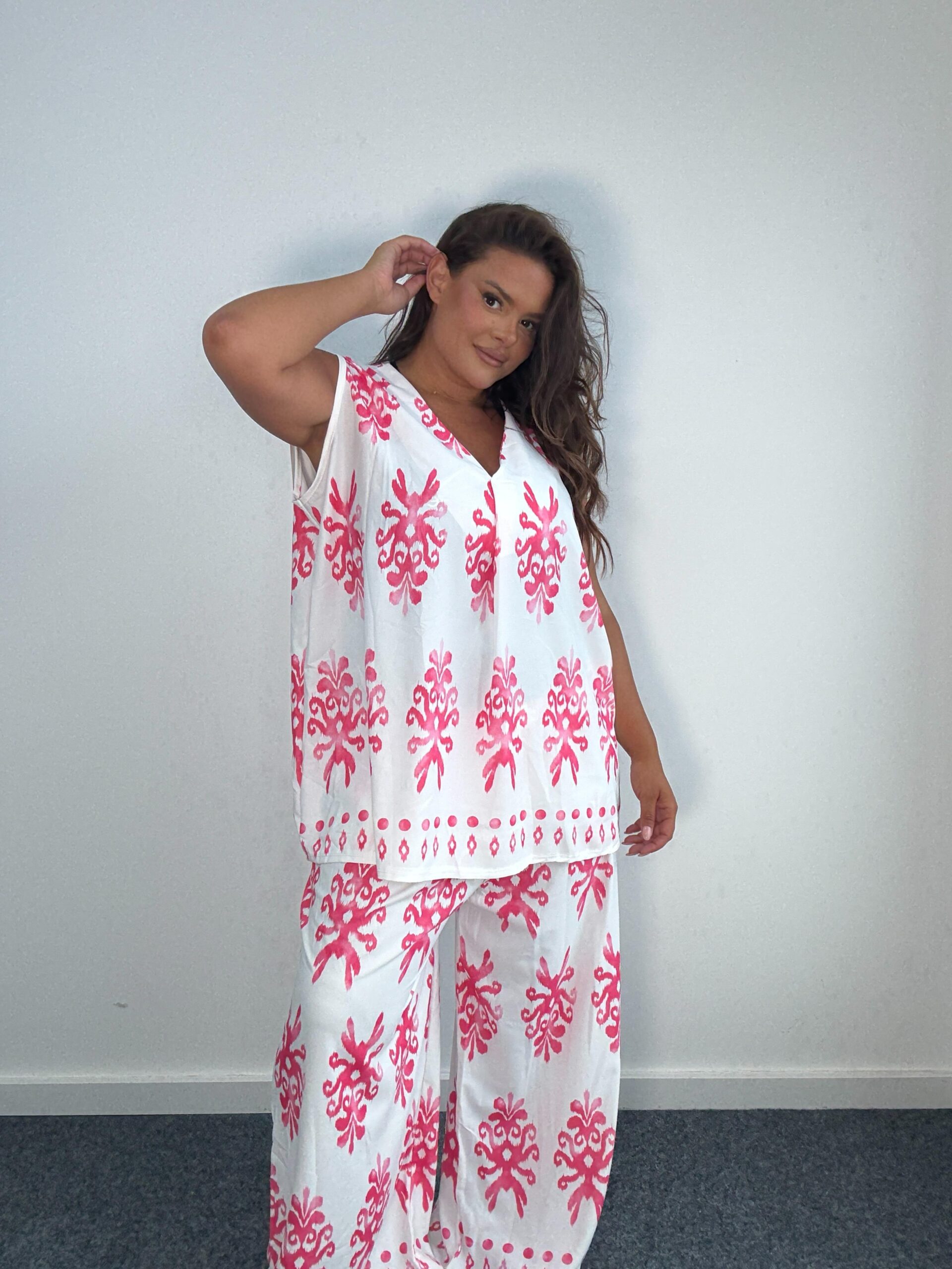 Step into effortless summer style with this bold and breezy Curve Tribal Print Co-Ord Set. Featuring a relaxed-fit sleeveless top and wide-leg trousers, both in a striking tribal-inspired print, this set offers maximum comfort with maximum impact. Perfect for day-to-night styling, just add sandals and statement accessories.