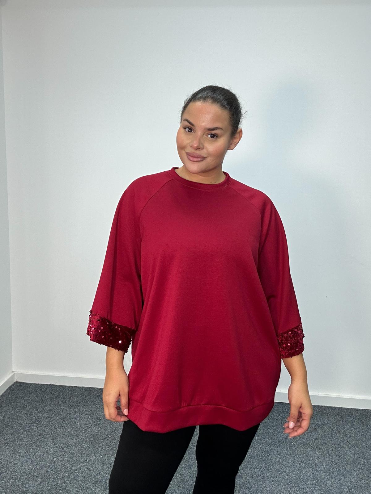 Bring a touch of glam to your everyday look with our Plus Size Sequin Cuff Oversized Sweatshirt. Designed for curves, this relaxed fit jumper features shimmering sequin embellishments on the wide sleeves for a chic twist on casualwear. The soft-touch fabric ensures comfort all day long, while the loose silhouette flatters every shape. Perfect for dressing up your off-duty look or adding sparkle to your lounge edit.
