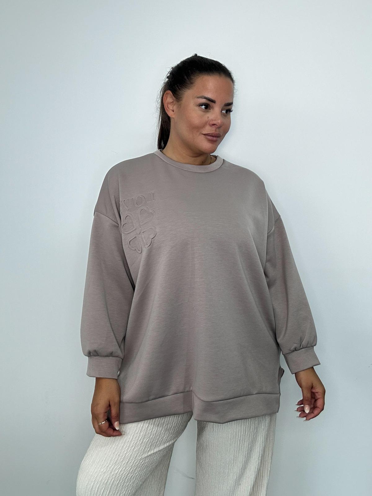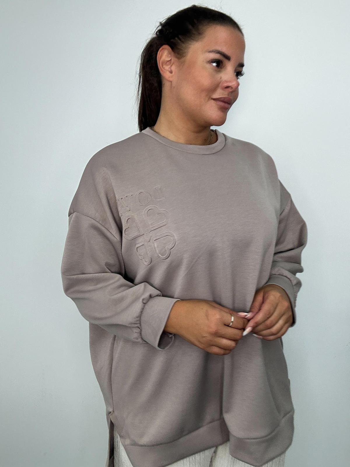 Plus Size Curve Taupe Sweatshirt with Embossed Love Detail x 2, 3 & 5 Pack Options