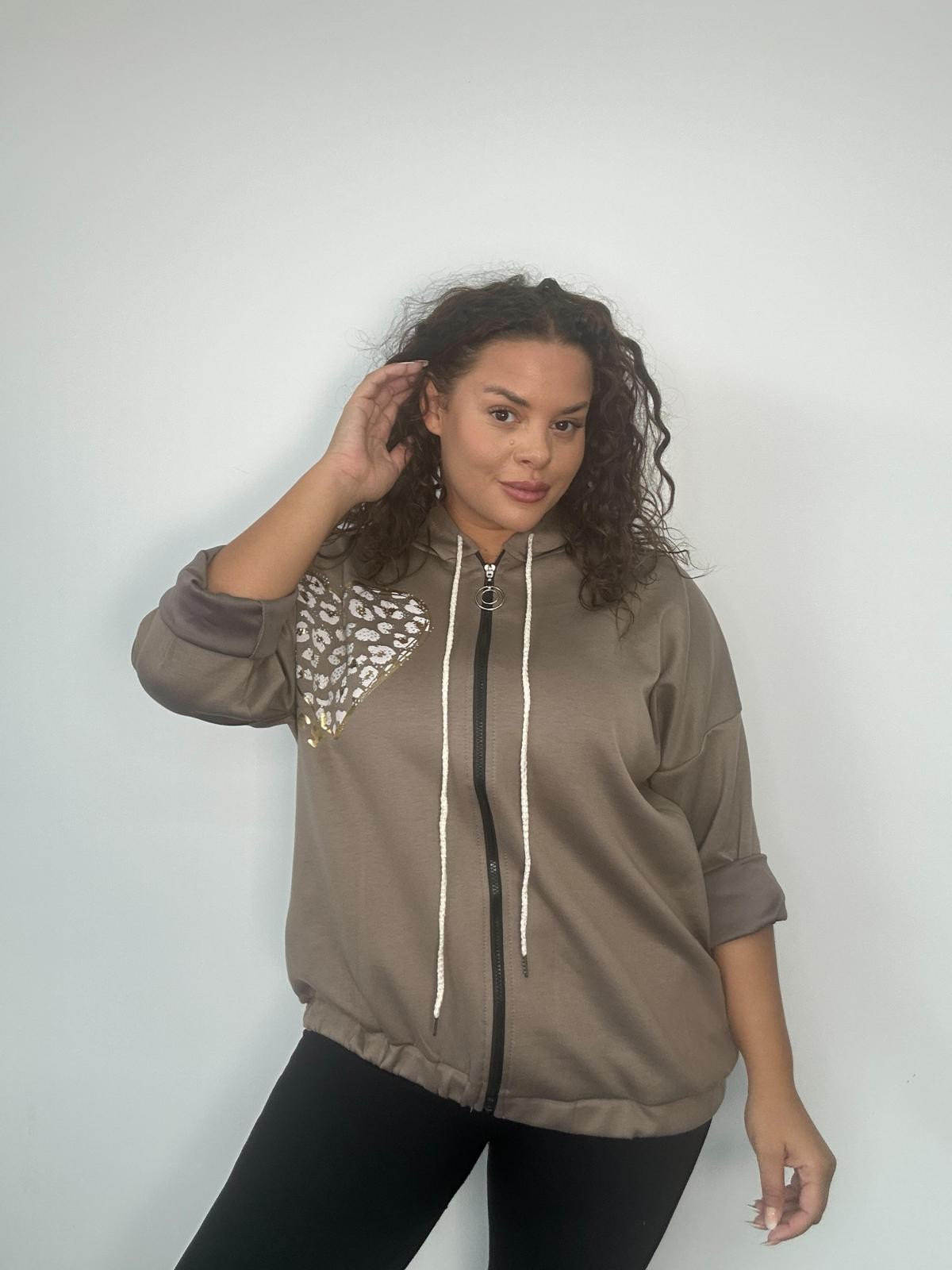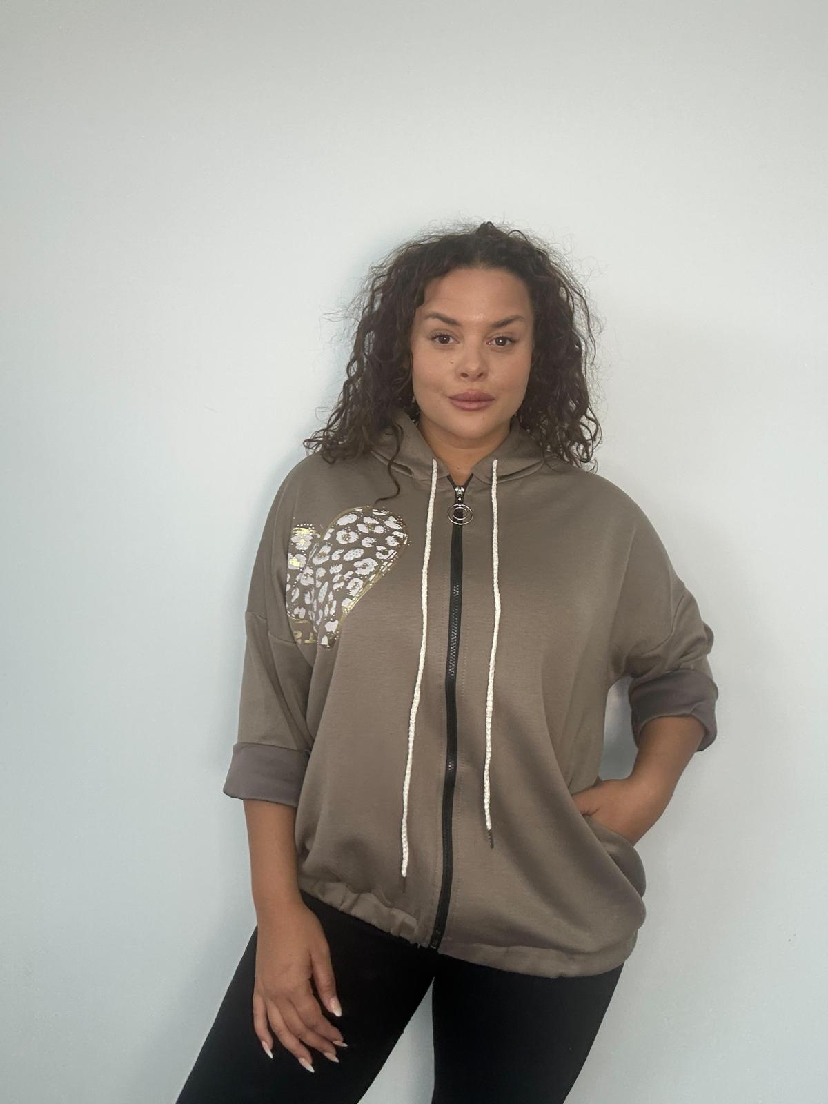 Plus Size Curve Taupe Zip Up Hoodie with Leopard Heart Print x 2, 3 & 5 Pack Options
