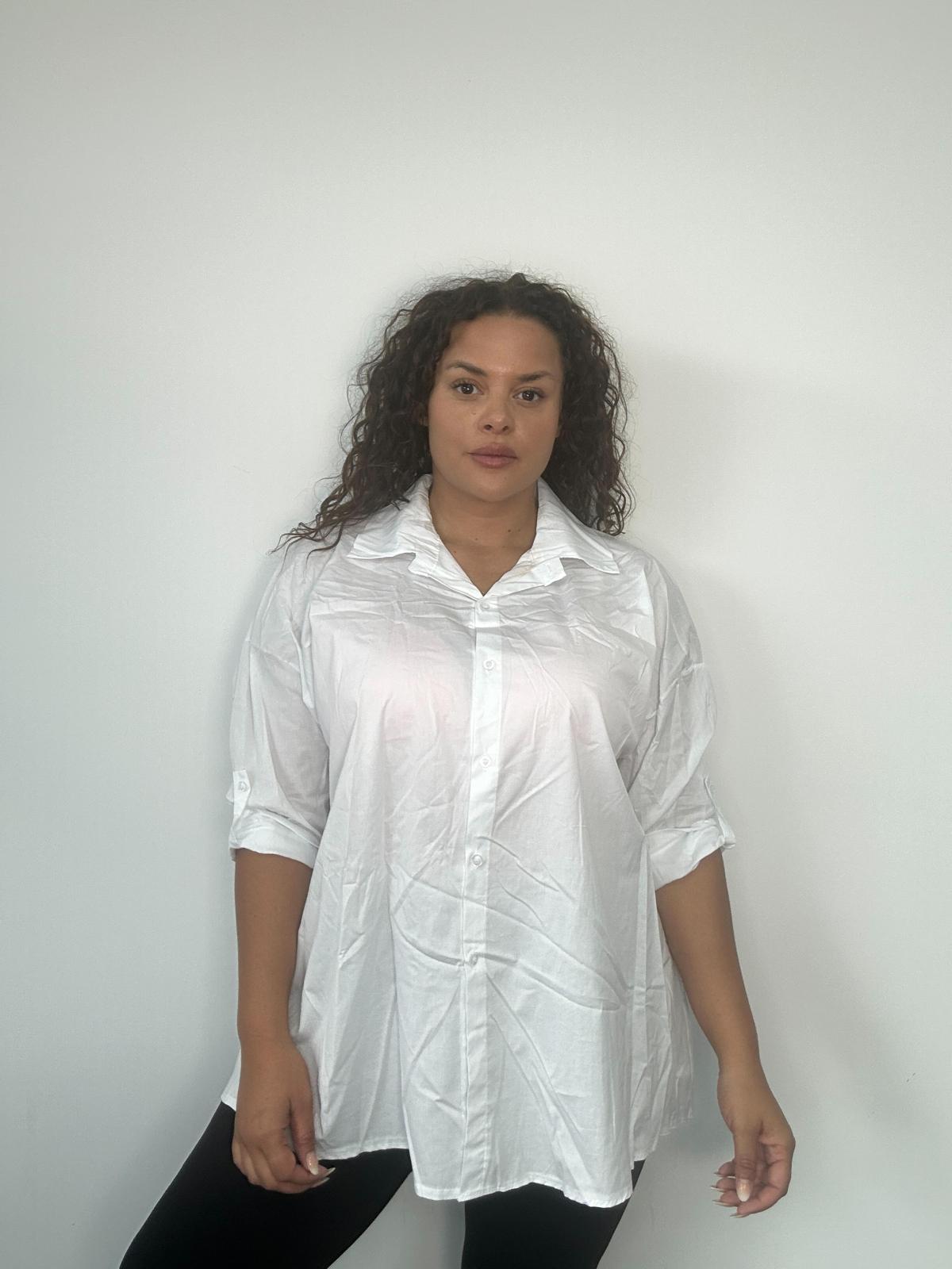 Refresh your wholesale collection with this Plus Size Curve White Button Down Shirt, a timeless wardrobe essential. Designed in a relaxed longline fit with roll-up sleeves, this versatile shirt offers effortless style and comfort. Perfect for layering over leggings, jeans, or even as a lightweight cover-up, it’s a must-have staple piece for everyday and smart-casual looks.