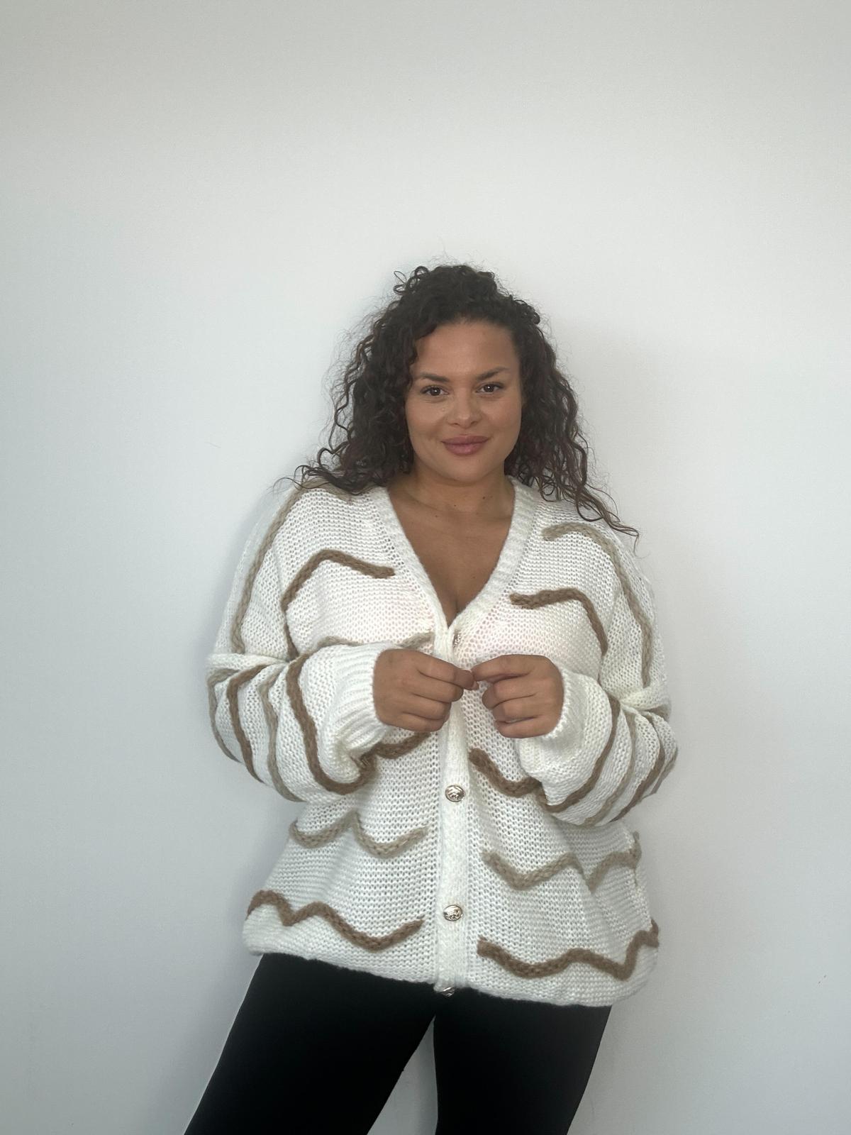 Plus Size Curve White Knitted Cardigan with Wave Stripe Design x 2, 3 & 5 Pack Options