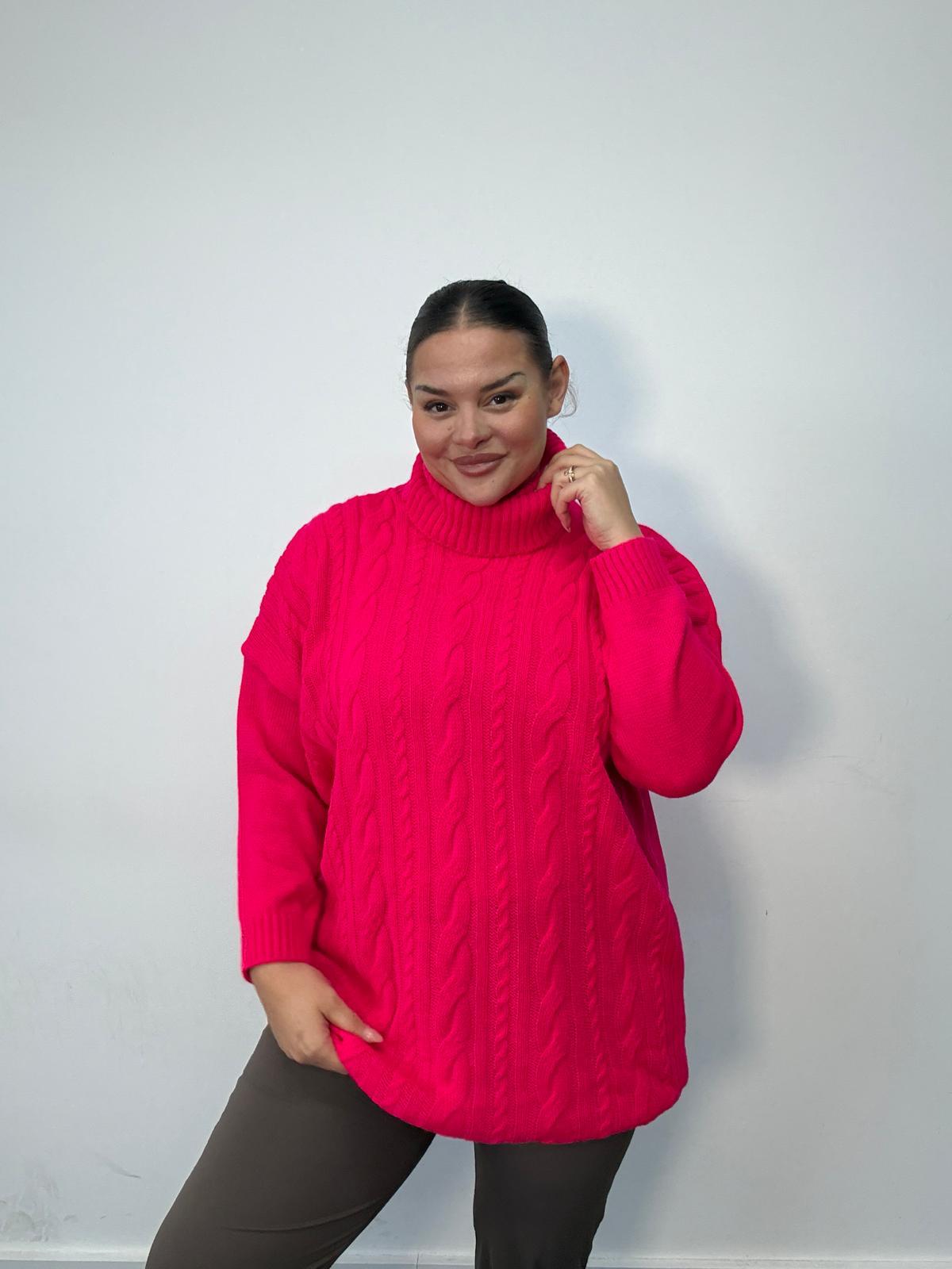 The Cable Knit Roll Neck Jumper is a cosy, curve-friendly knit designed for warmth, comfort, and everyday wear. Cut in a relaxed silhouette with added length, it offers a flattering fit that skims the body while providing coverage and ease for plus size shapes. Featuring an all-over cable knit design and a chunky roll neckline, this jumper delivers classic knitwear appeal with a modern curve fit. Crafted from a soft-touch knitted fabric, it provides warmth without feeling heavy, making it ideal for autumn and winter collections. Perfect for styling with leggings, slim-fit trousers, or layered over dresses, this piece is a strong wholesale option for retailers seeking dependable, easy-to-style plus size knitwear with broad customer appeal.
