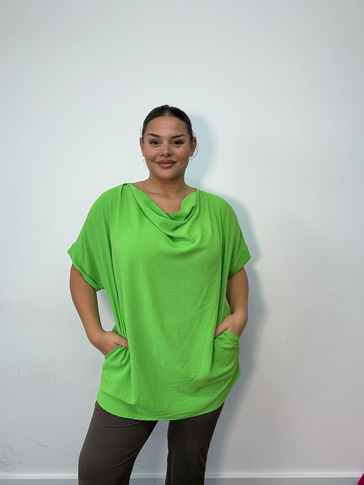 Plus Size Green Drape Neck Pocket Oversized Top x 2, 3 & 5 Pack Options