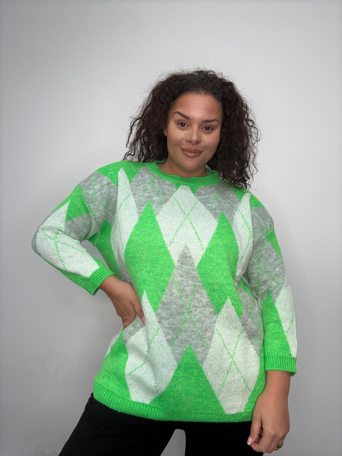 Plus Size Green Mix Argyle Knit Jumper x 2, 3 & 5 Pack Options