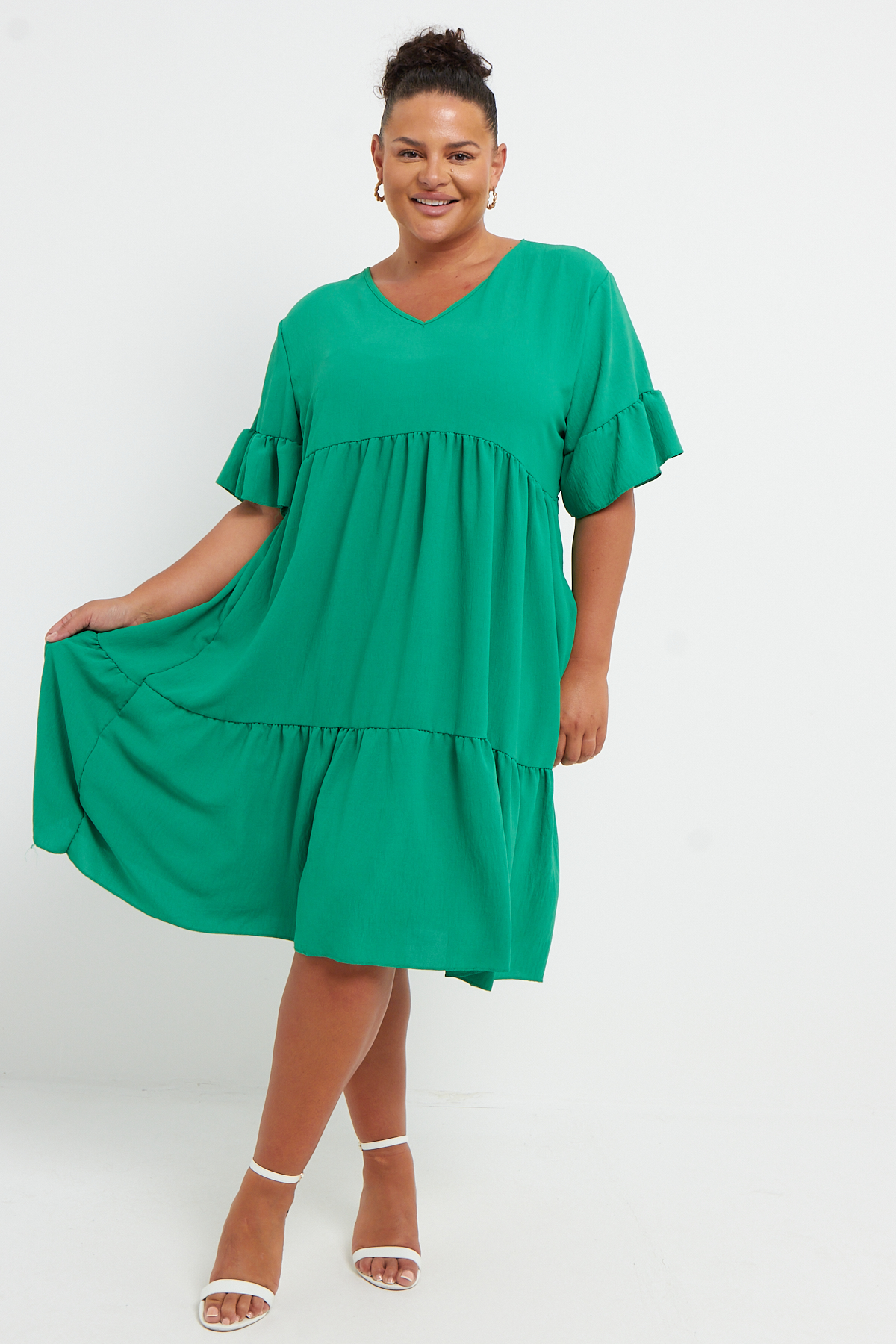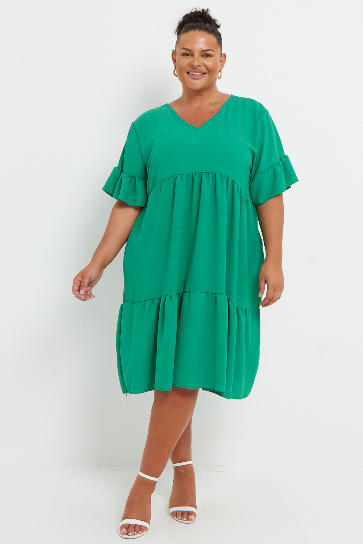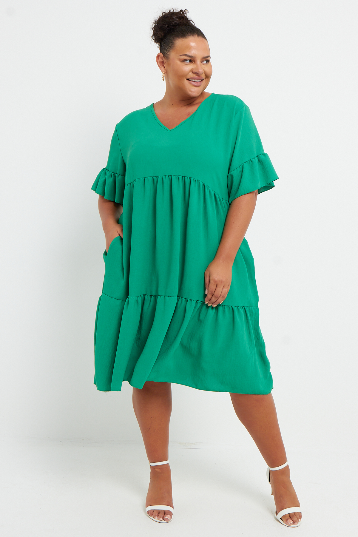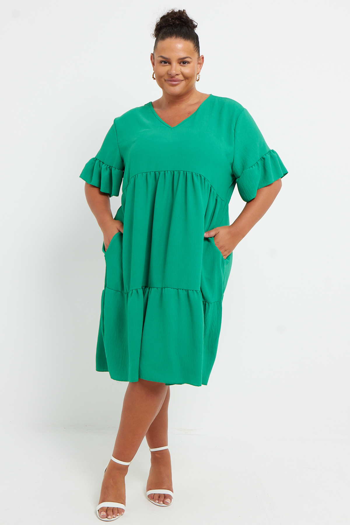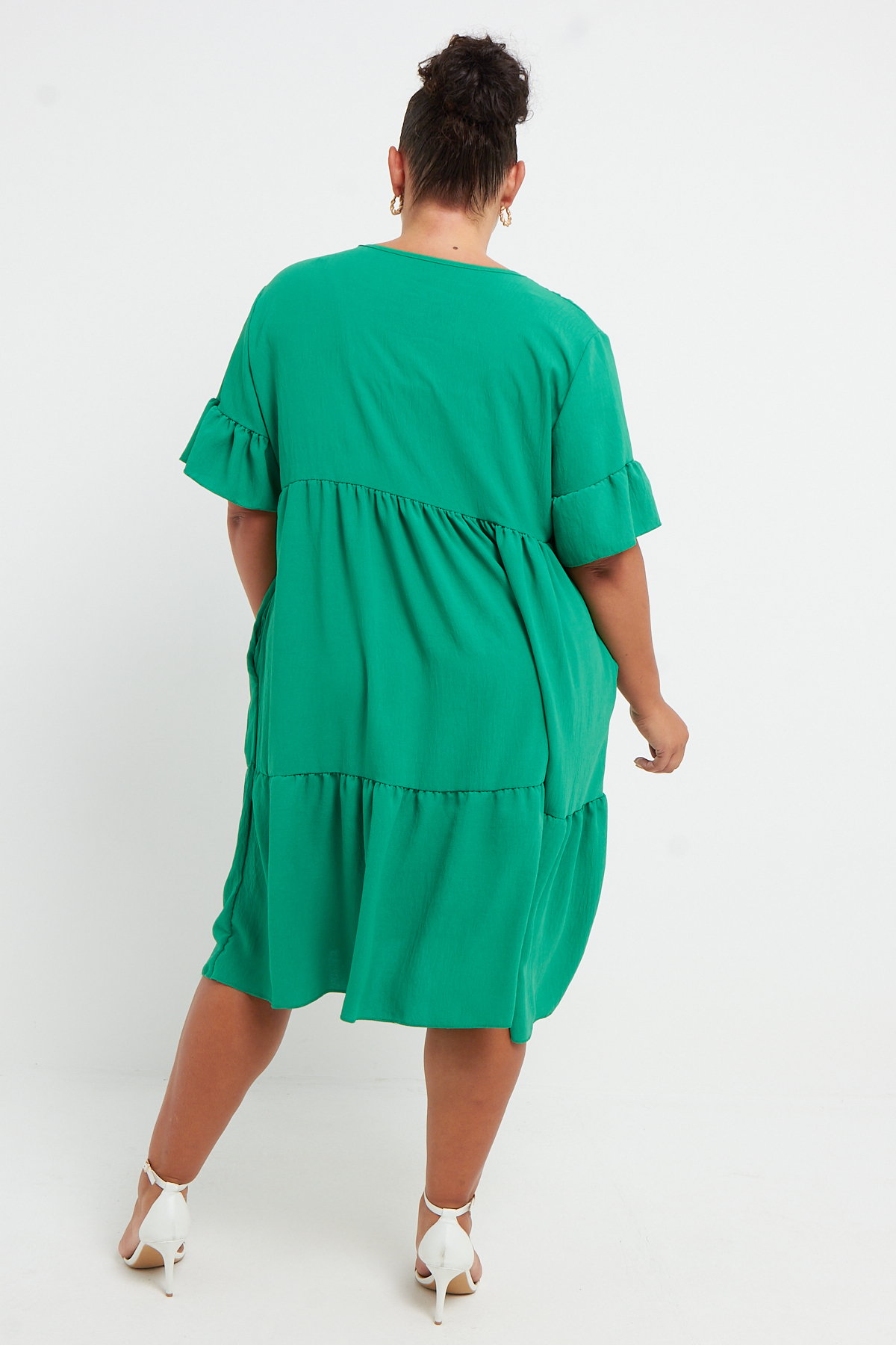 Plus Size Green Short Sleeve Frill Detail Mini Dress With Pockets x 6