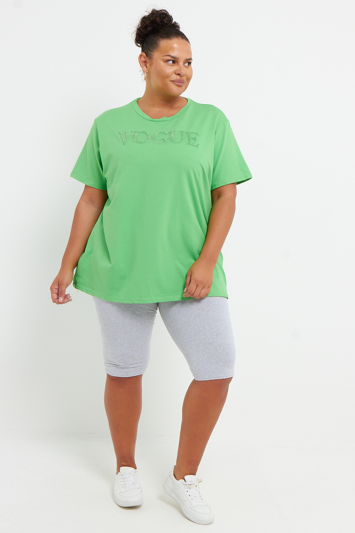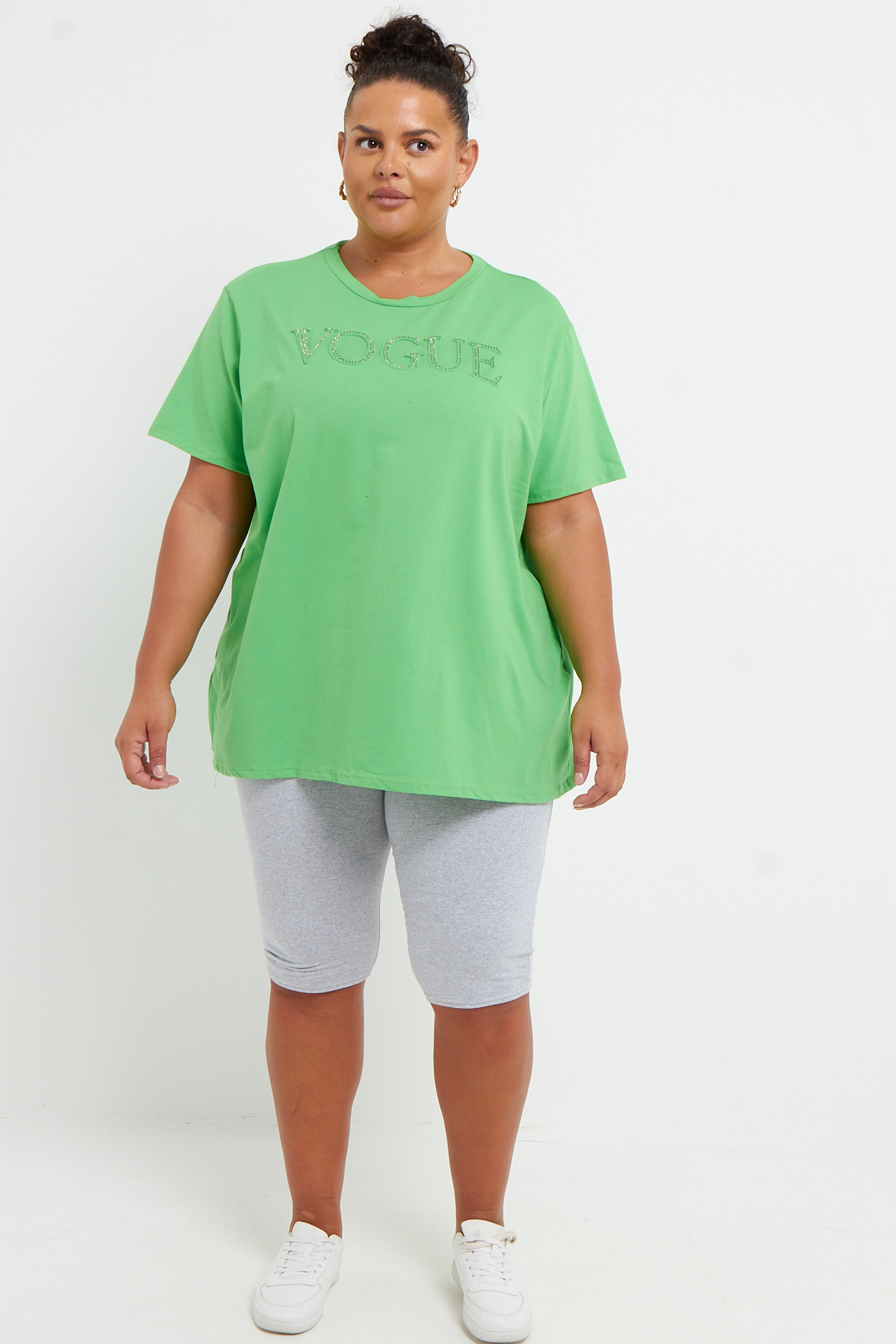 Plus Size Green Vogue Slogan Short Sleeve T Shirt x 6