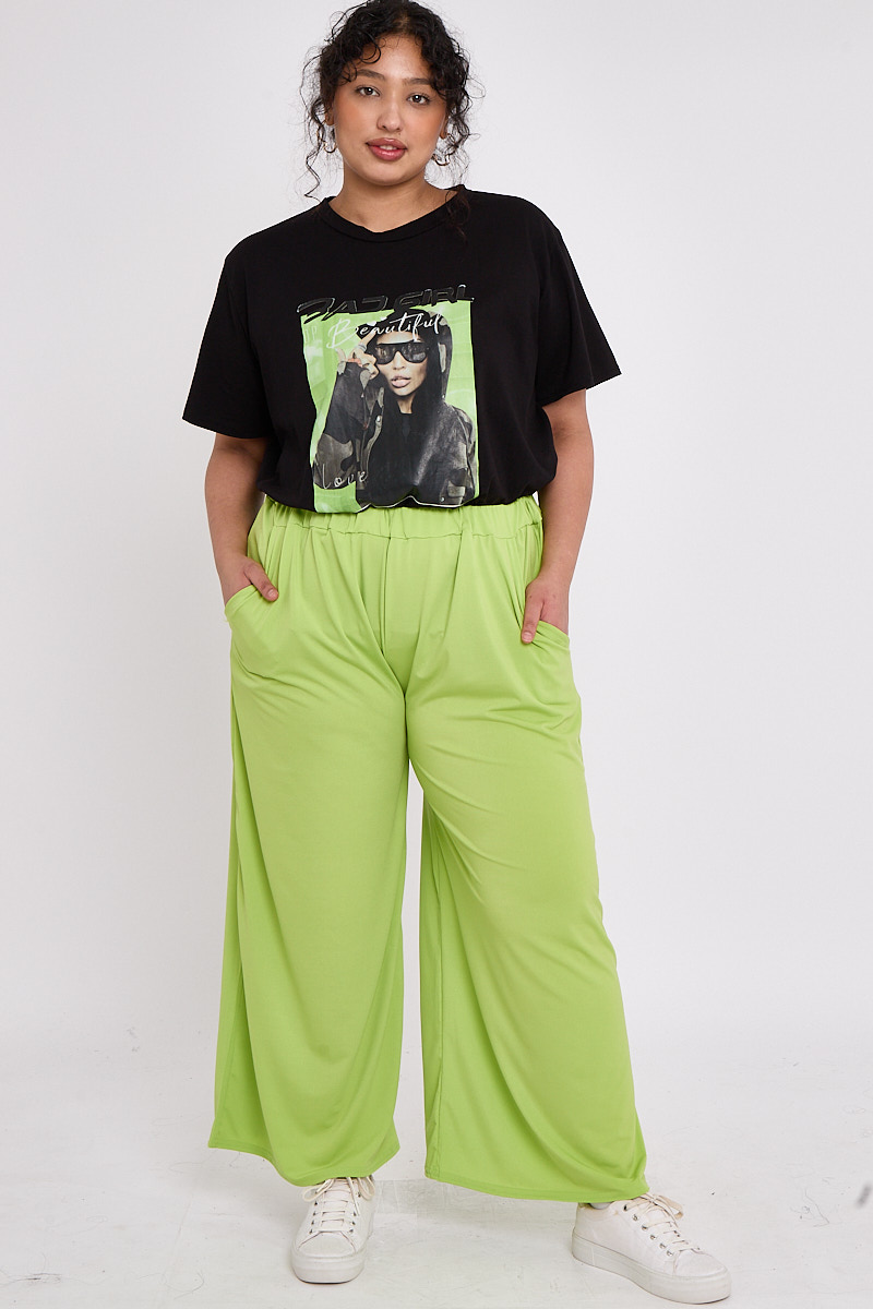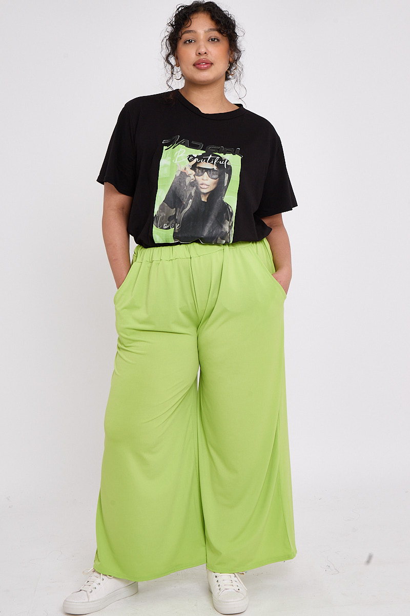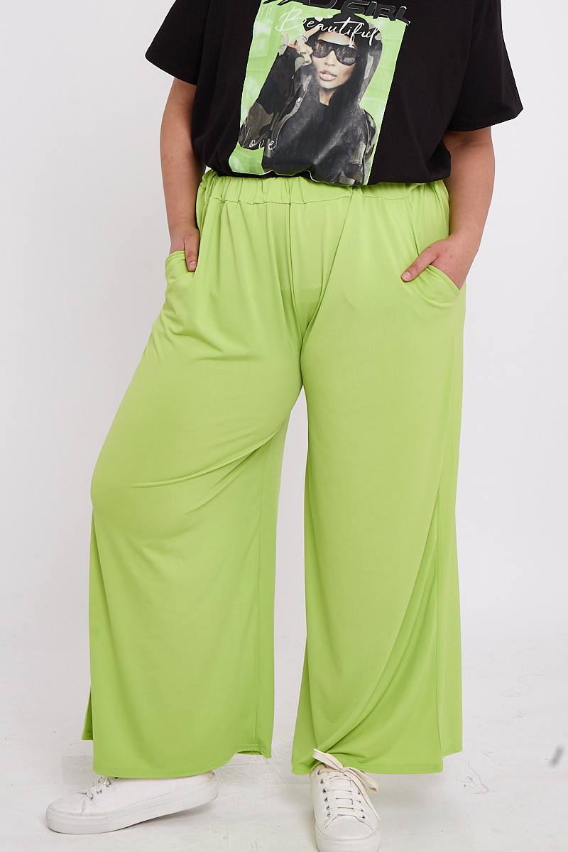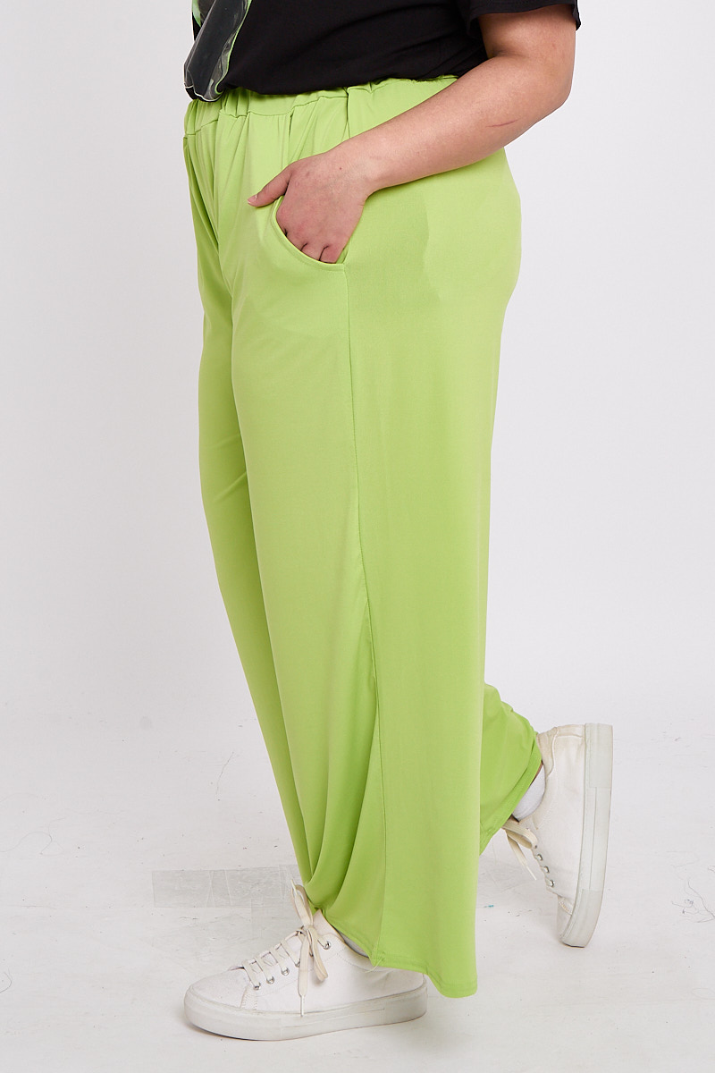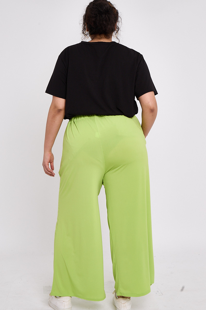 Plus Size Green Wide Leg Elasticated Waist Trouser With Pockets x 5