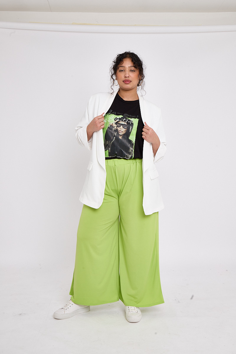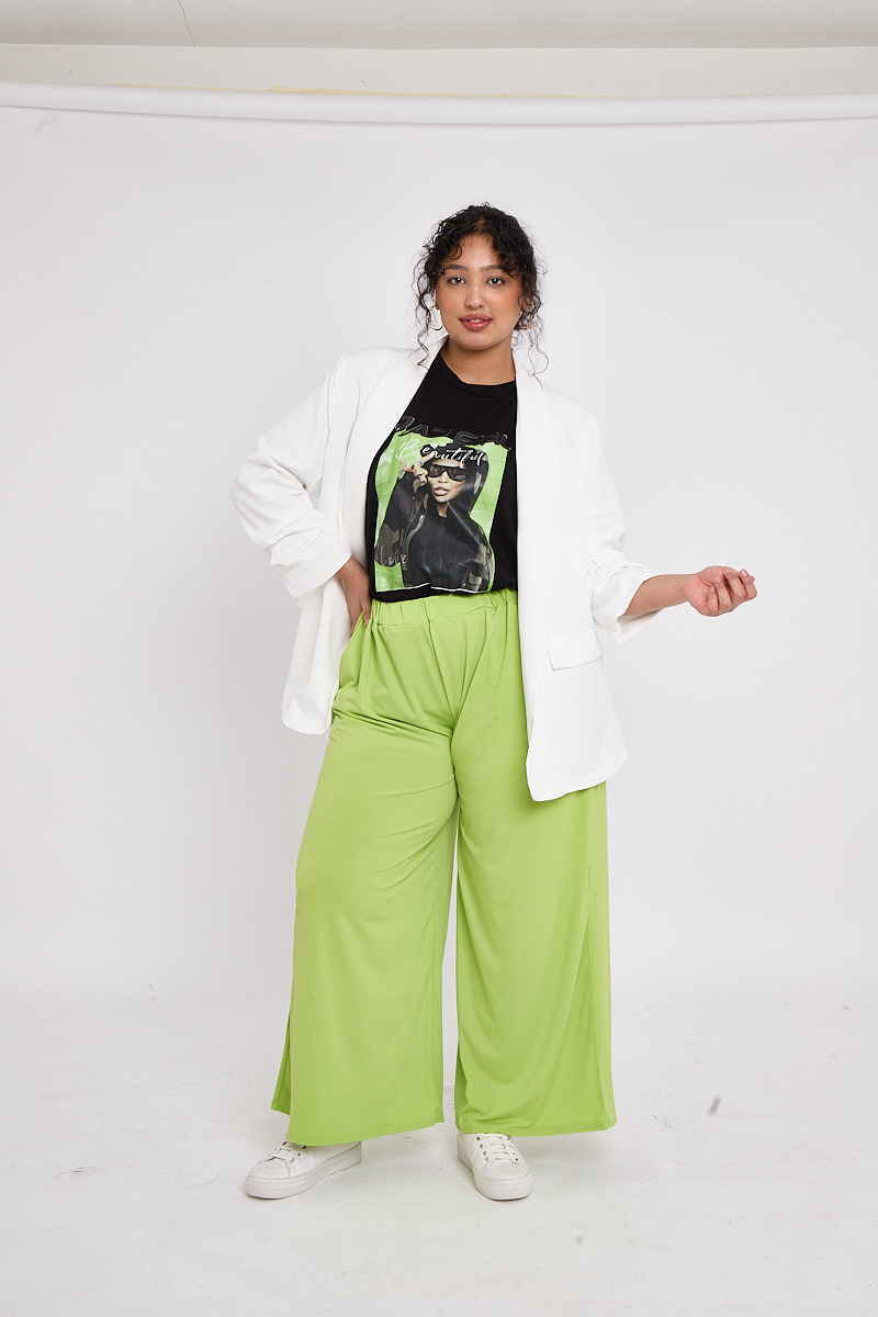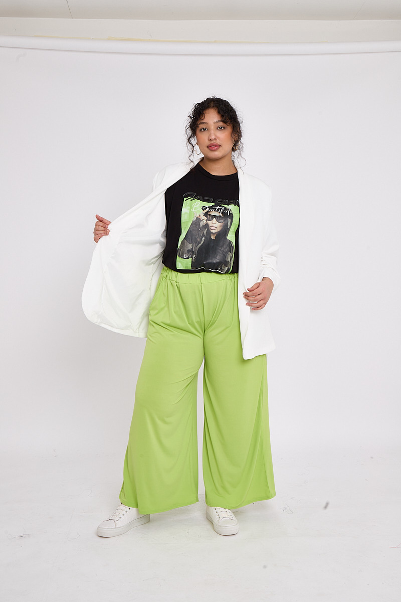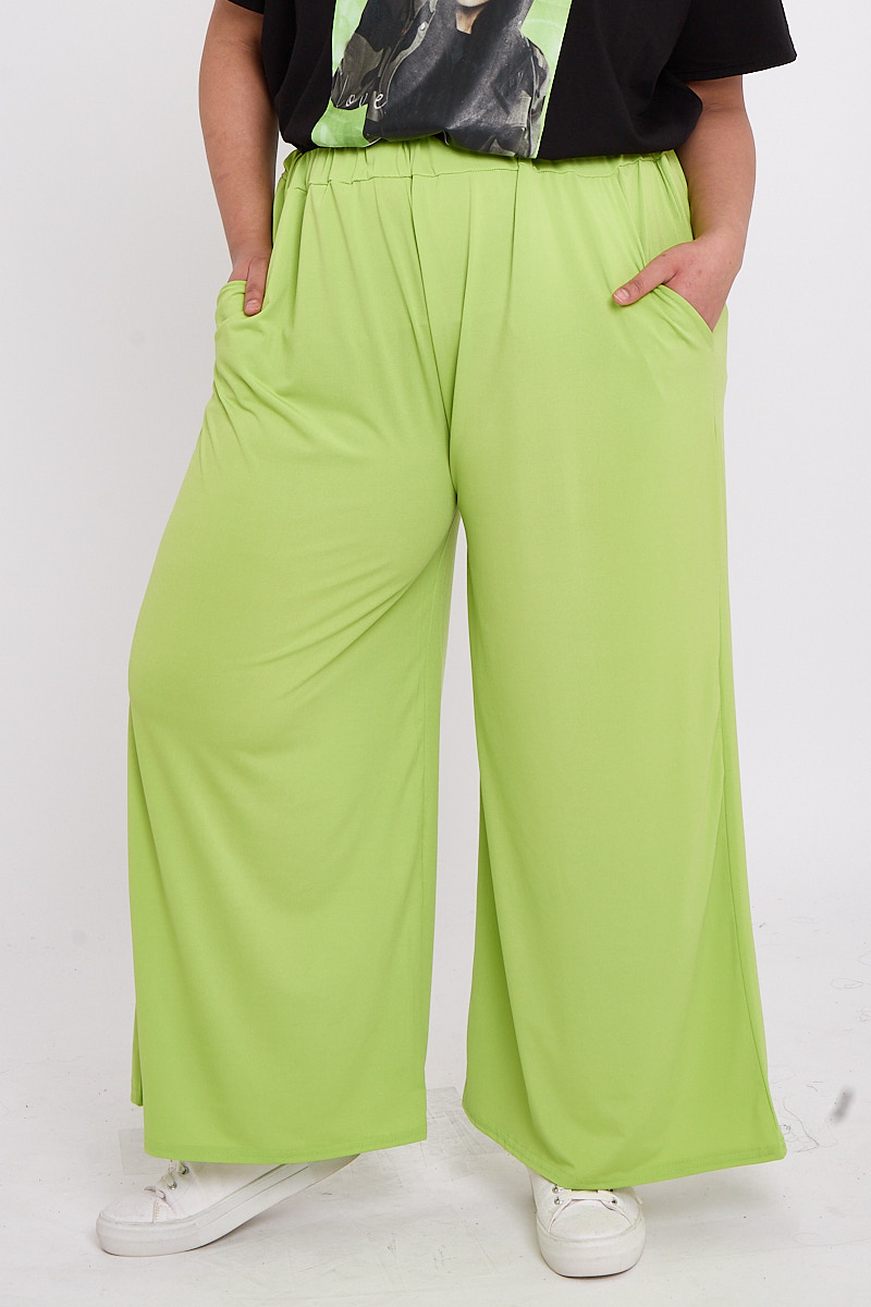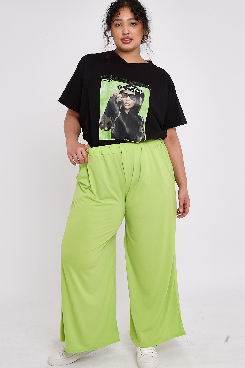 Plus Size Green Wide Leg Elasticated Waist Trouser With Pockets x 5