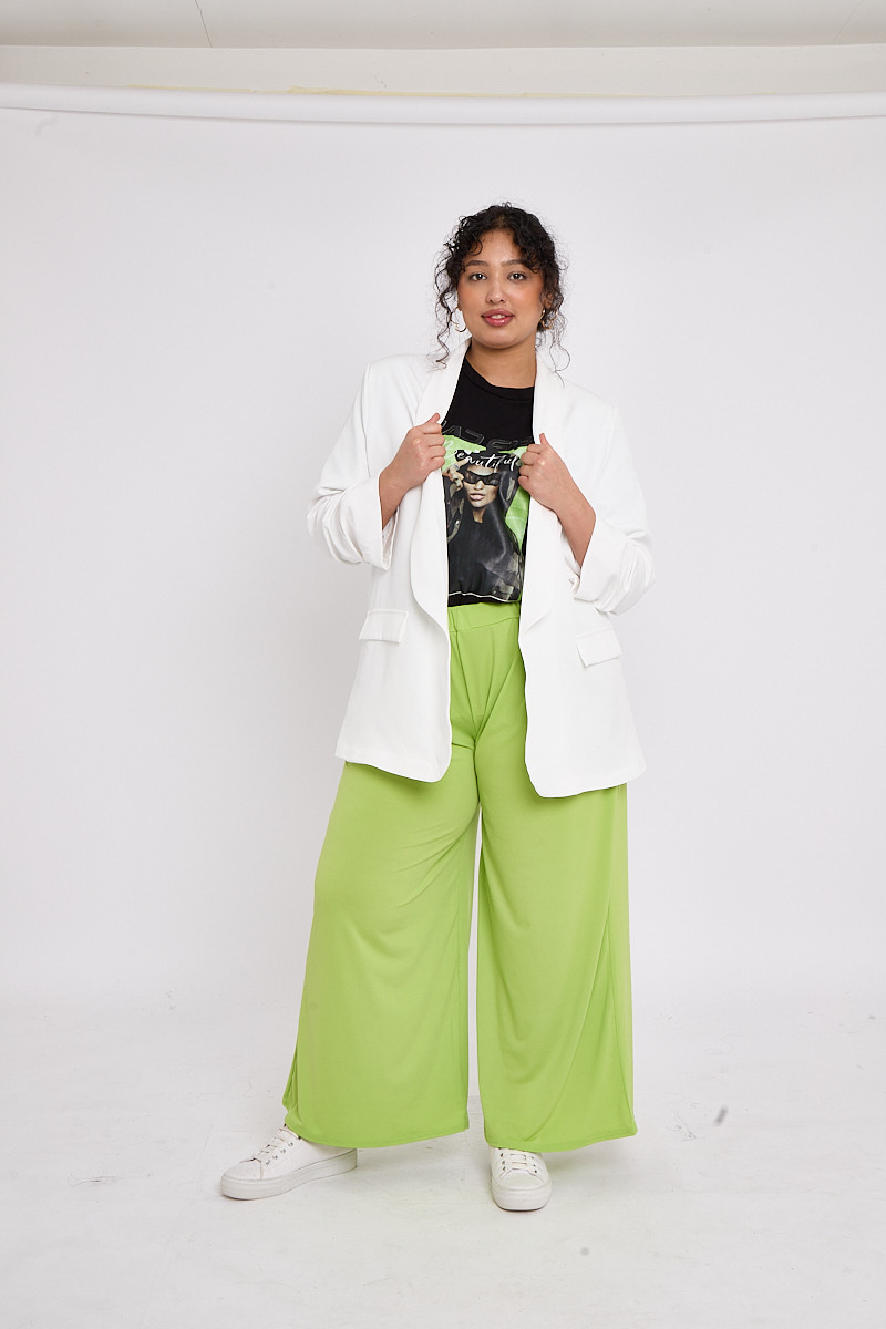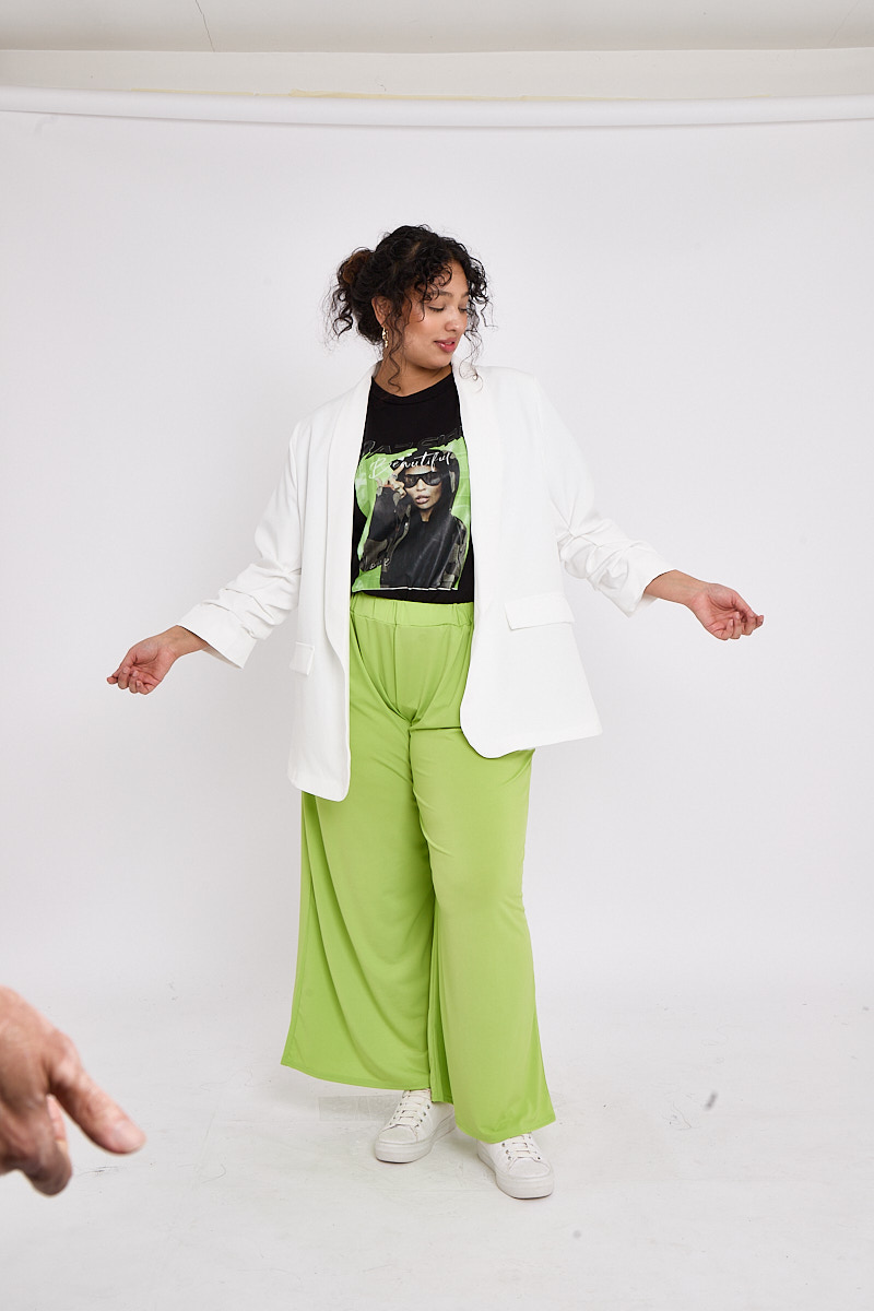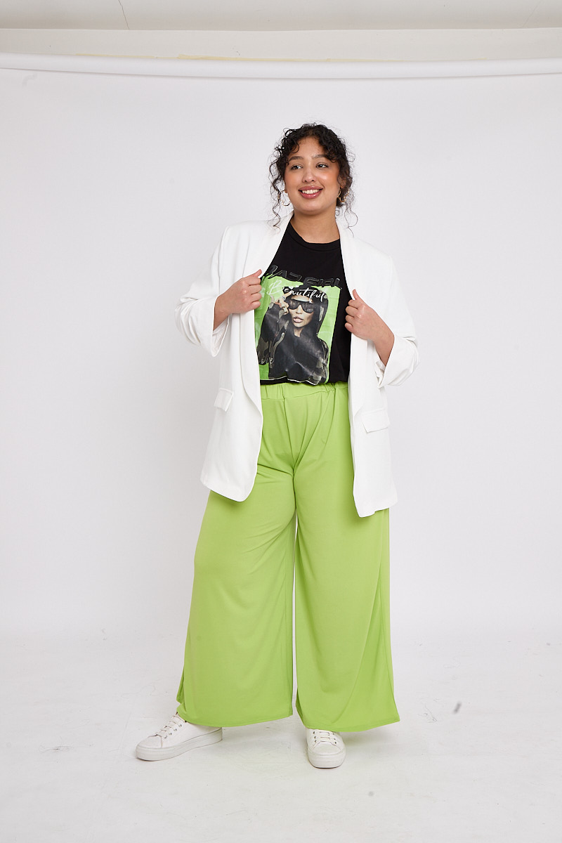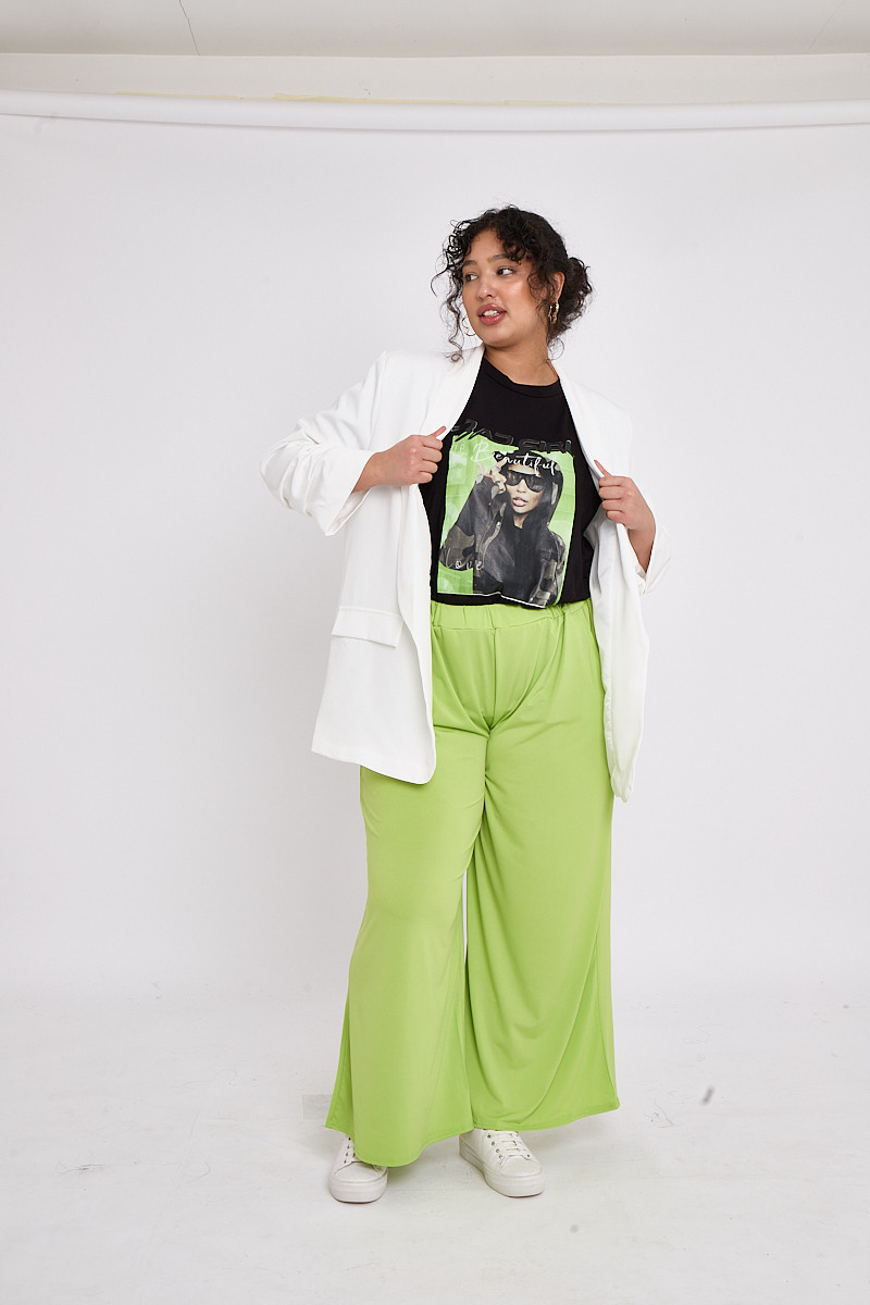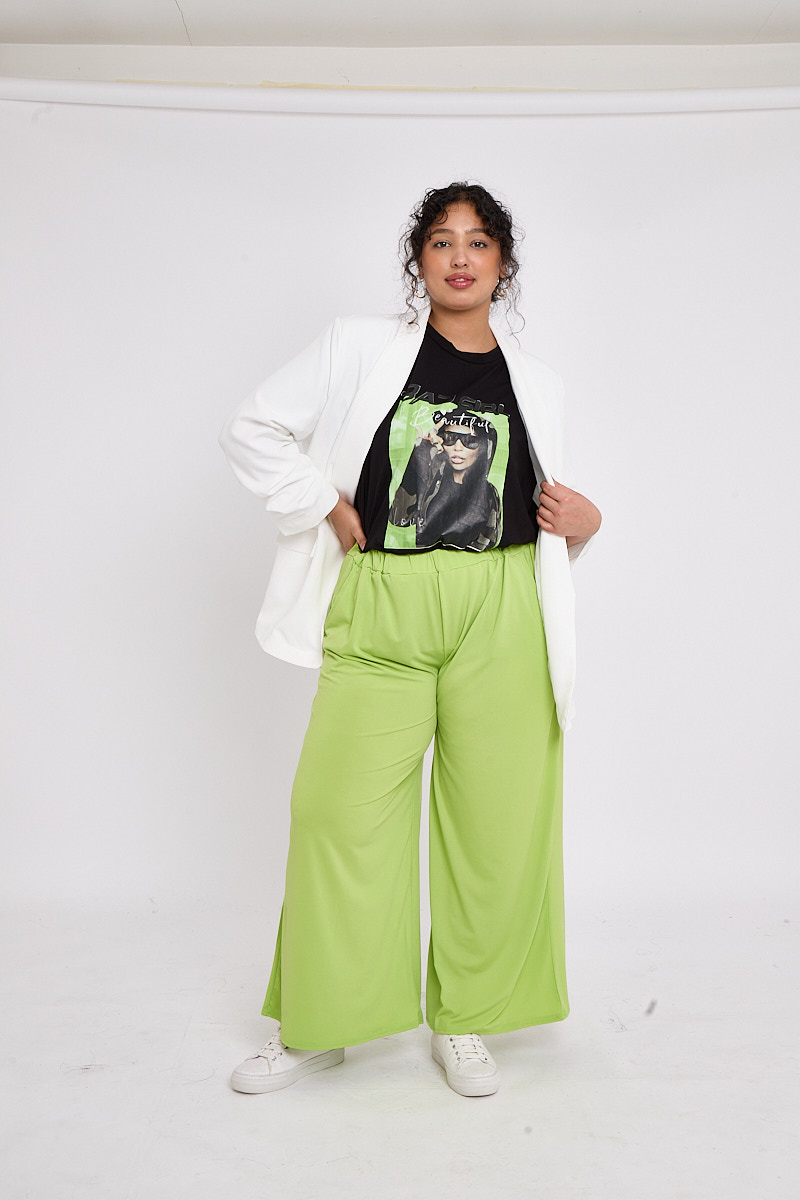 Plus Size Green Wide Leg Elasticated Waist Trouser With Pockets x 5