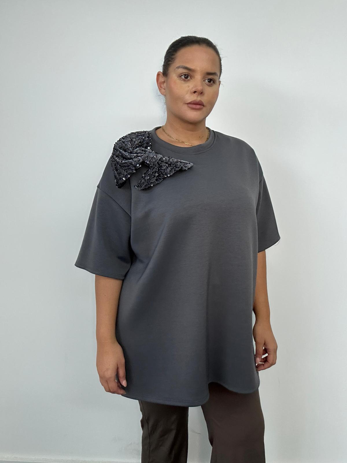 Make a statement this season with our Plus SizeSequin Bow Shoulder Top the perfect blend of festive glam and easy-to-wear comfort. Featuring a bold sequin bow detail on one shoulder, this top adds instant sparkle while maintaining a relaxed, flattering silhouette. Perfect for boutique buyers looking for statement plus-size partywear that’s chic, comfortable, and eye-catching.
