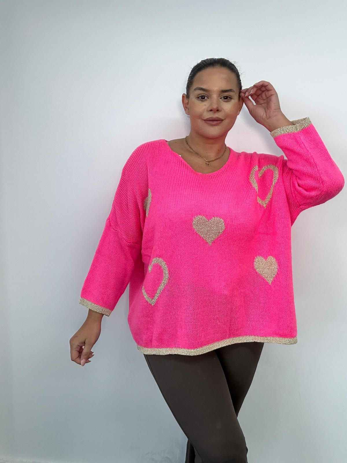 Plus Size Hot Pink Metallic Heart Knit Jumper x 2, 3 & 5 Pack Options