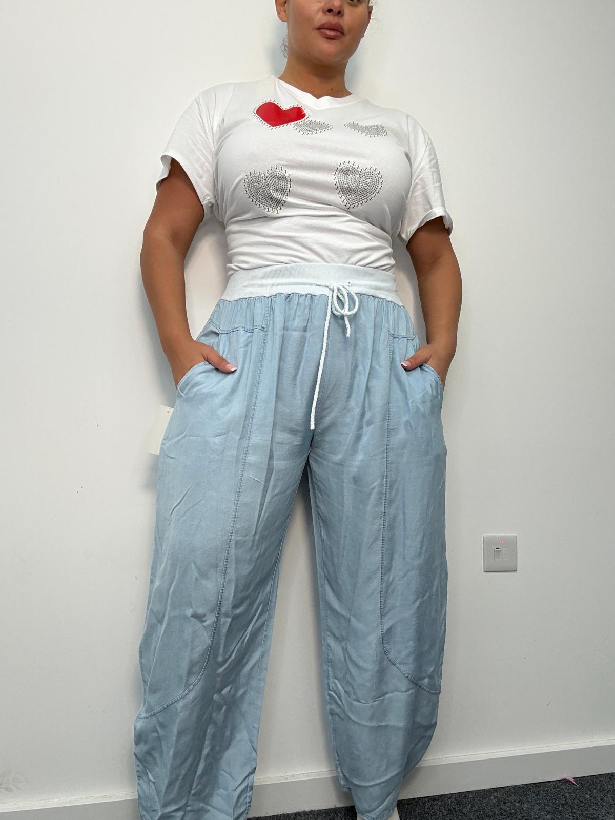 Plus Size Light Blue Lightweight Drawstring Trousers with Pockets x 2, 3 & 5 Pack Options