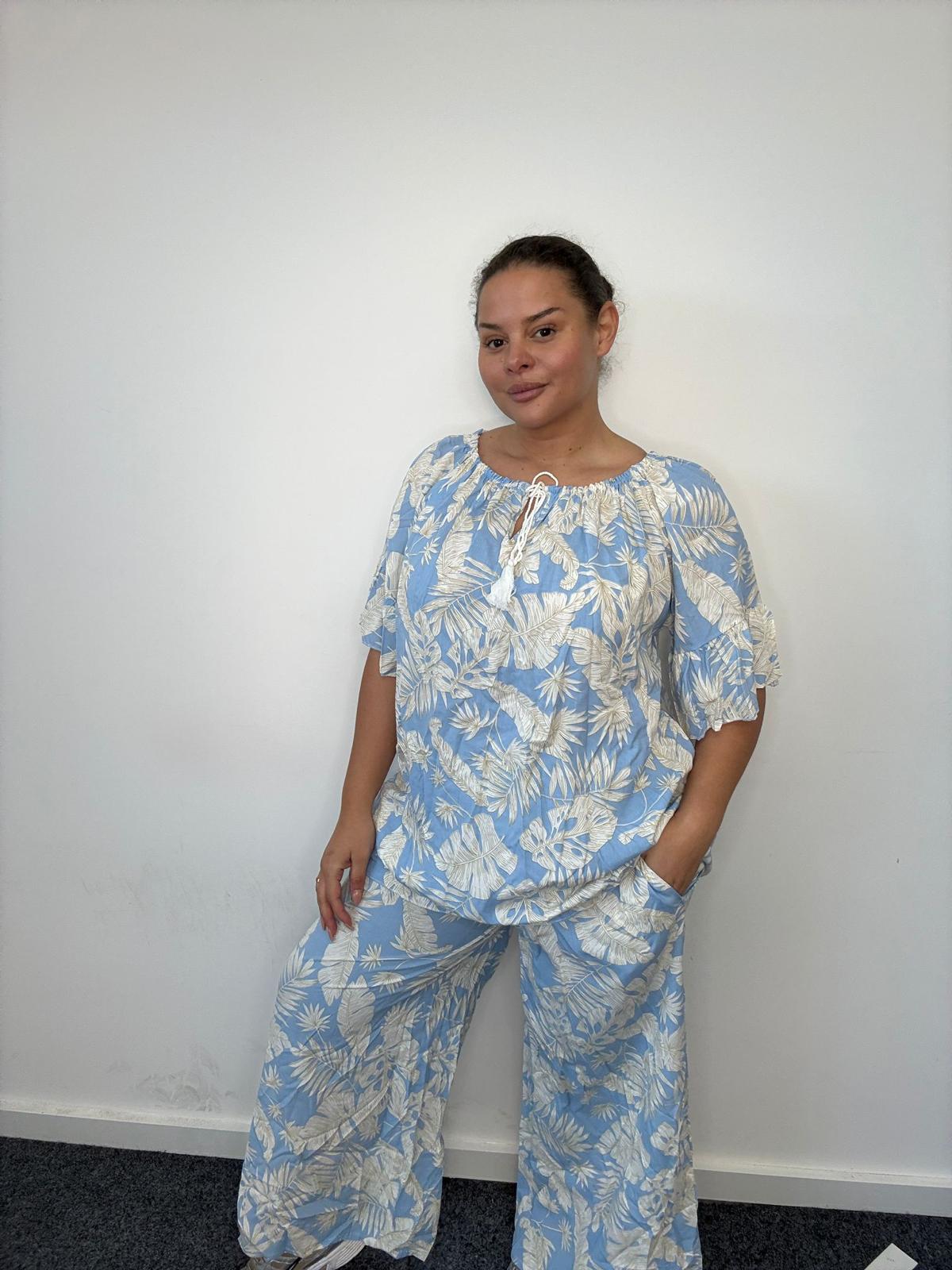 Plus Size Light Blue Tropical Print Co-Ord Set x 2, 3 & 5 Pack Options