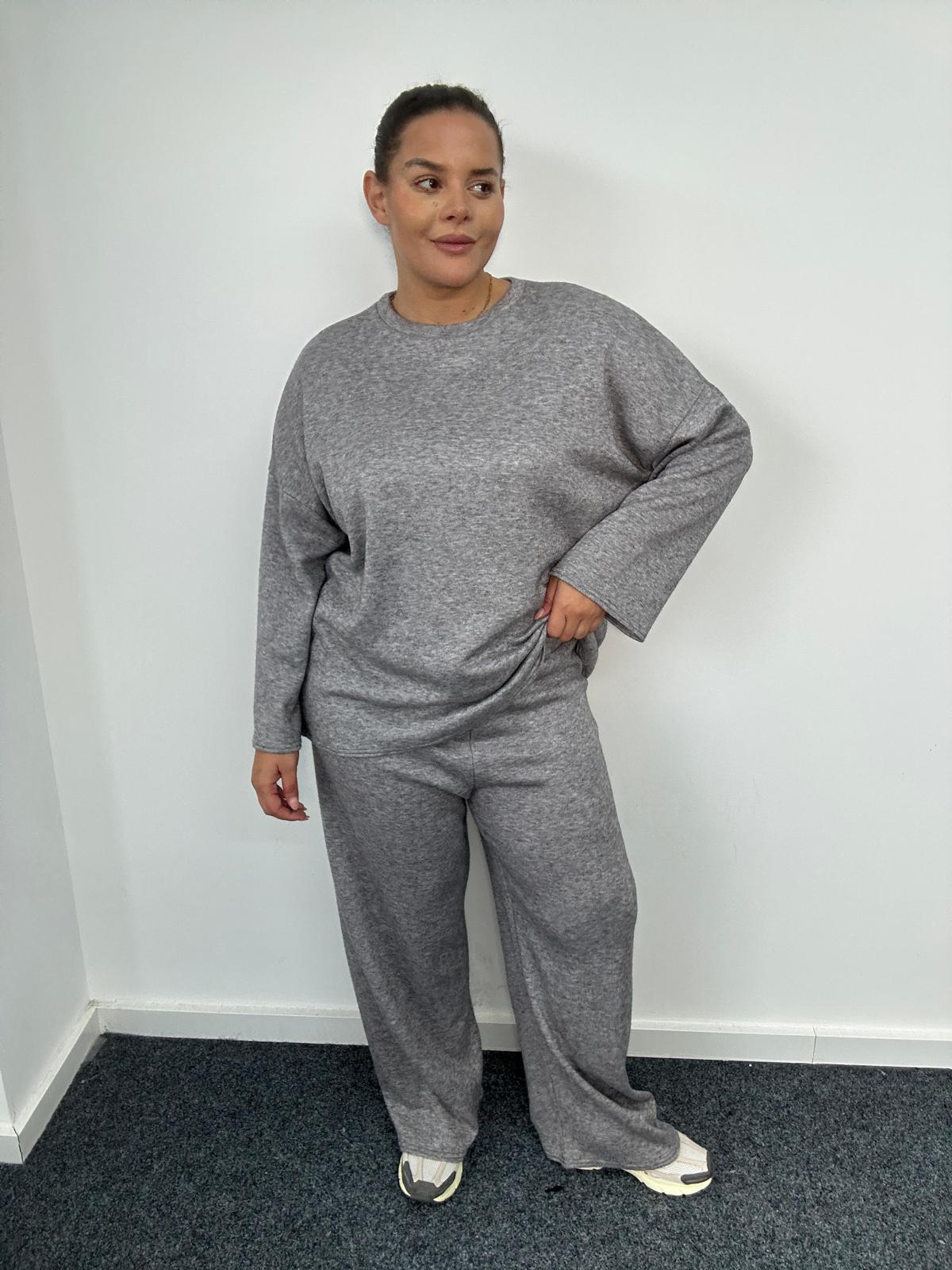 Plus Size Light Grey Relaxed Fit Two Piece Loungewear Set x 2, 3 & 5 Pack Options