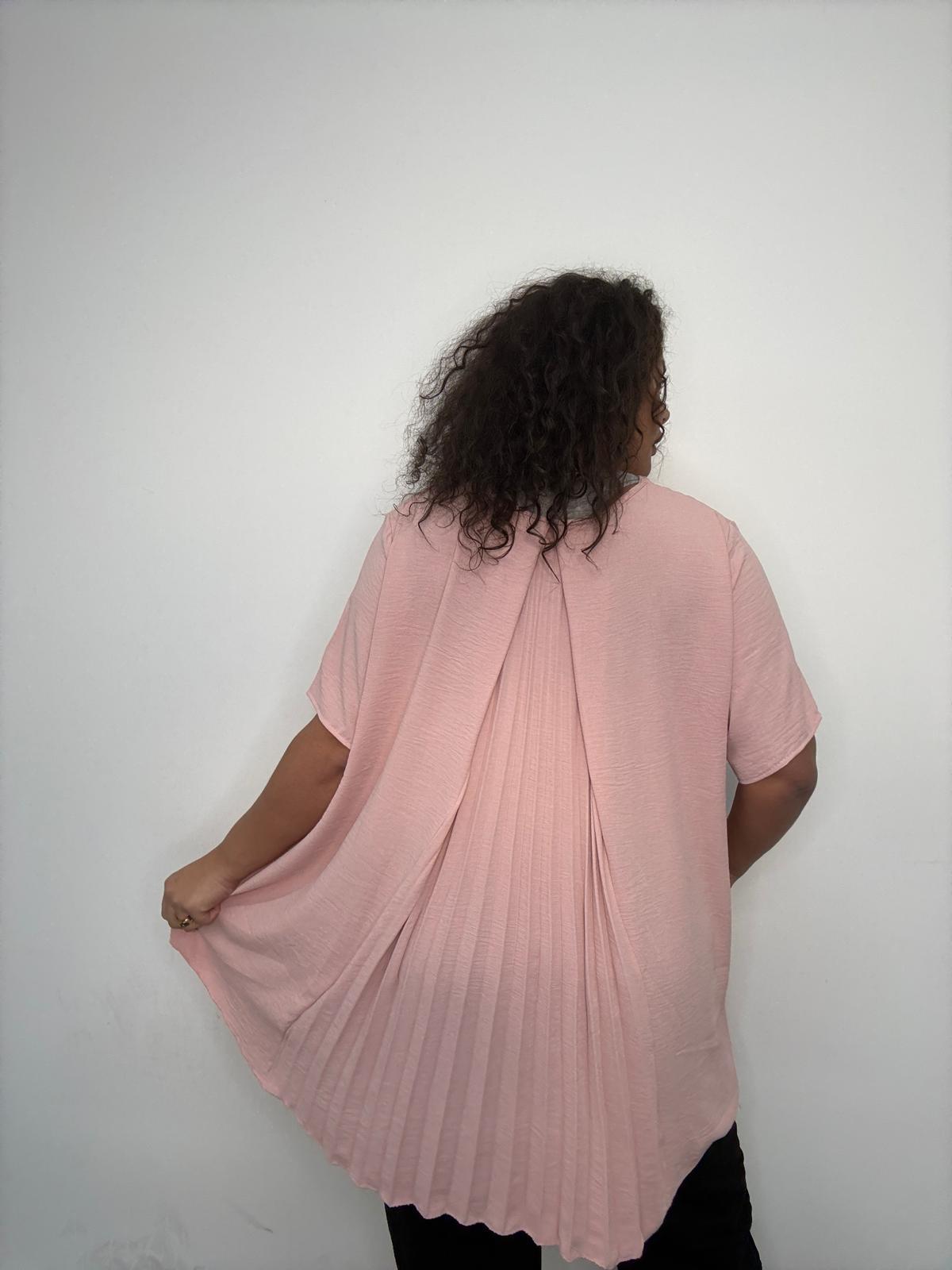 Plus Size Light Pink Pleated Back Oversized T-Shirt with Pockets x 2, 3 & 5 Pack Options