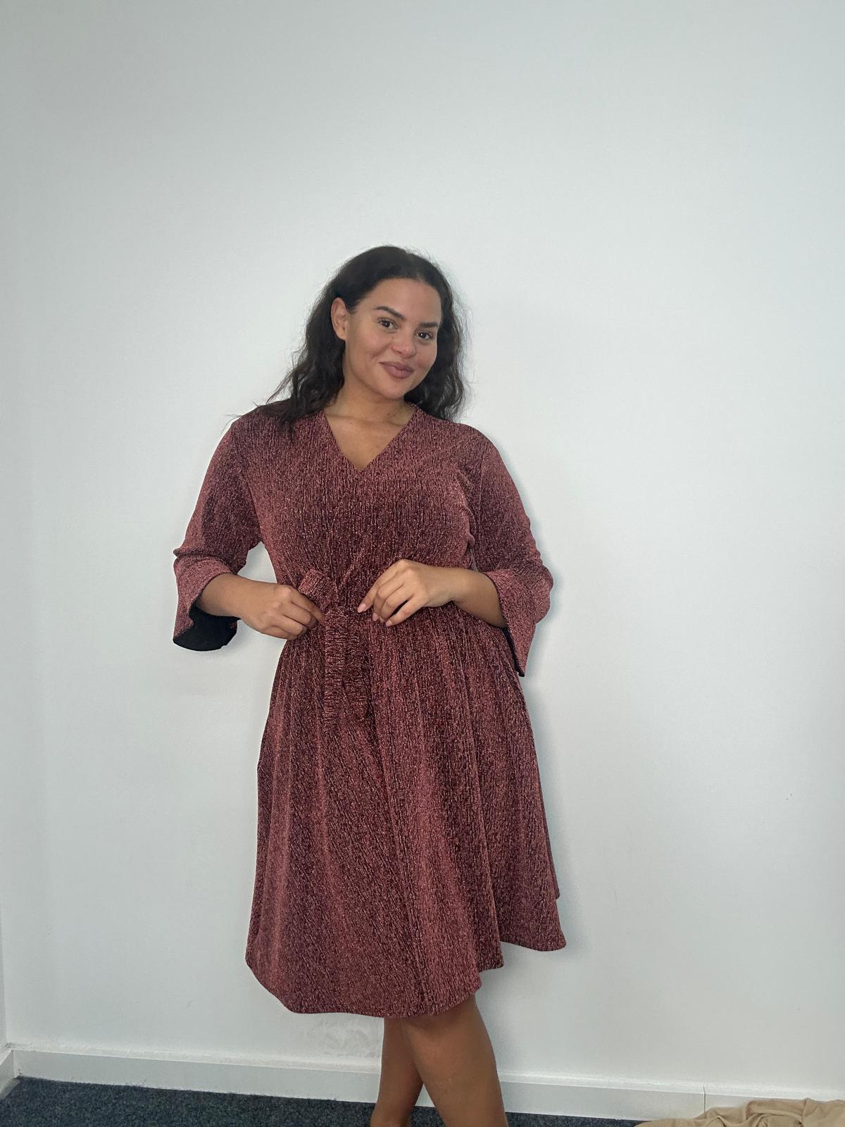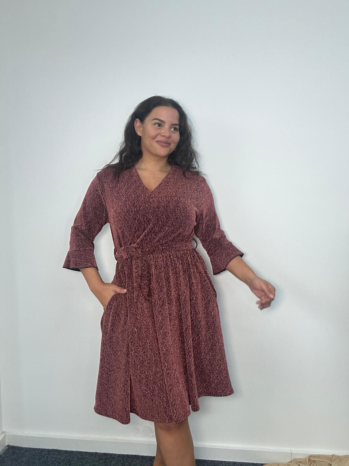 Add a touch of luxury to your plus size collection with this gorgeous shimmer crushed velvet wrap dress. Designed in a soft, shimmering fabric with a flattering tie waist, it effortlessly enhances curves while offering all-day comfort. Featuring a v-neck, 3/4 sleeves, and knee-length finish, it’s the ideal piece for party season, evening occasions, or special events. Perfect for boutiques and online sellers looking to stock elegant plus size dresses that combine glamour with wearability.