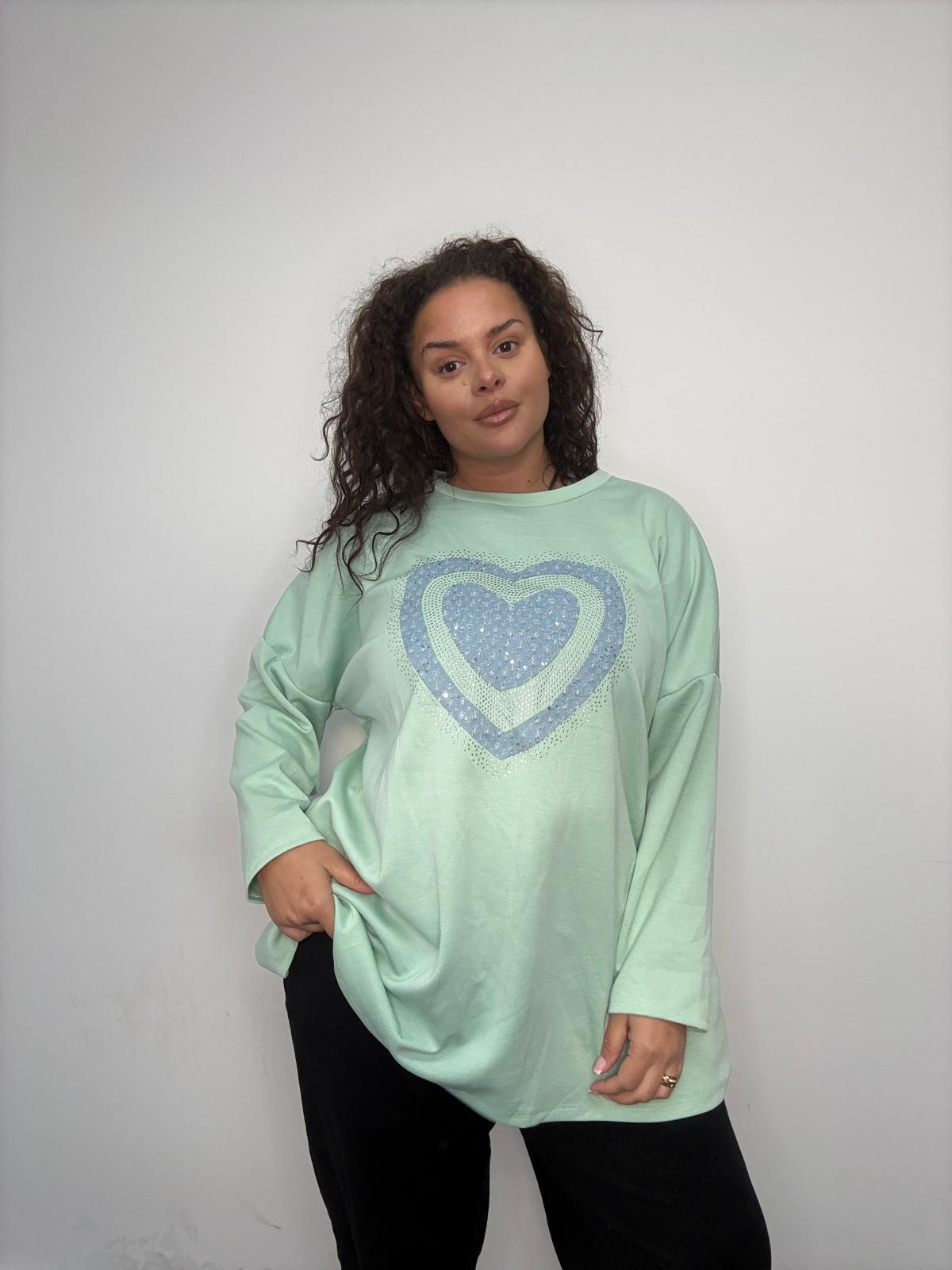 Plus Size Mint Green Heart Sequin Swing Top with Pockets x 2, 3 & 5 Pack Options