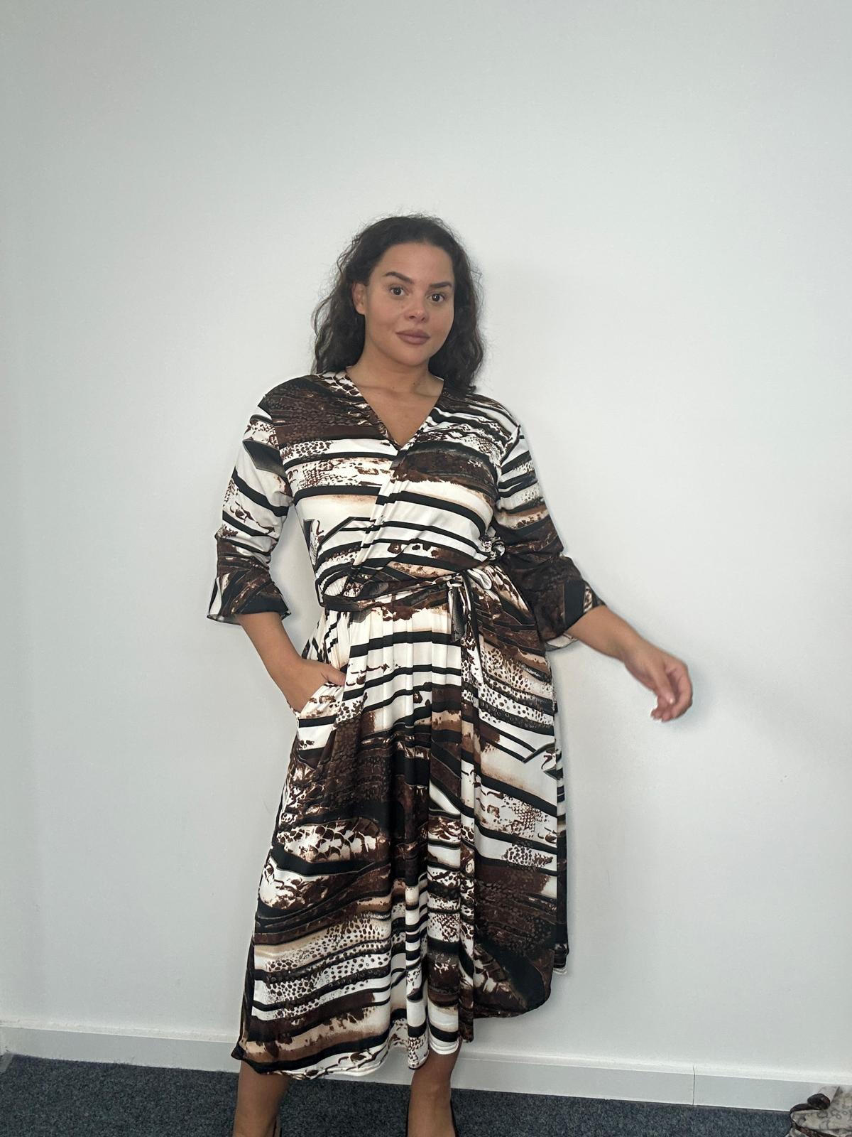 Plus Size Mixed Animal Stripe Print Wrap Midi Dress with Pockets x 2, 3 & 5 Pack Options
